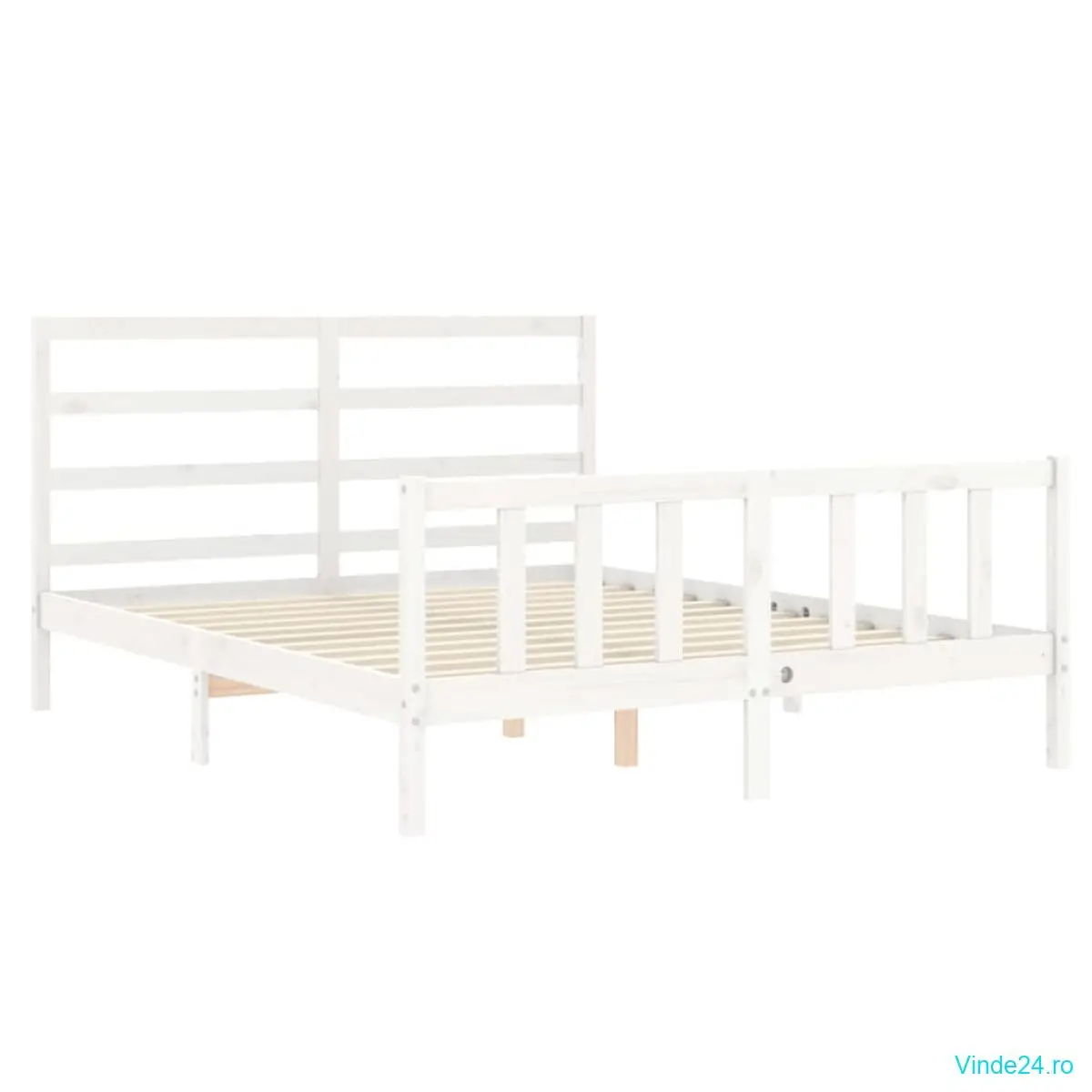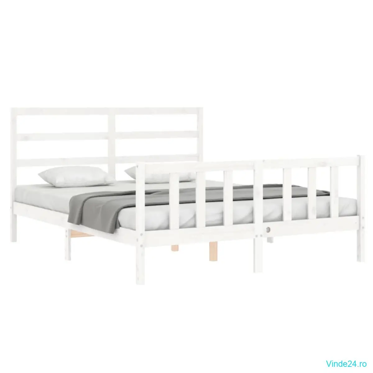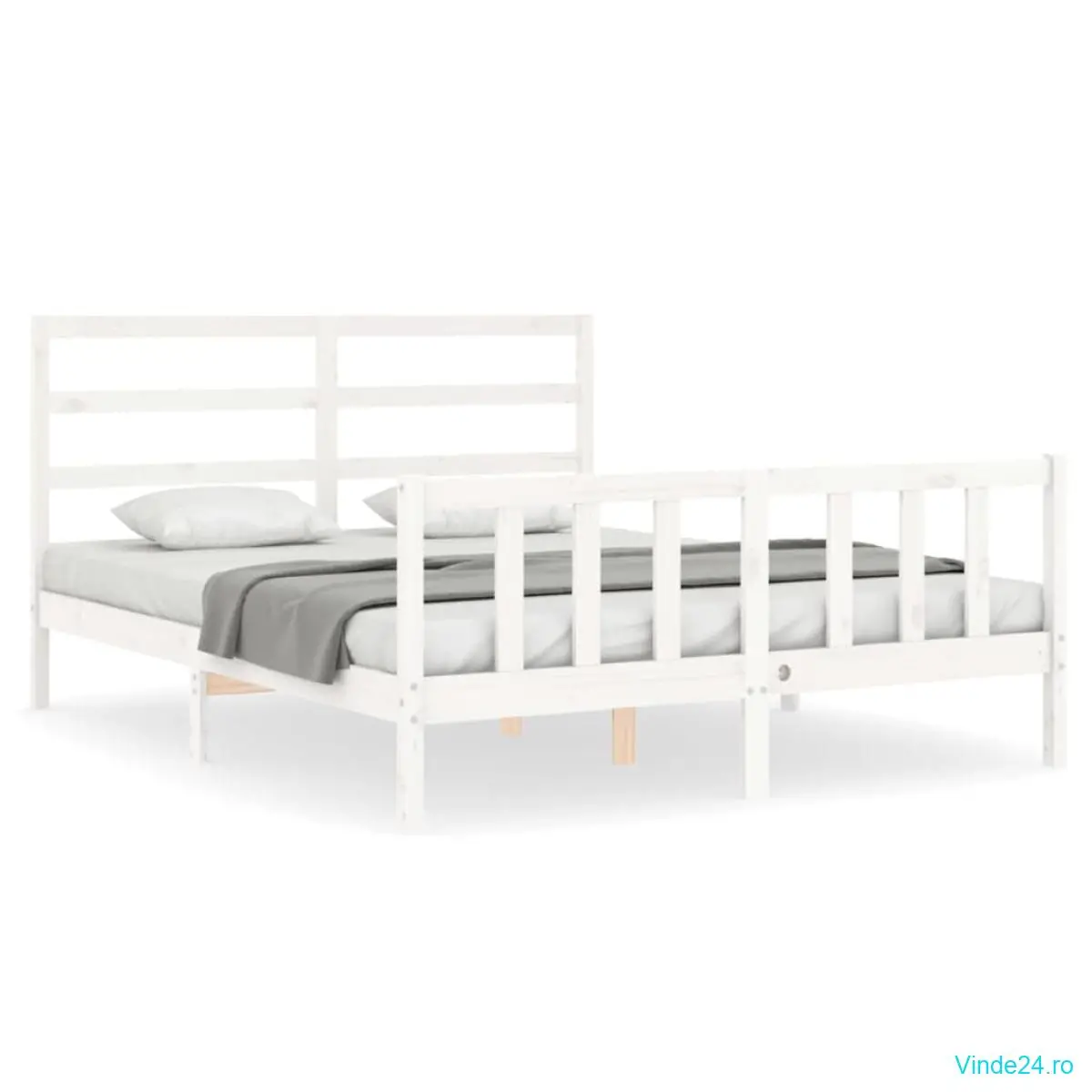 vidaXL Cadru de pat fără saltea, alb, 160x200 cm, lemn masiv pin