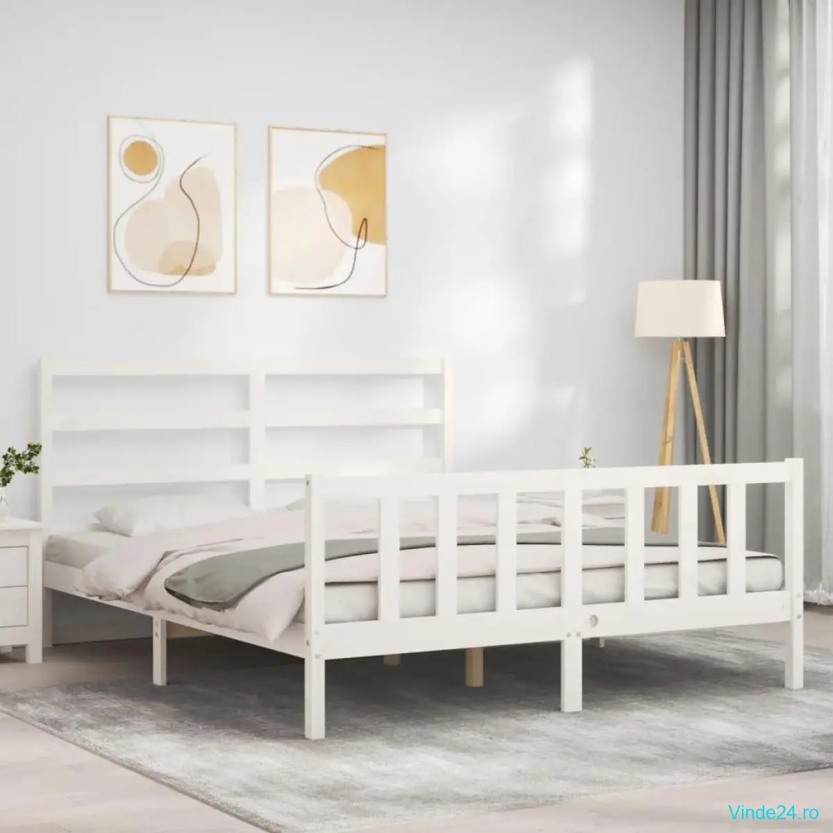 vidaXL Cadru de pat fără saltea, alb, 200x200 cm, lemn masiv pin