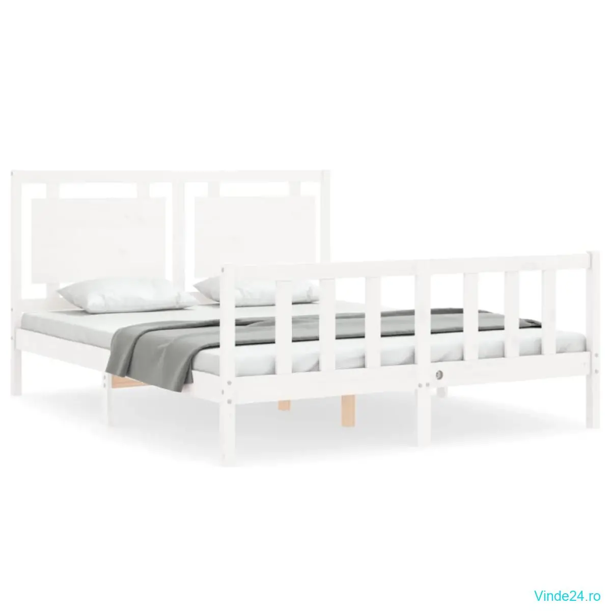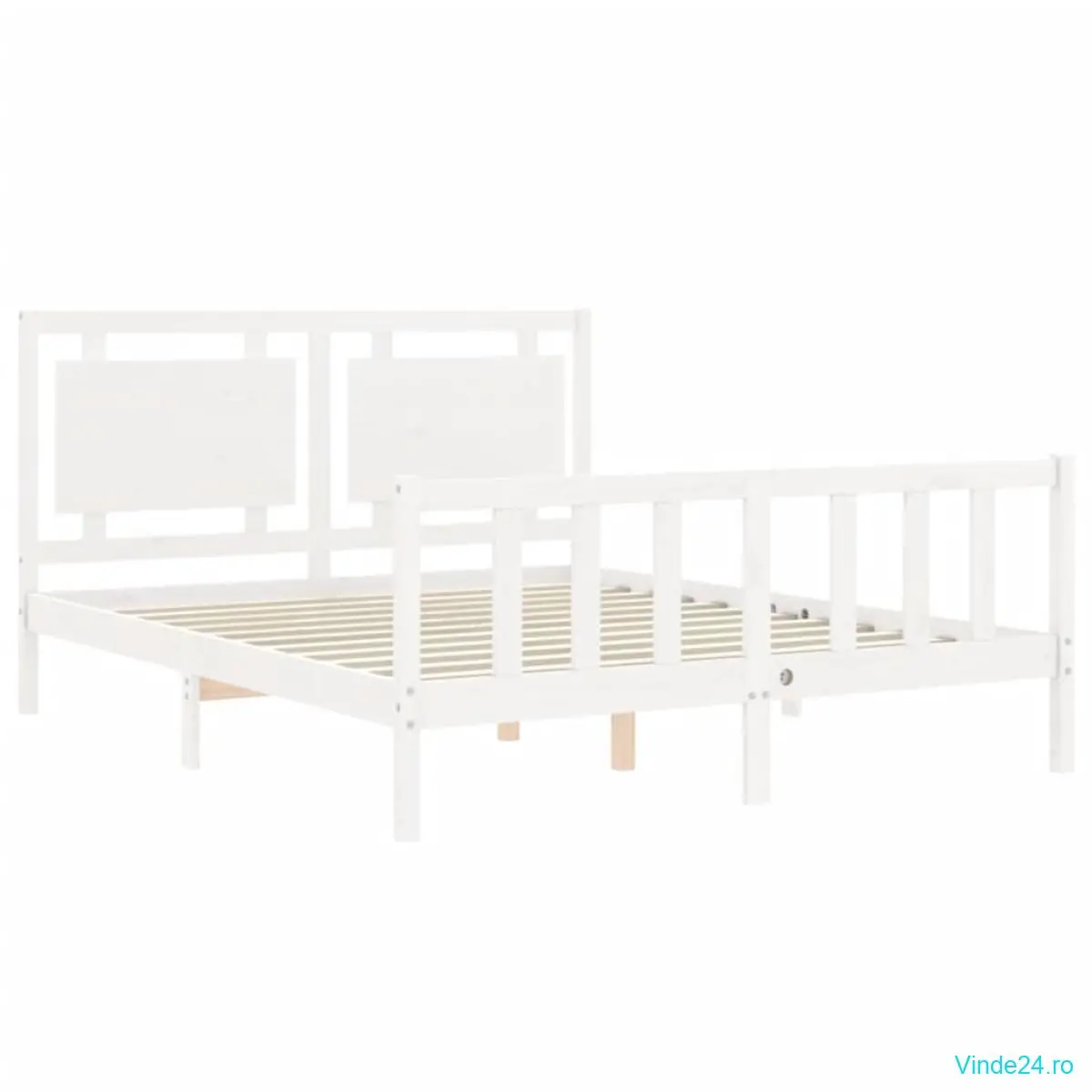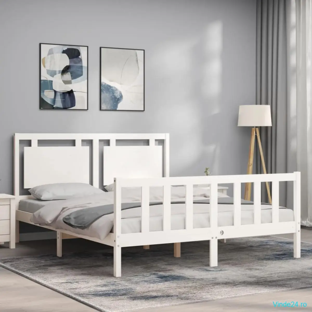 vidaXL Cadru de pat fără saltea, alb, 160x200 cm, lemn masiv pin