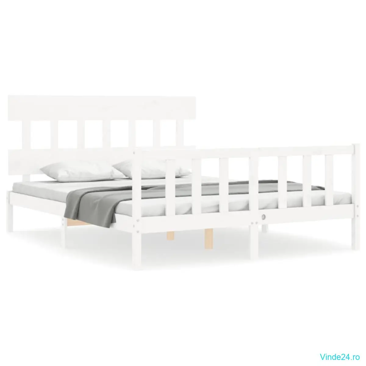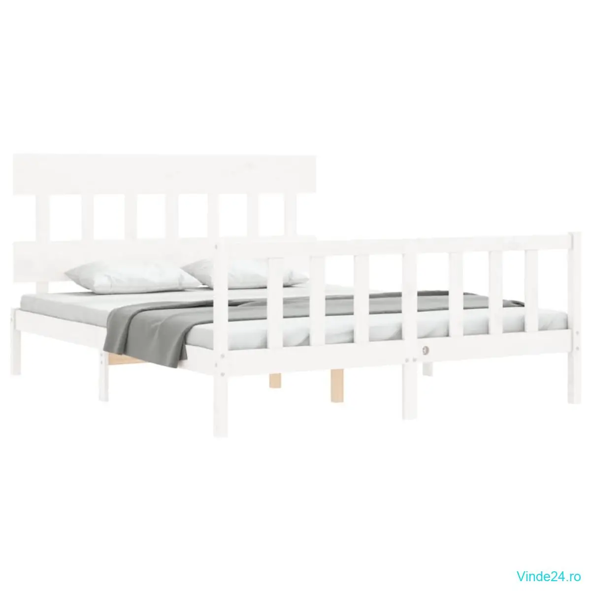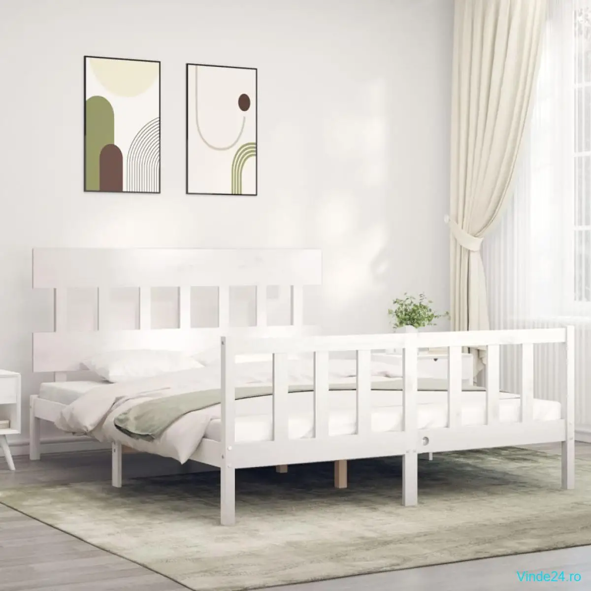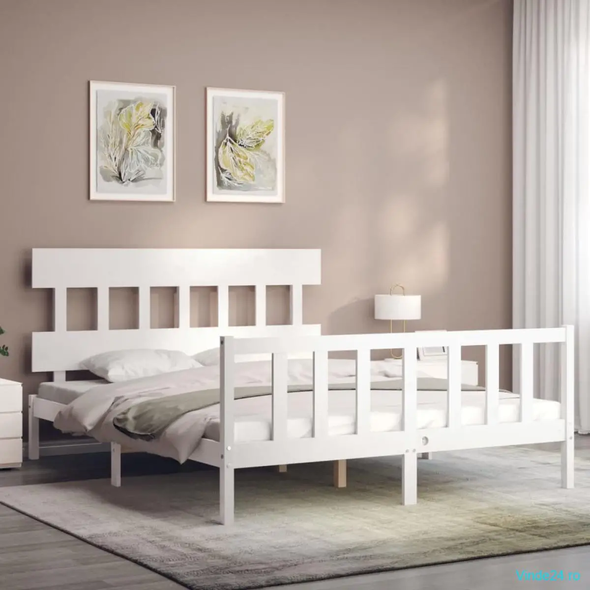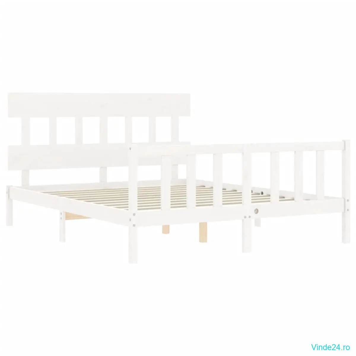 vidaXL Cadru de pat fără saltea, alb, 160x200 cm, lemn masiv pin