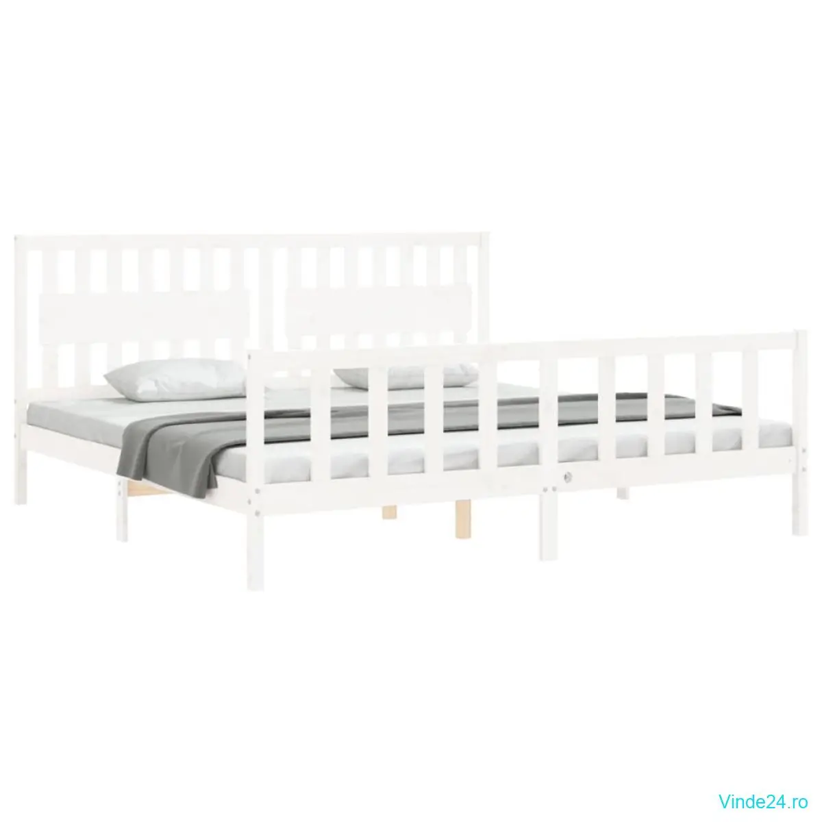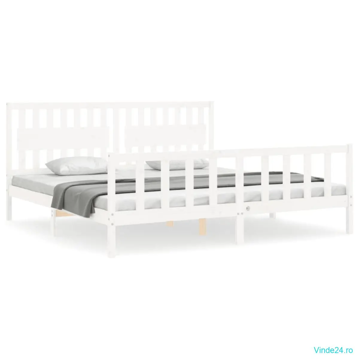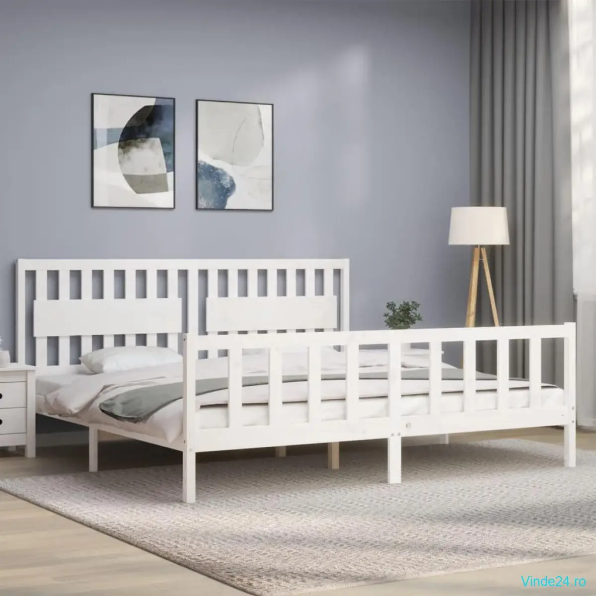 vidaXL Cadru de pat fără saltea, alb, 200x200 cm, lemn masiv pin