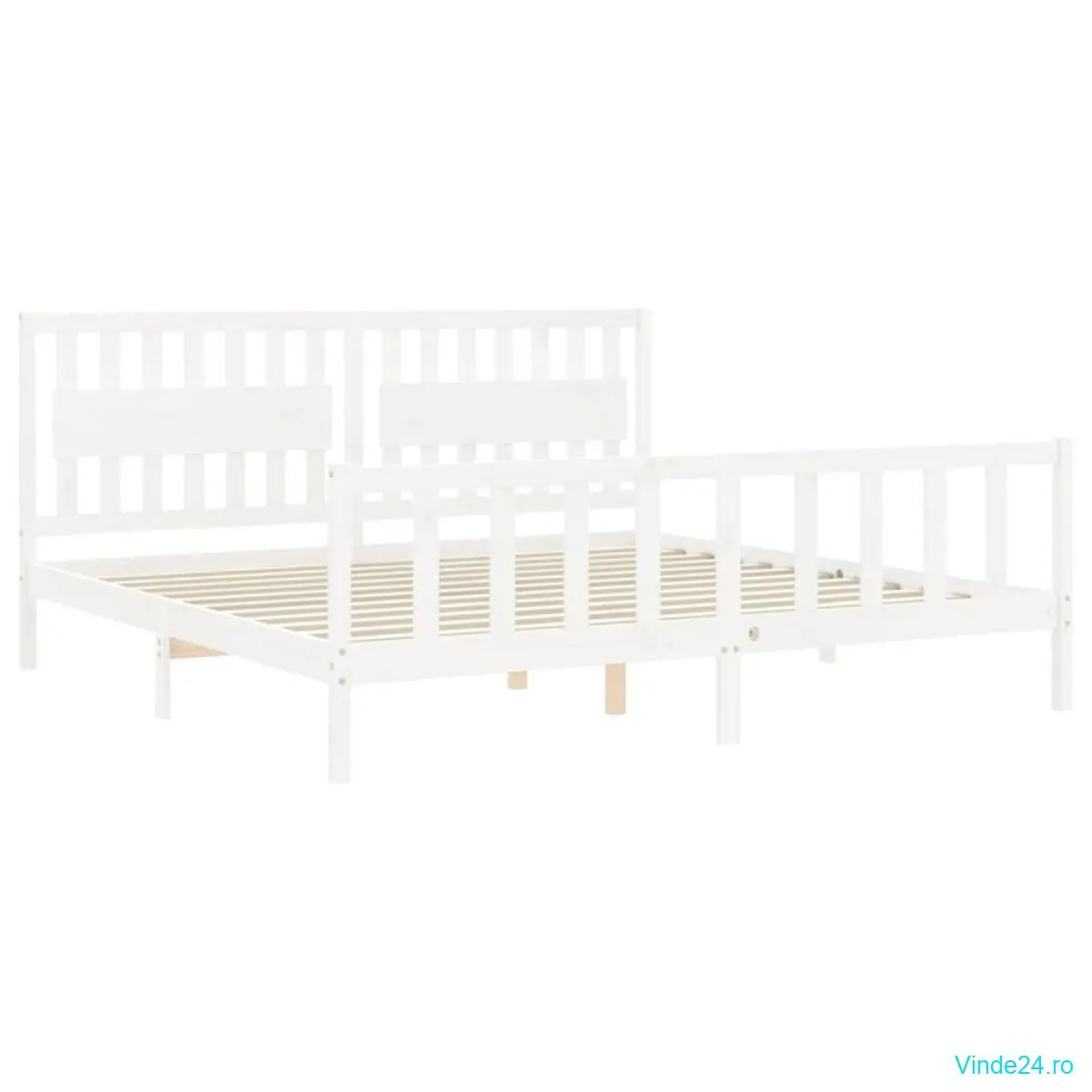vidaXL Cadru de pat fără saltea, alb, 160x200 cm, lemn masiv pin
