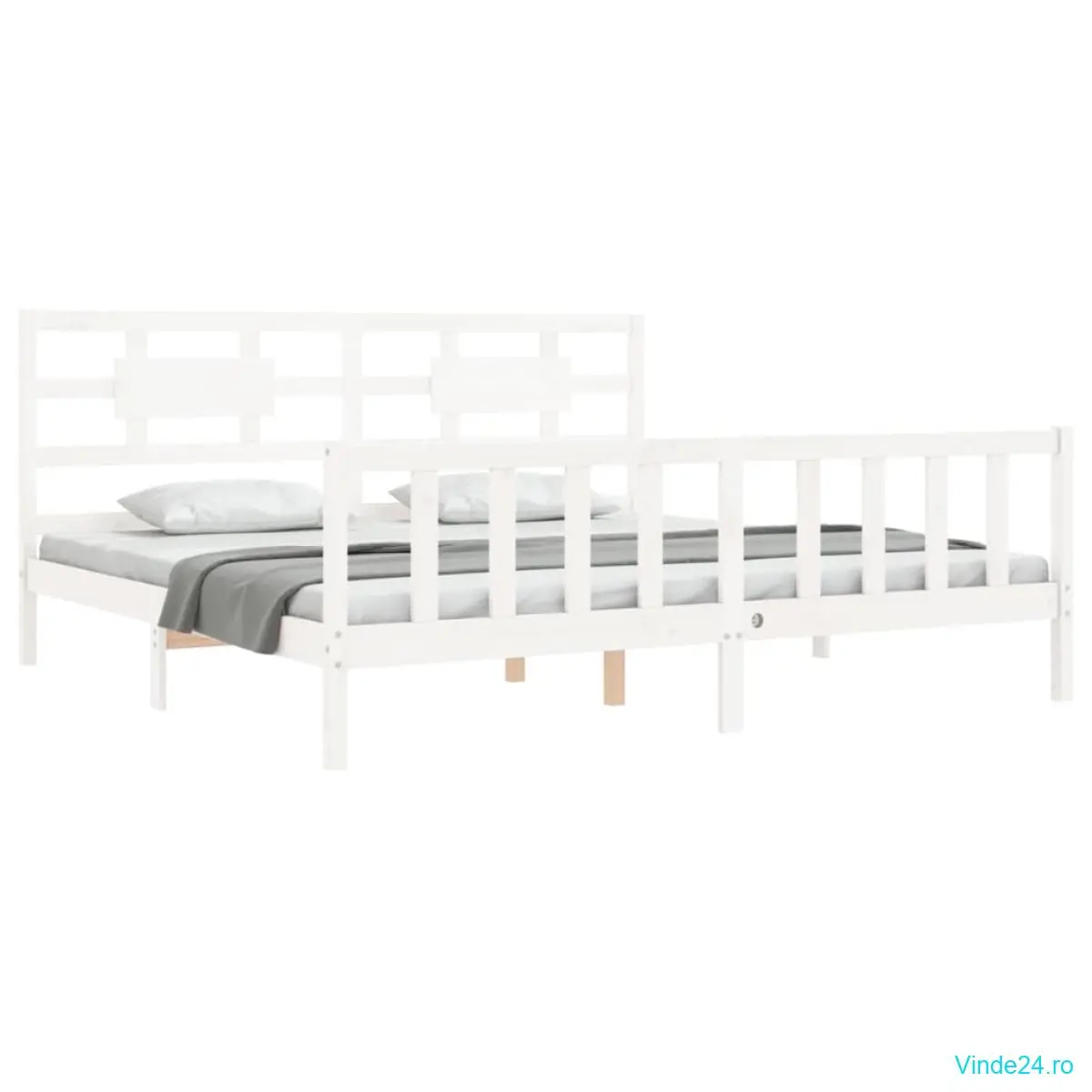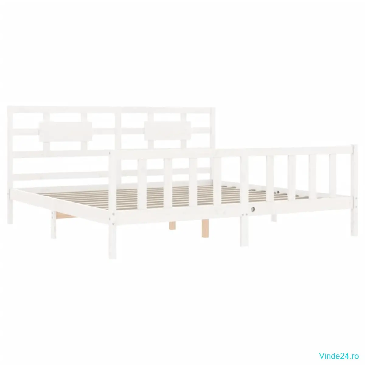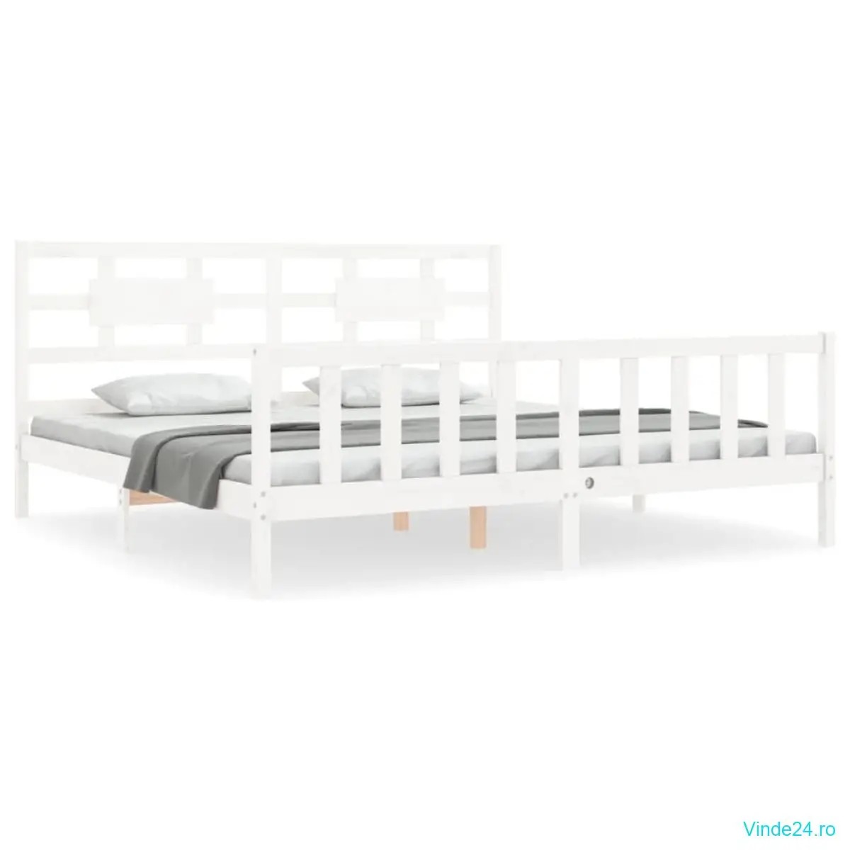 vidaXL Cadru de pat fără saltea, alb, 200x200 cm, lemn masiv pin