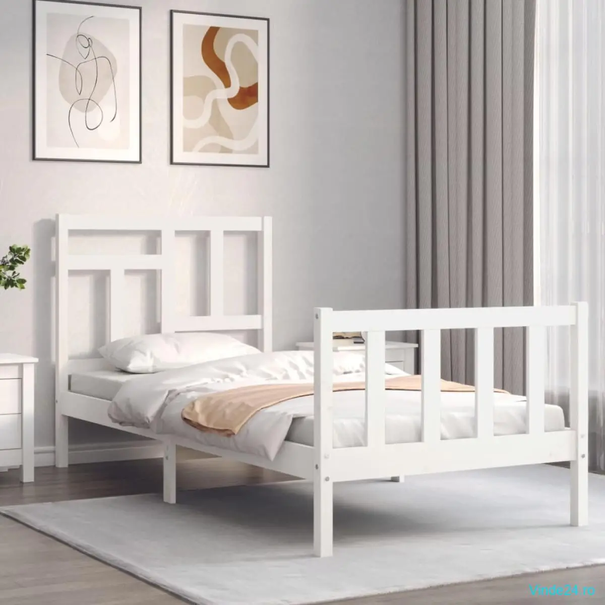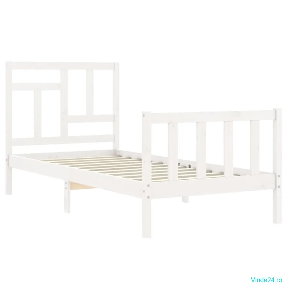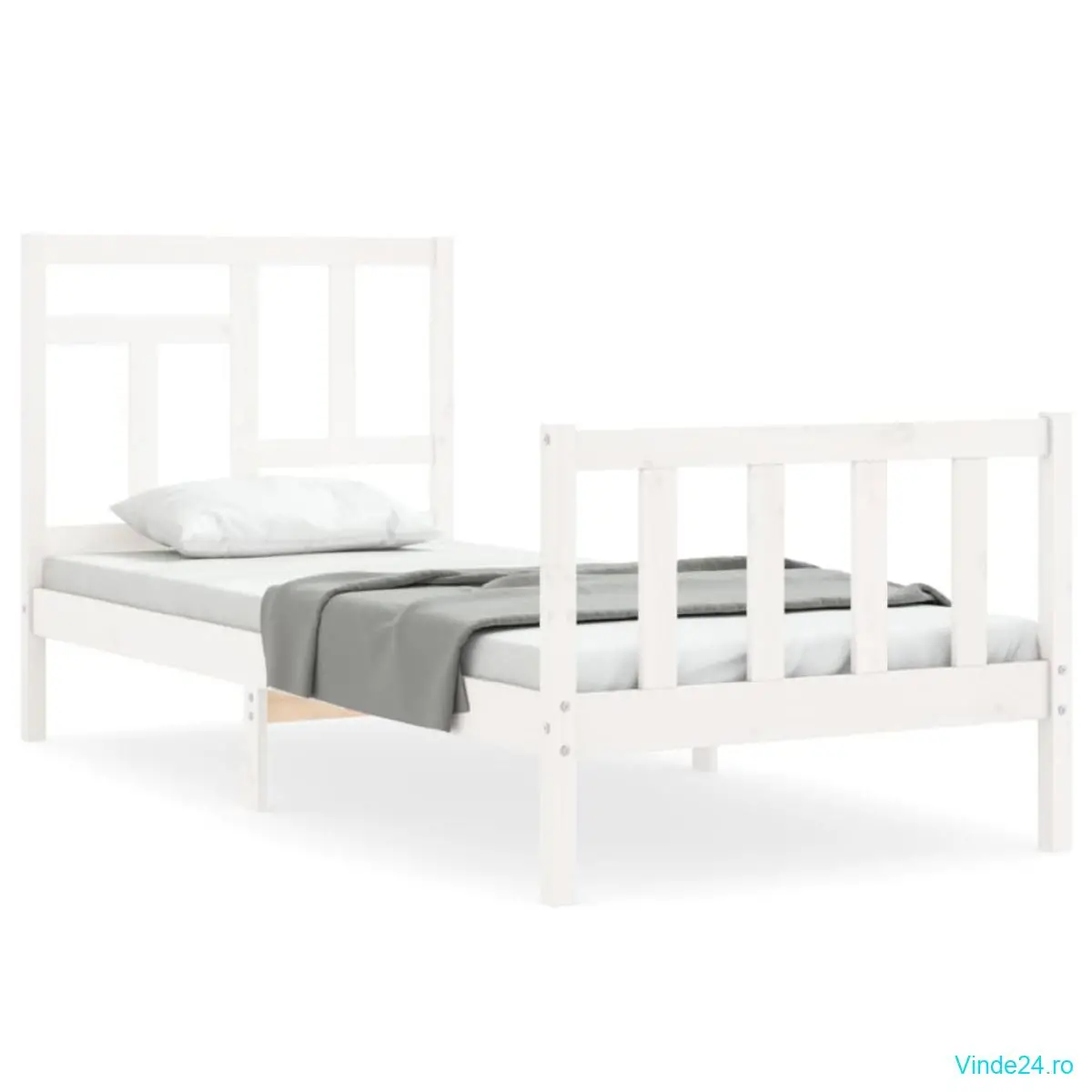 vidaXL Cadru de pat fără saltea, alb, 90x200 cm, lemn masiv pin