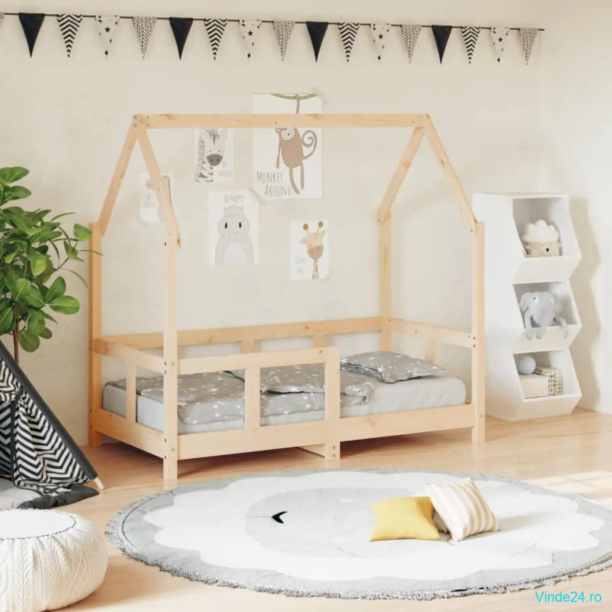 Creați refugiul perfect în dormitorul copiilor dvs. cu acest cadru de pat fantastic pentru copii, construit din lemn!