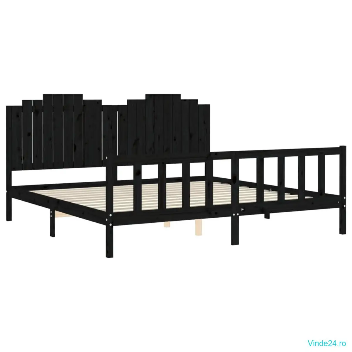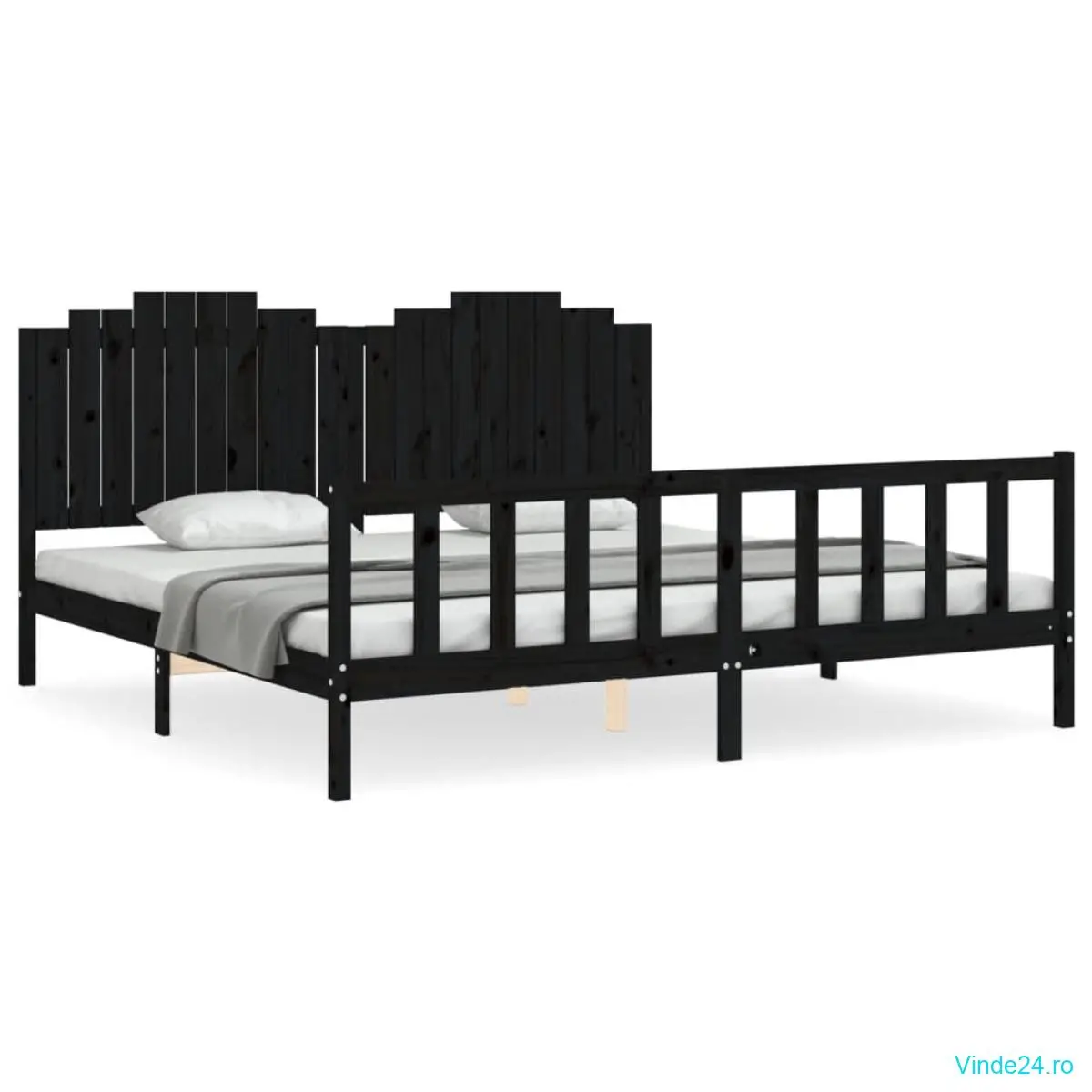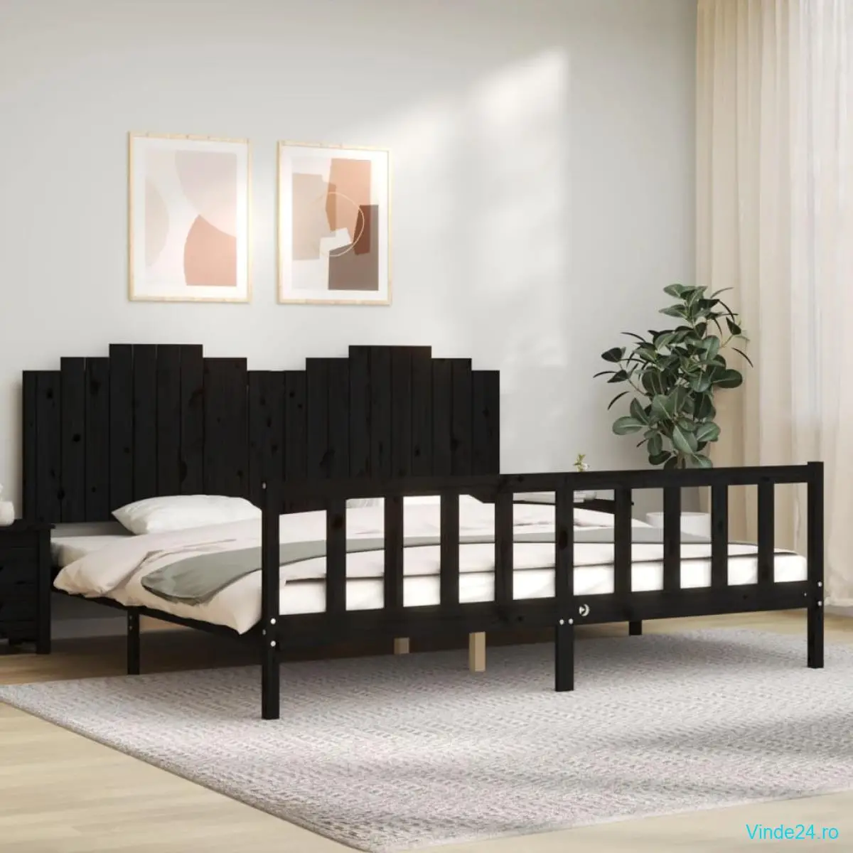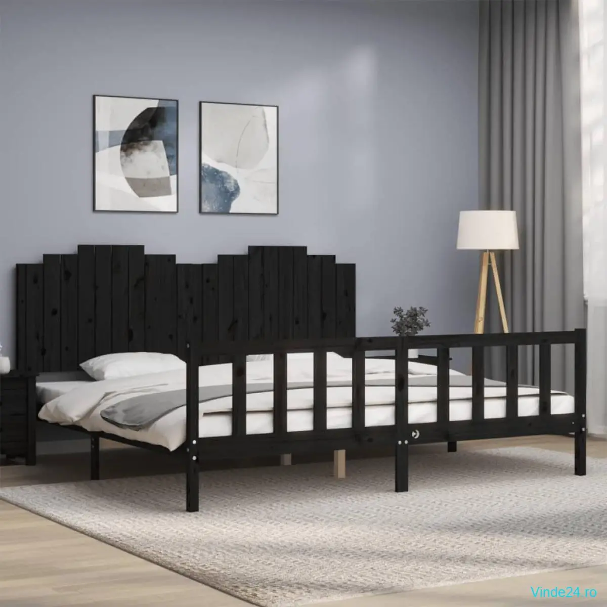 vidaXL Cadru pat cu tăblie 200x200 cm, negru, lemn masiv