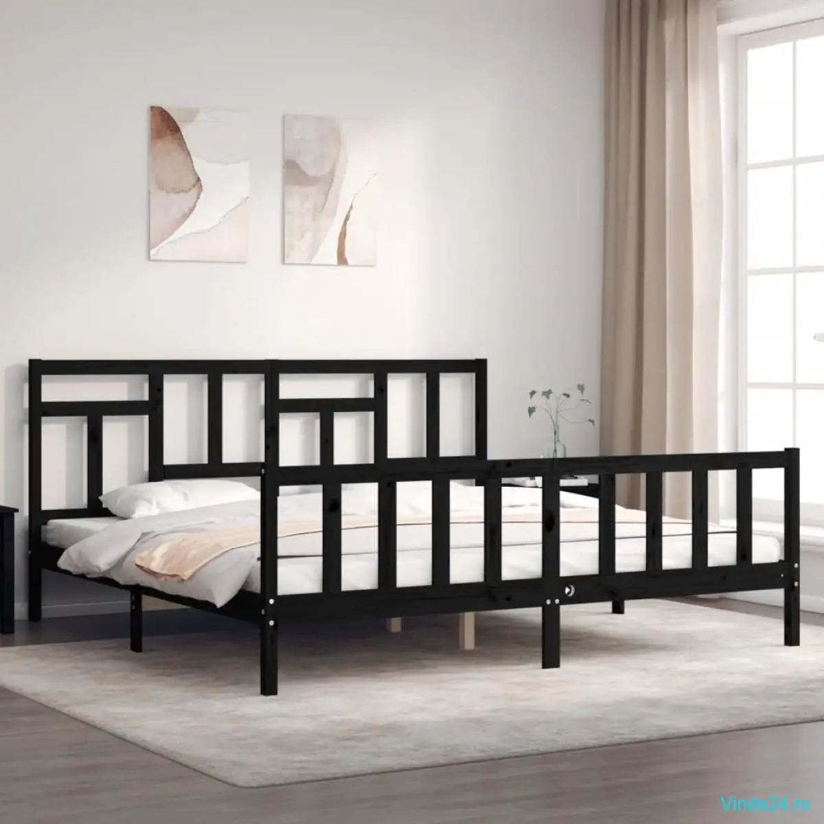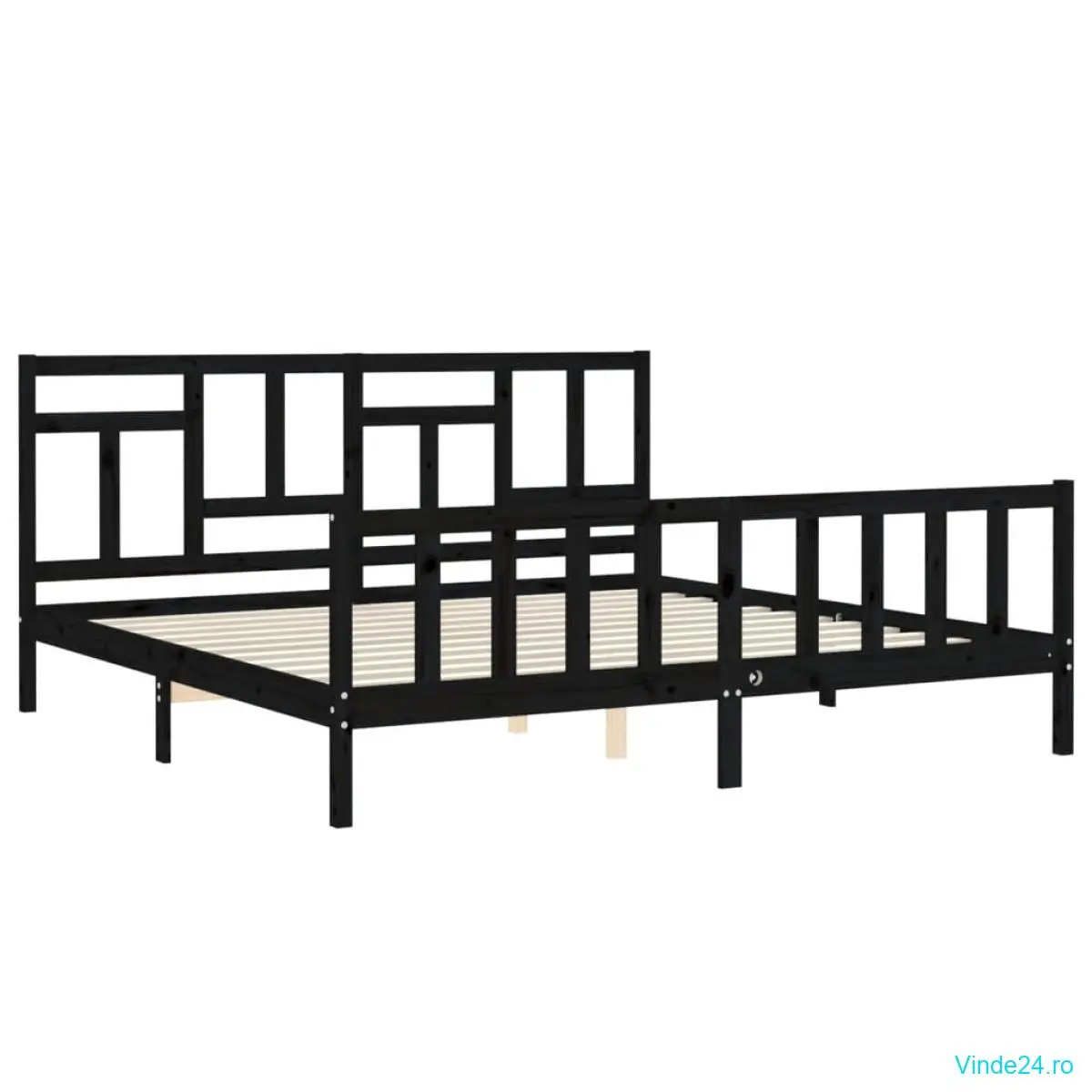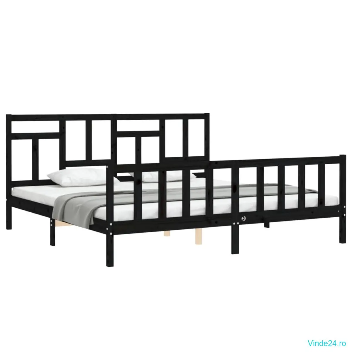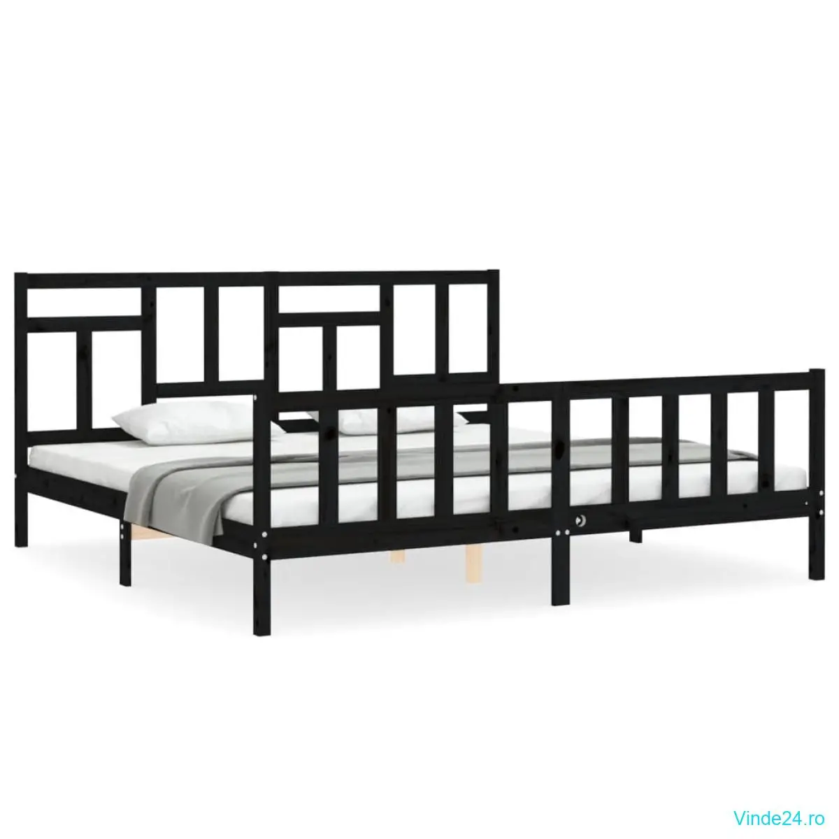 vidaXL Cadru de pat cu tăblie, negru, 180x200 cm, lemn masiv
