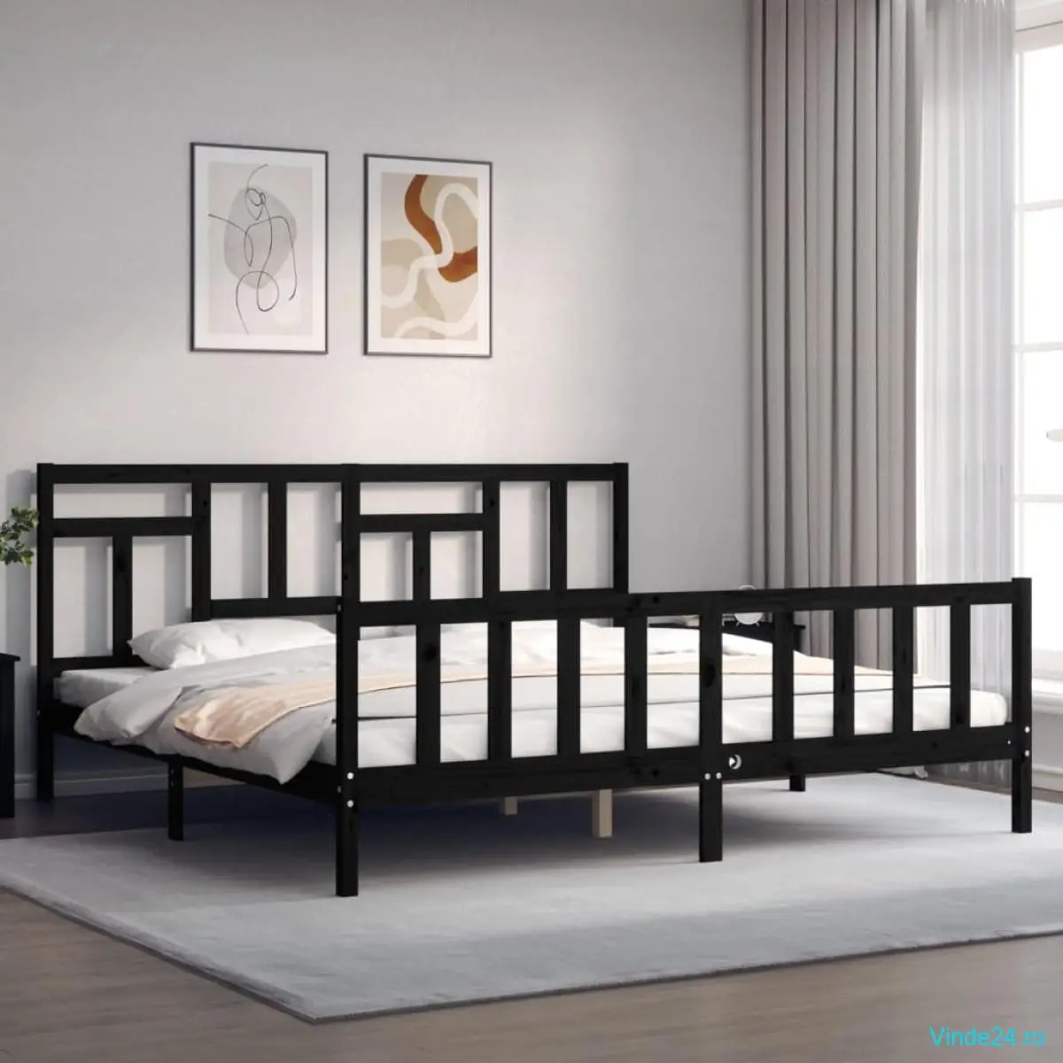 vidaXL Cadru pat cu tăblie 200x200 cm, negru, lemn masiv