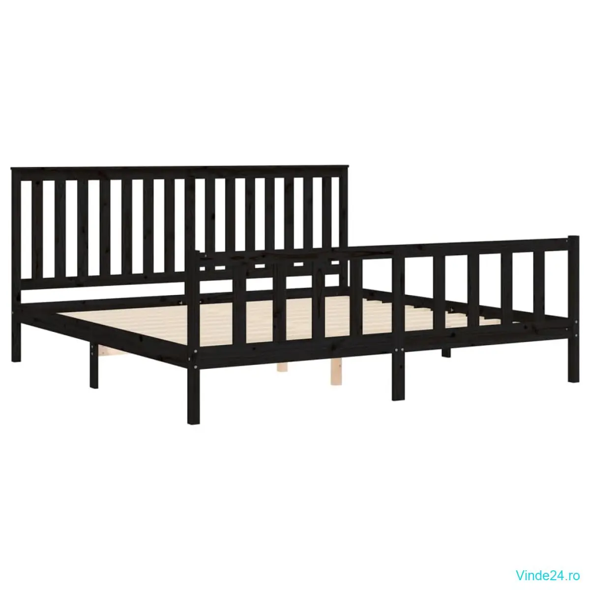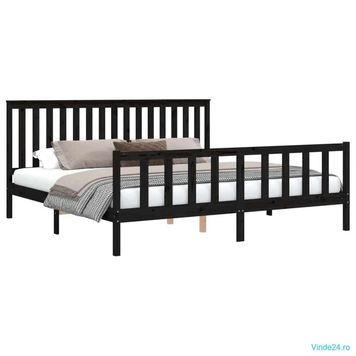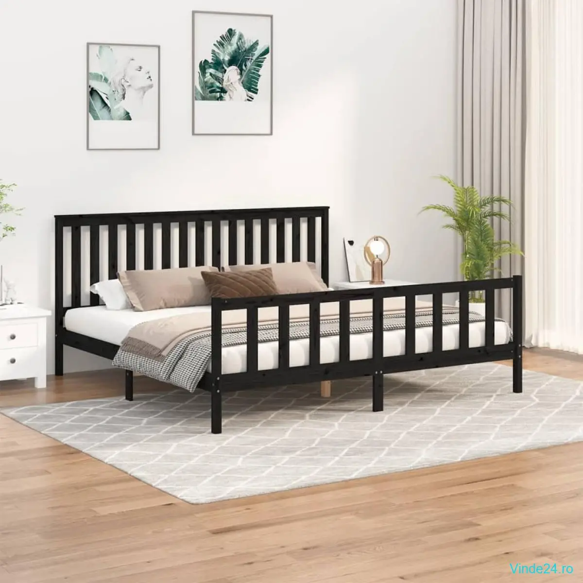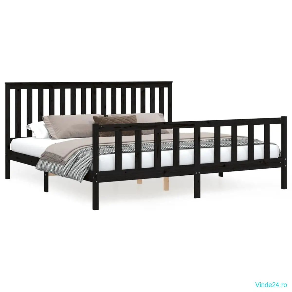 vidaXL Cadru pat cu tăblie Super King negru 180x200 cm lemn masiv pin