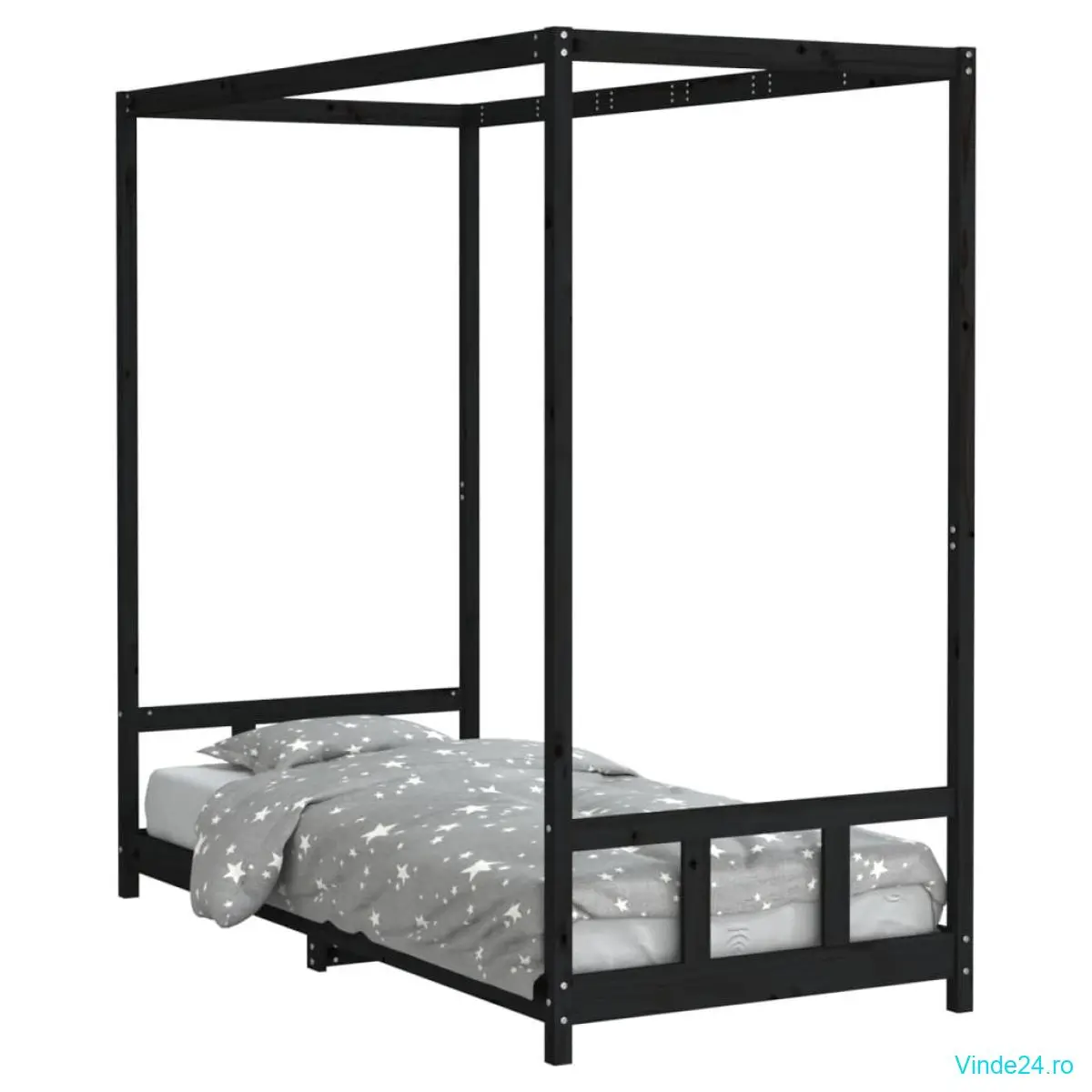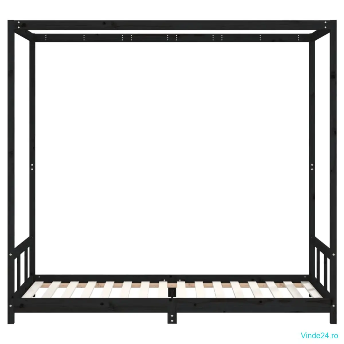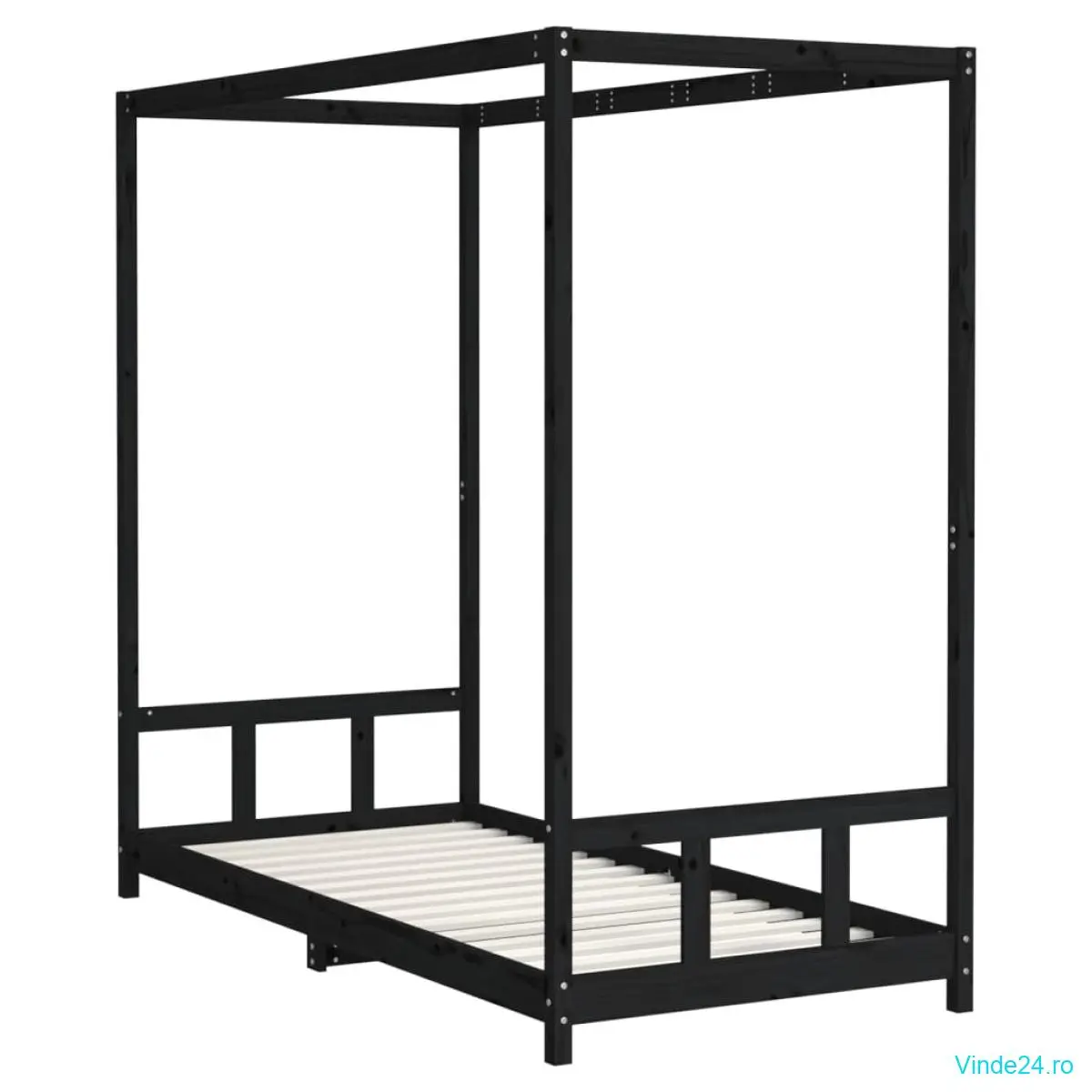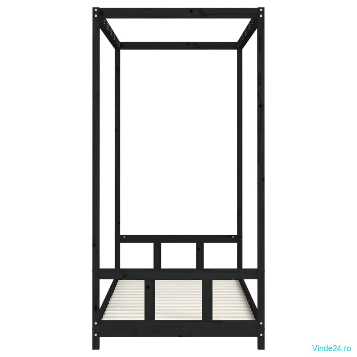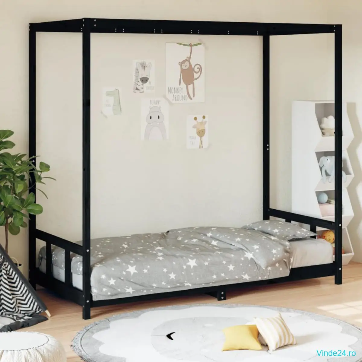 vidaXL Cadru pat pentru copii, negru, 90x200 cm, lemn masiv de pin