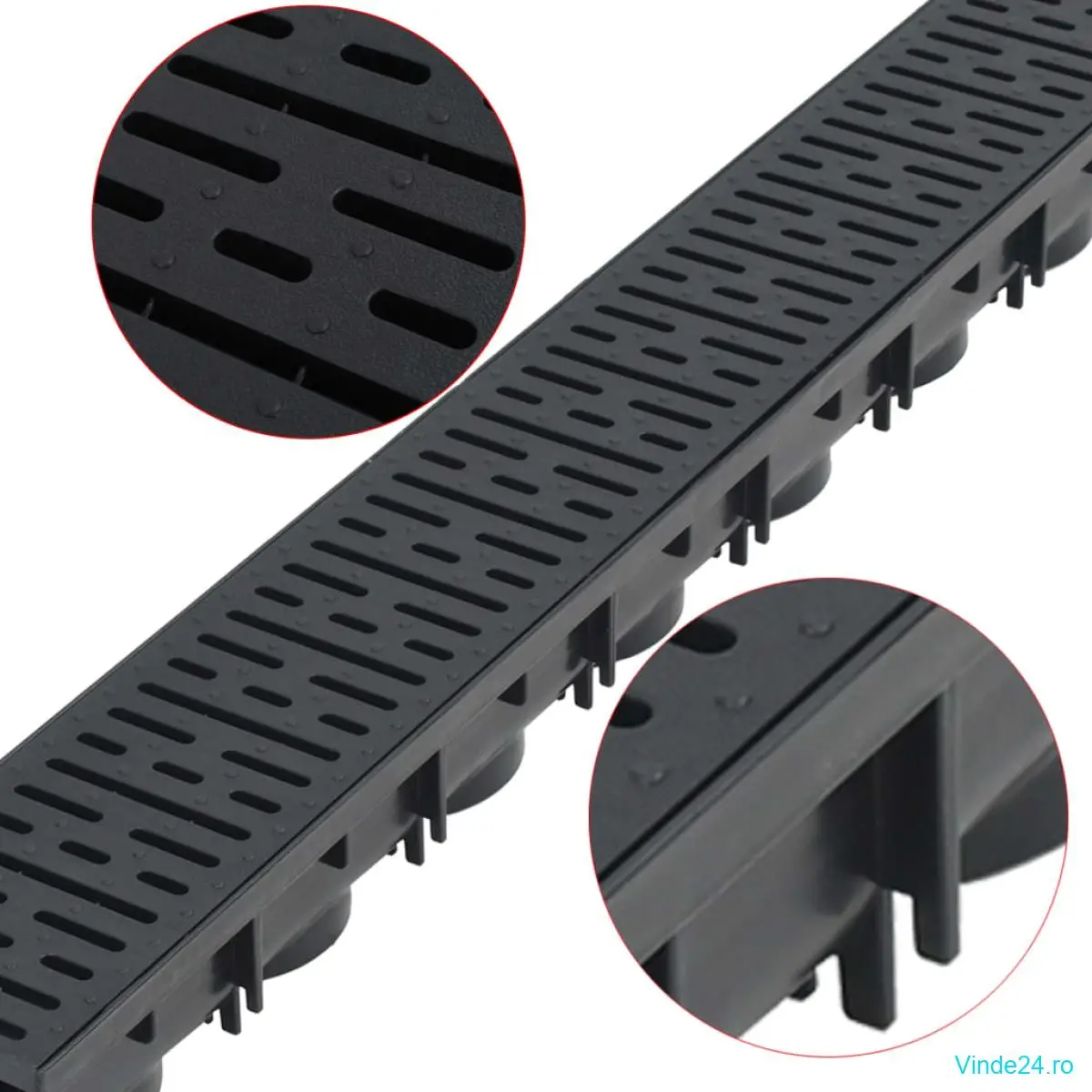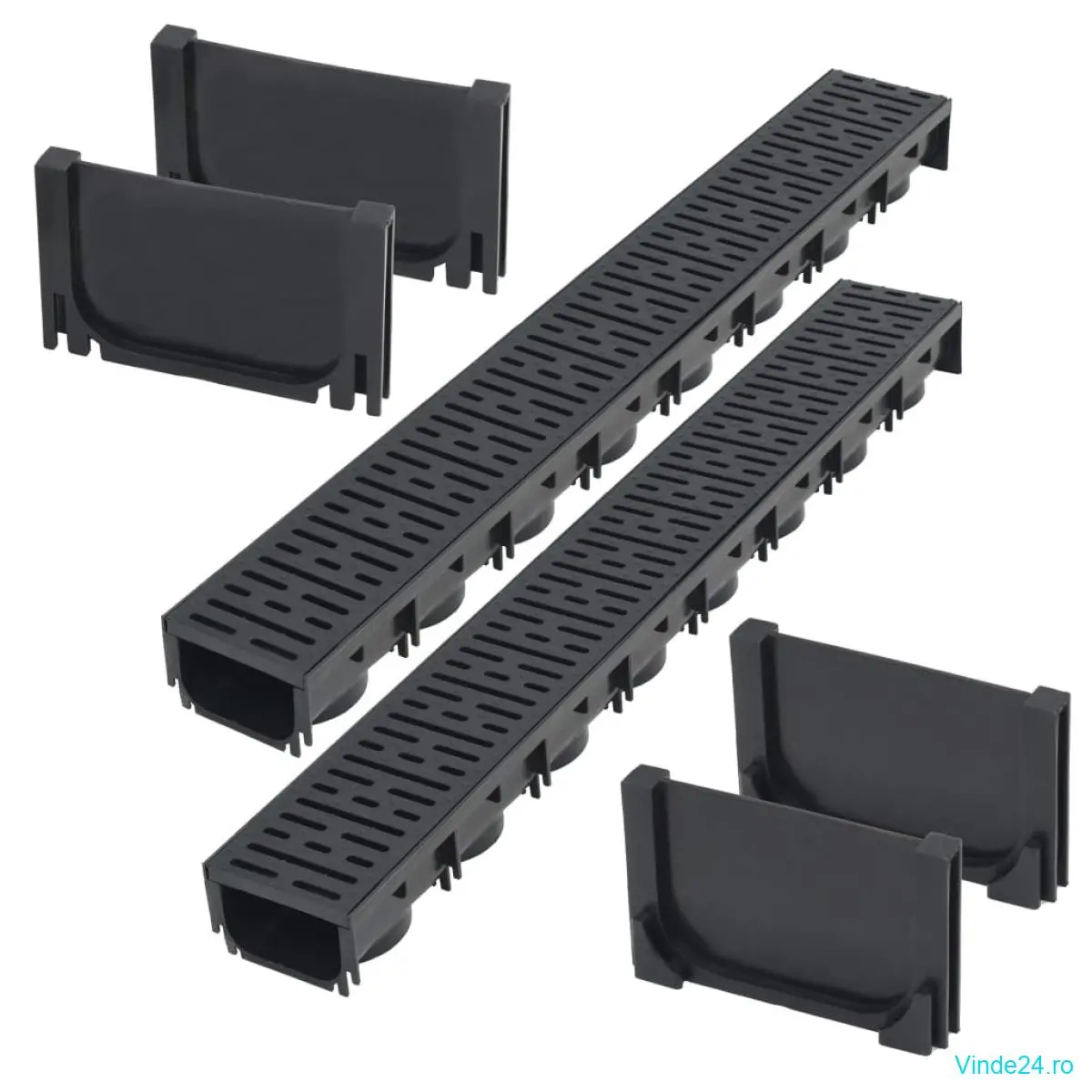 Acest set complet este alcătuit din 2 canale de drenaj (fiecare cu un grătar din plastic) și 4 capace pentru capete. Acest set reprezintă soluția perfectă pentru colectarea și îndepărtarea excesului de apă de pe drumurile de acces, terase și alte zone exterioare.