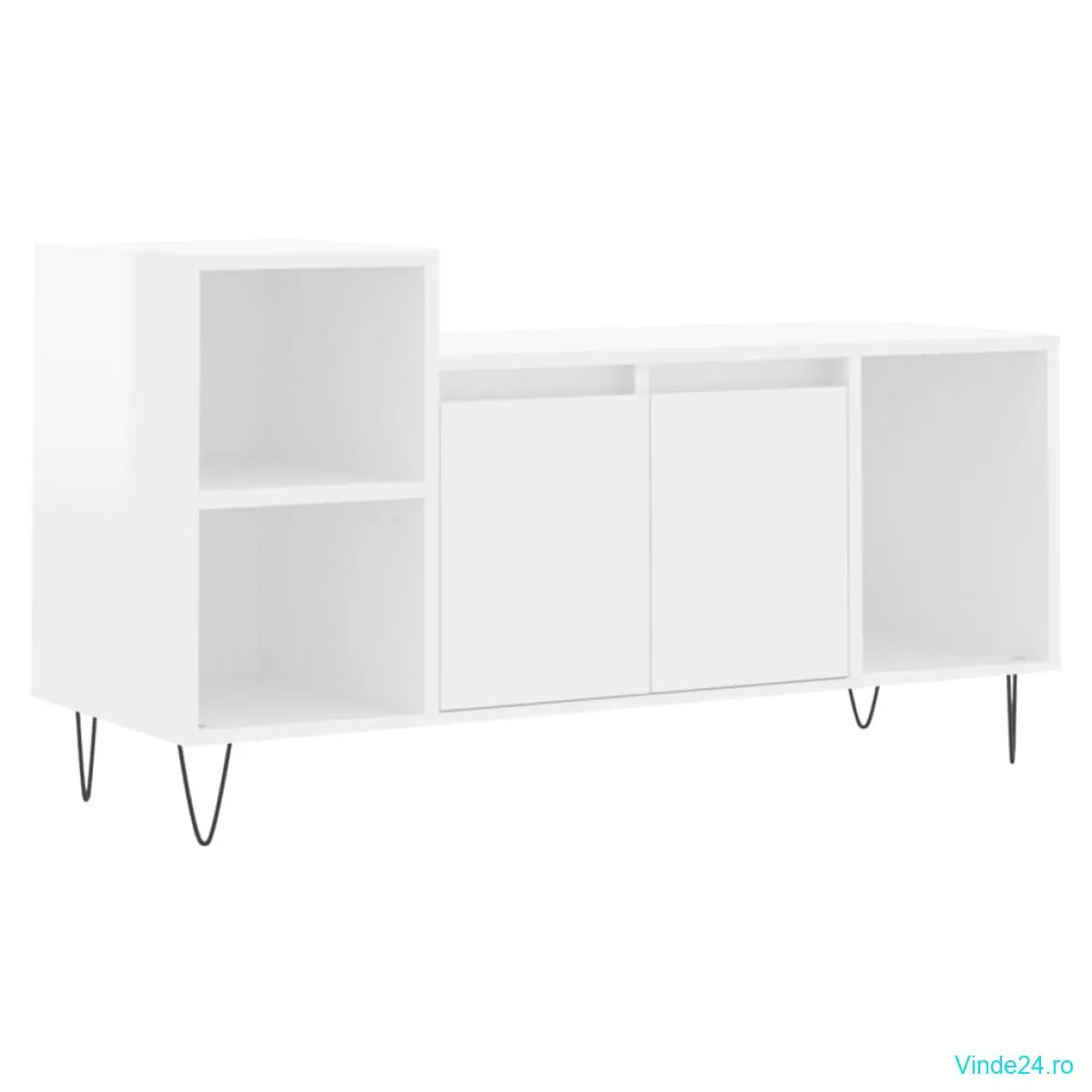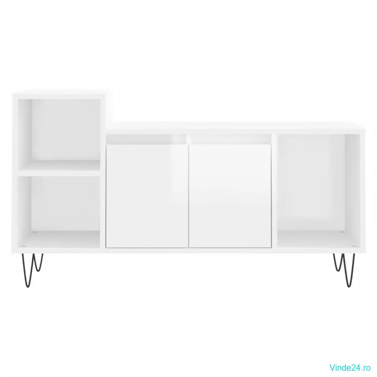 vidaXL Comodă TV, alb extralucios, 100x35x55 cm, lemn prelucrat