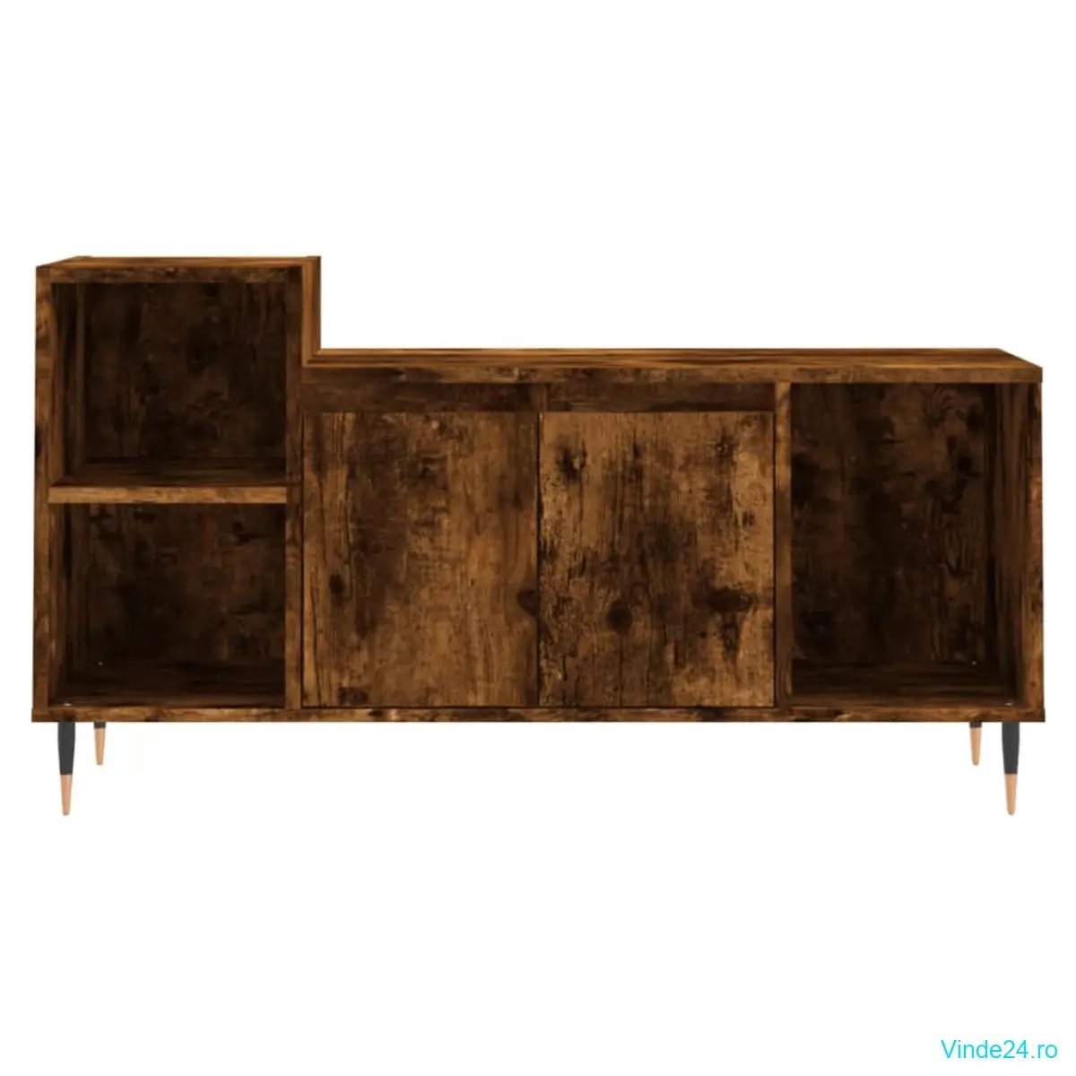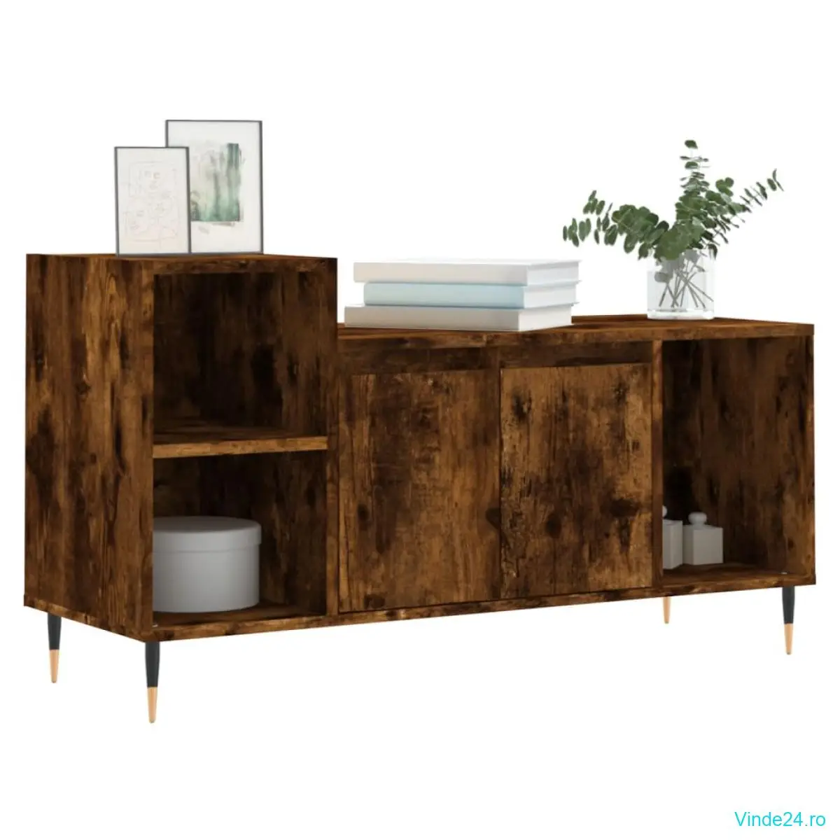 vidaXL Comodă TV, stejar fumuriu, 100x35x55 cm, lemn prelucrat