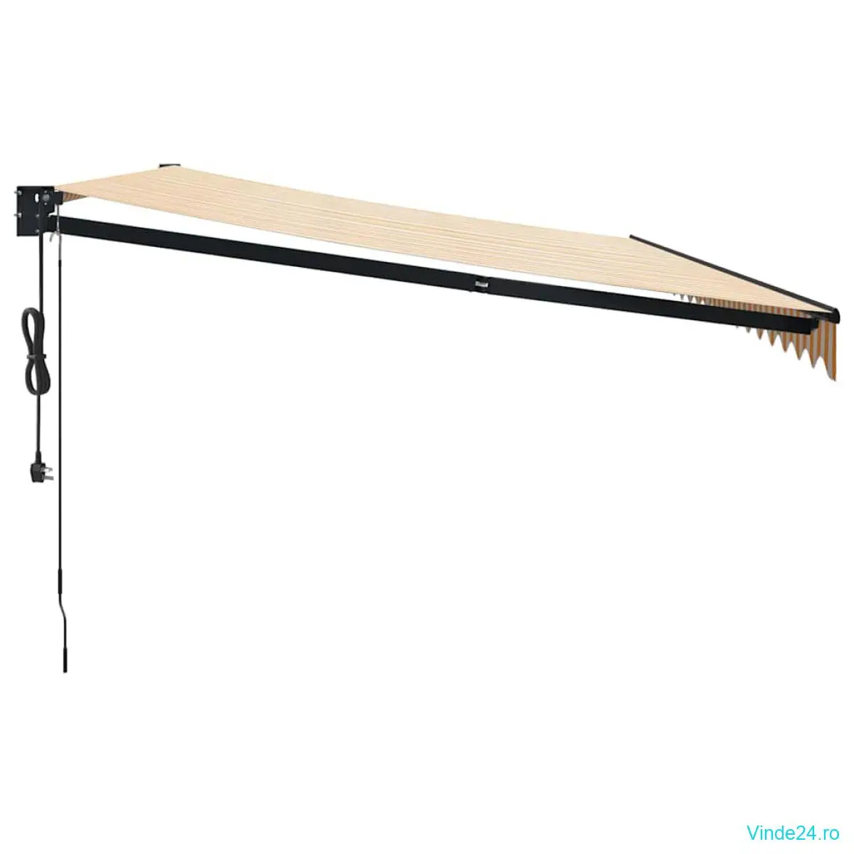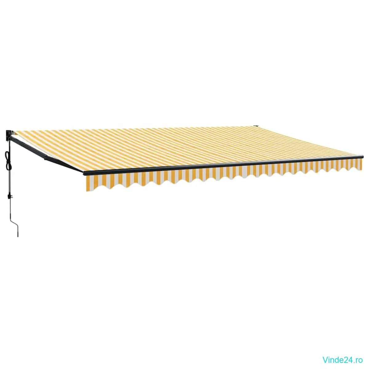vidaXL Copertină retractabilă automată, galben și alb, 5x3 m