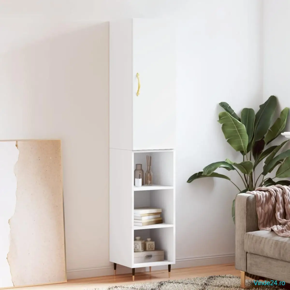 vidaXL Dulap înalt, alb, 34,5x34x180 cm, lemn prelucrat
