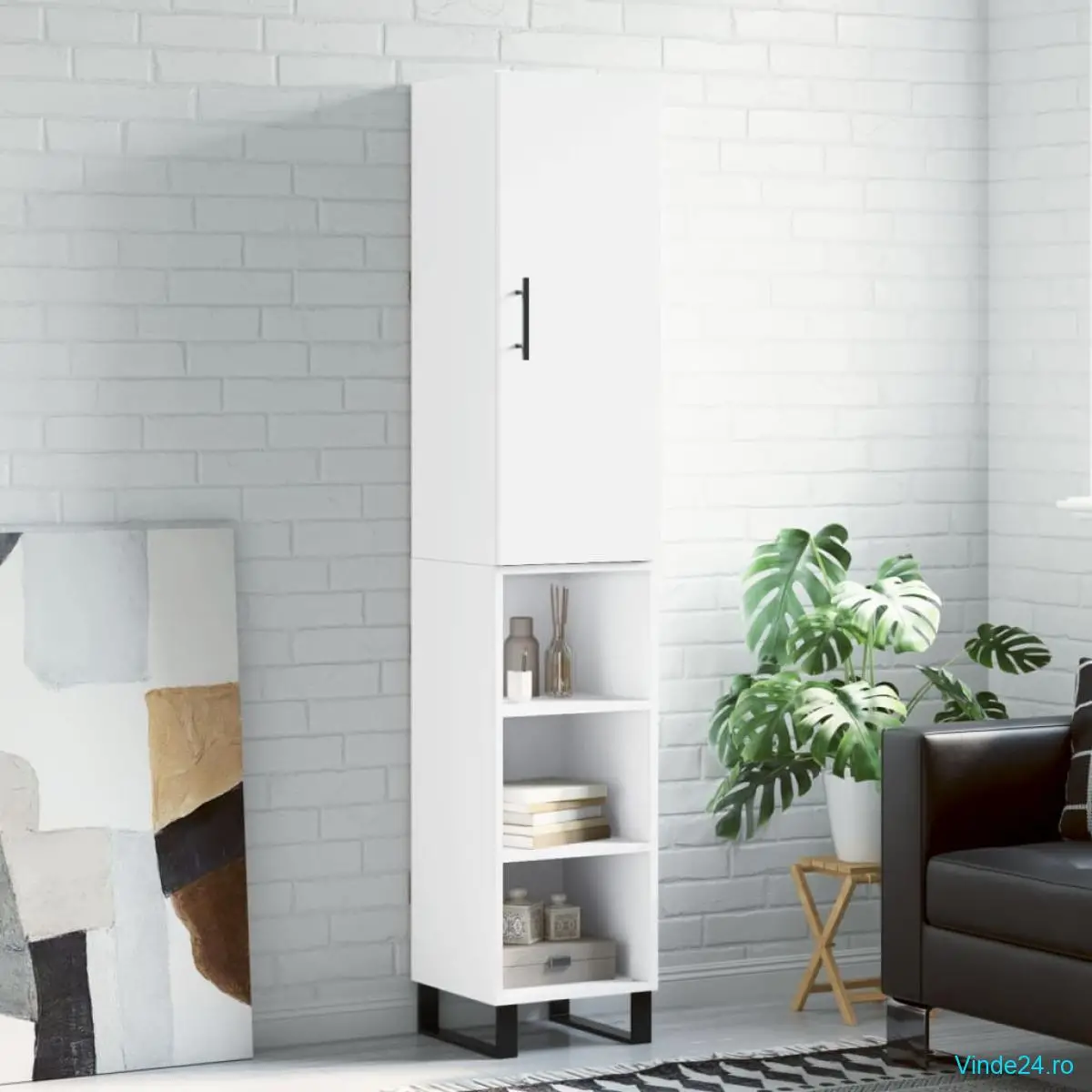 vidaXL Dulap înalt, alb, 34,5x34x180 cm, lemn prelucrat