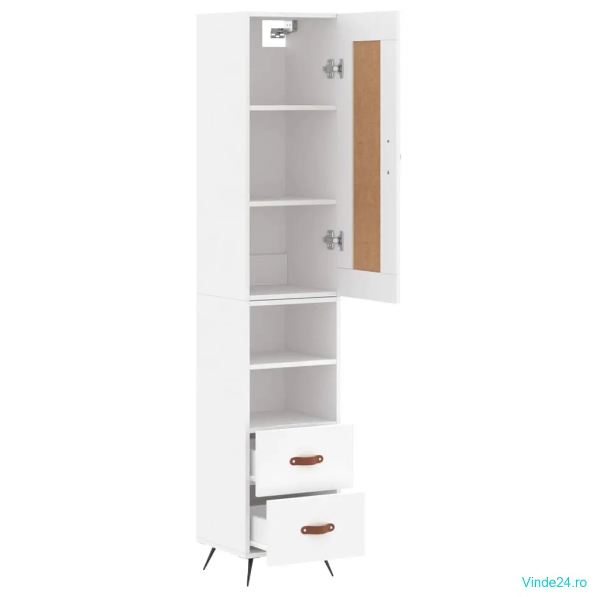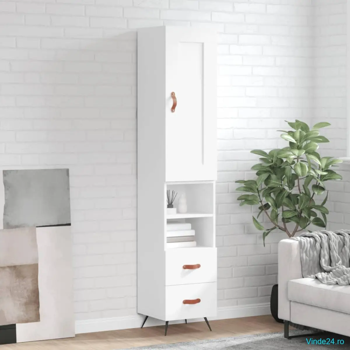 vidaXL Dulap înalt, alb, 34,5x34x180 cm, lemn prelucrat