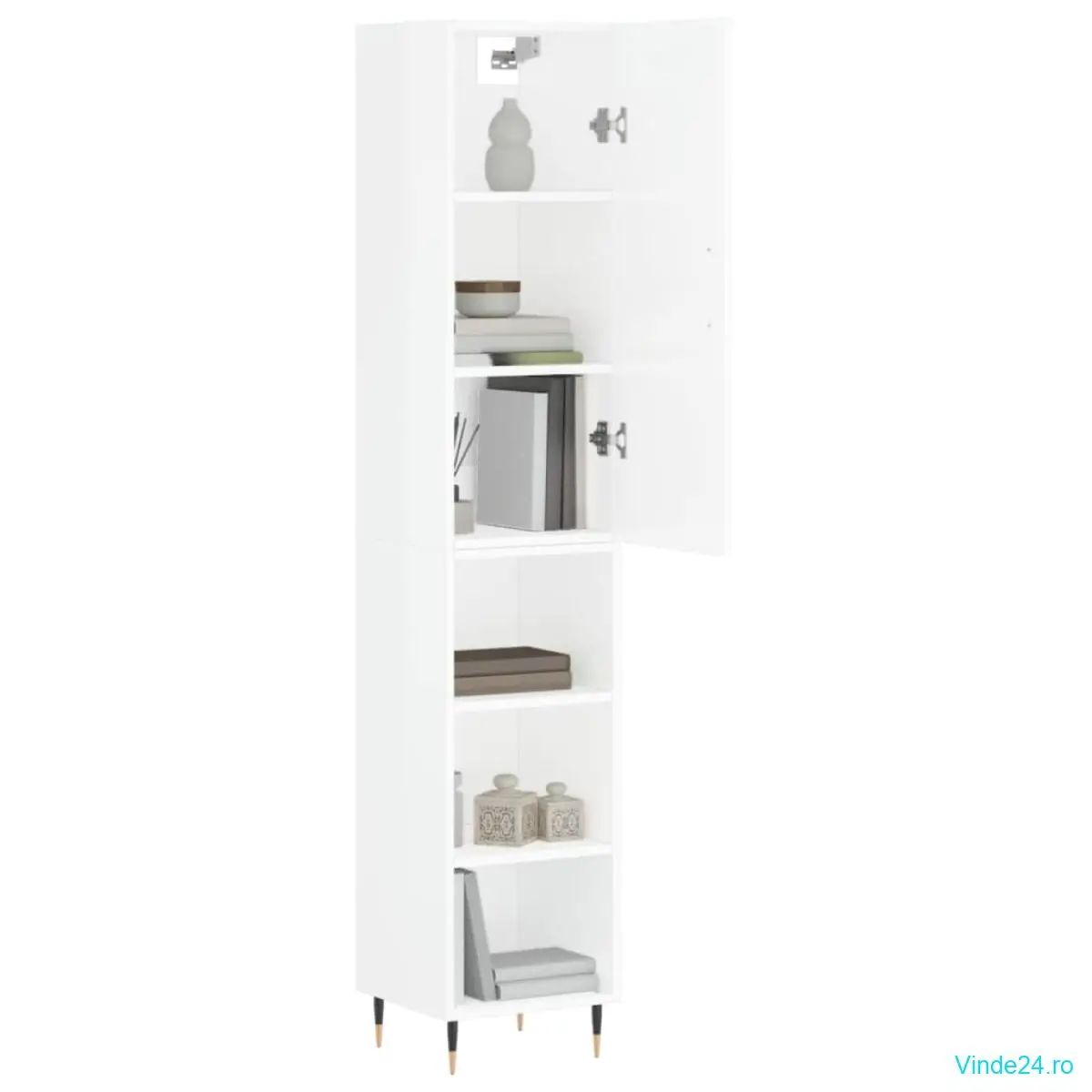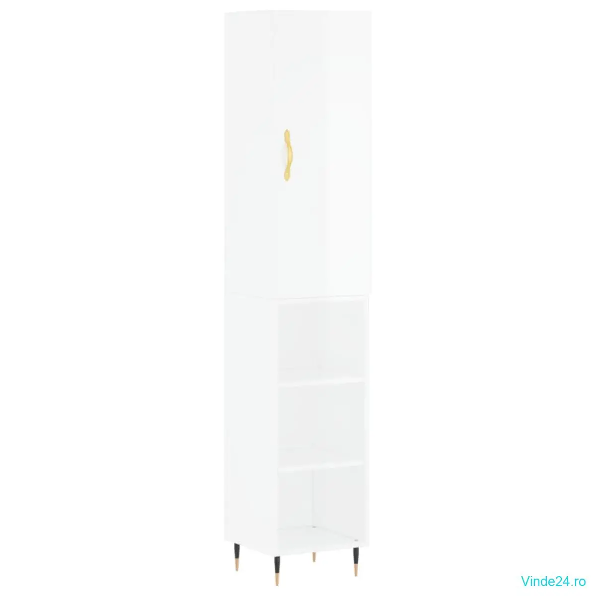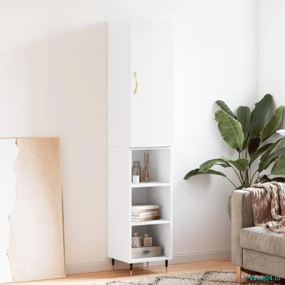 vidaXL Dulap înalt, alb extralucios, 34,5x34x180 cm, lemn prelucrat