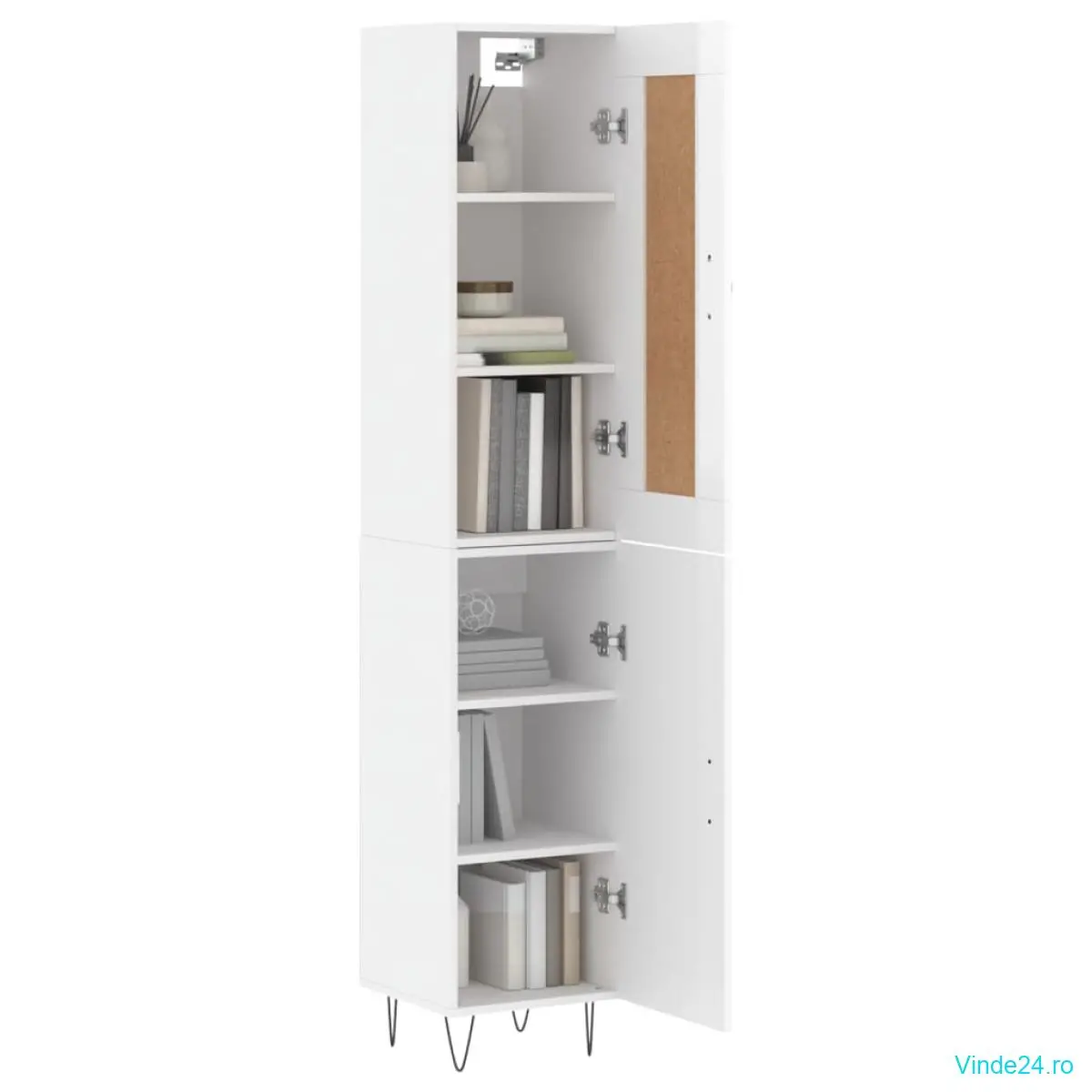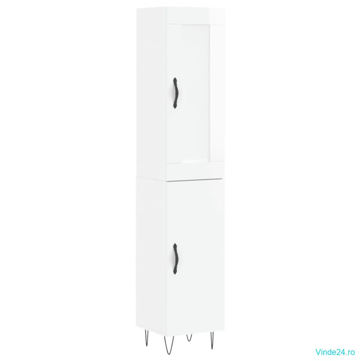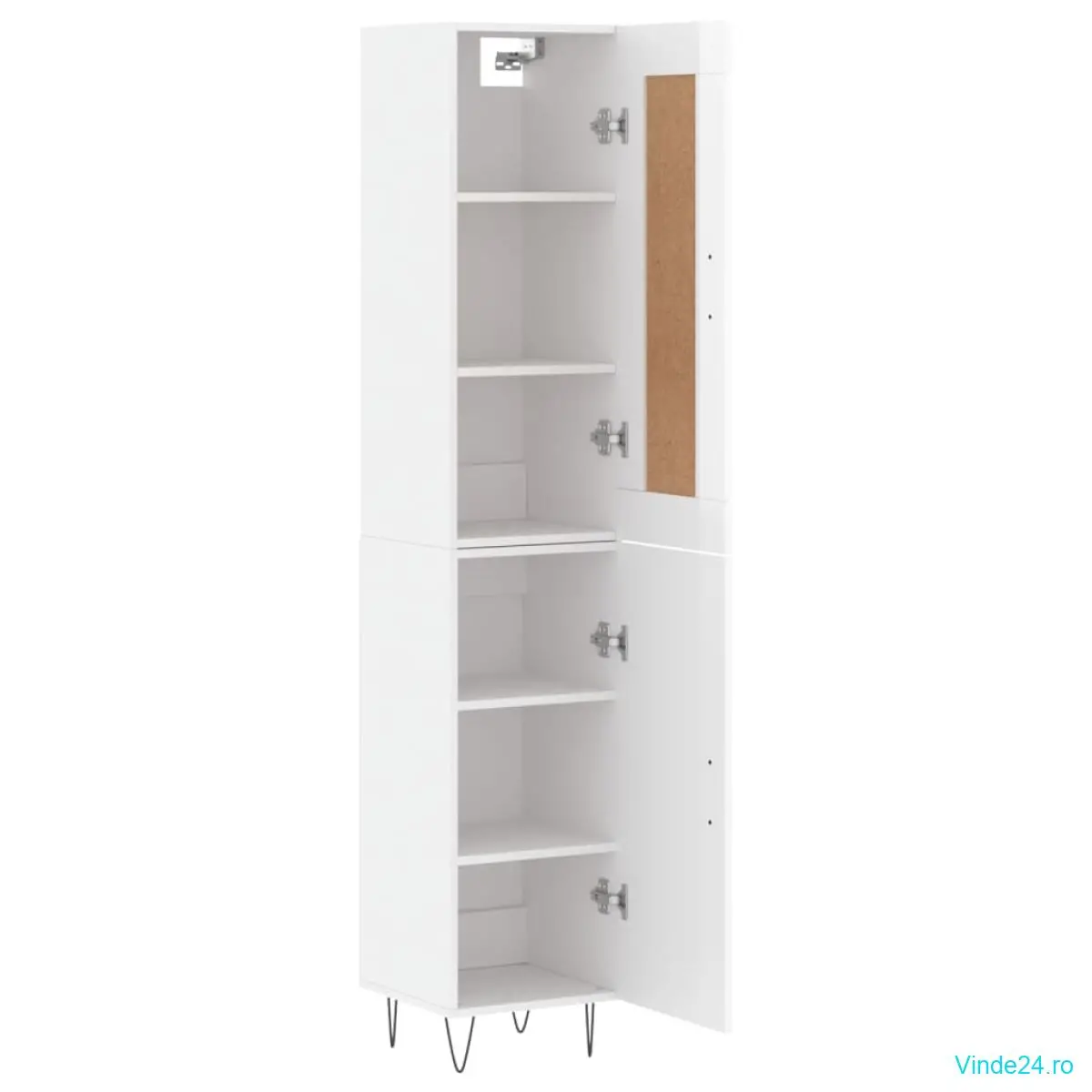 vidaXL Dulap înalt, alb extralucios, 34,5x34x180 cm, lemn prelucrat