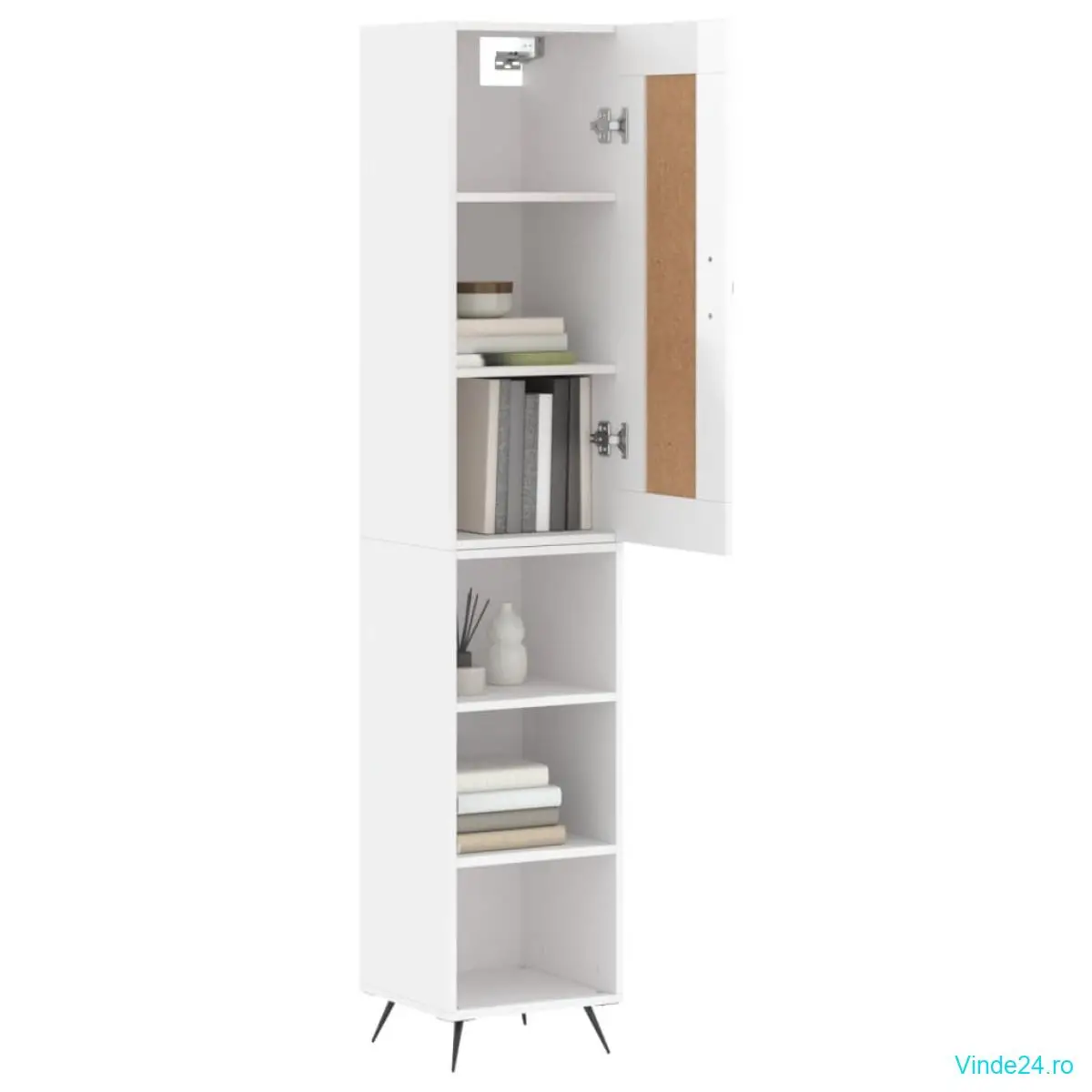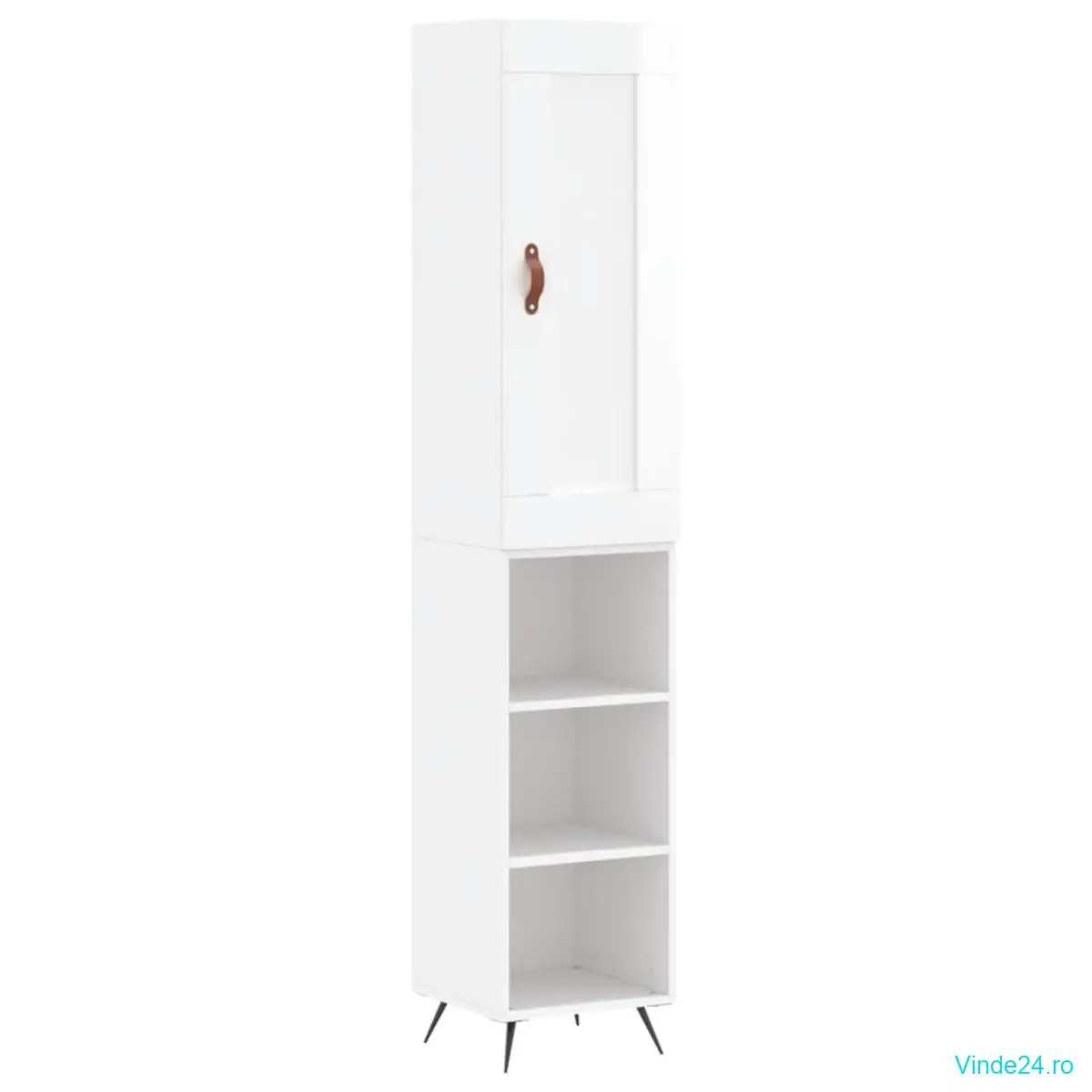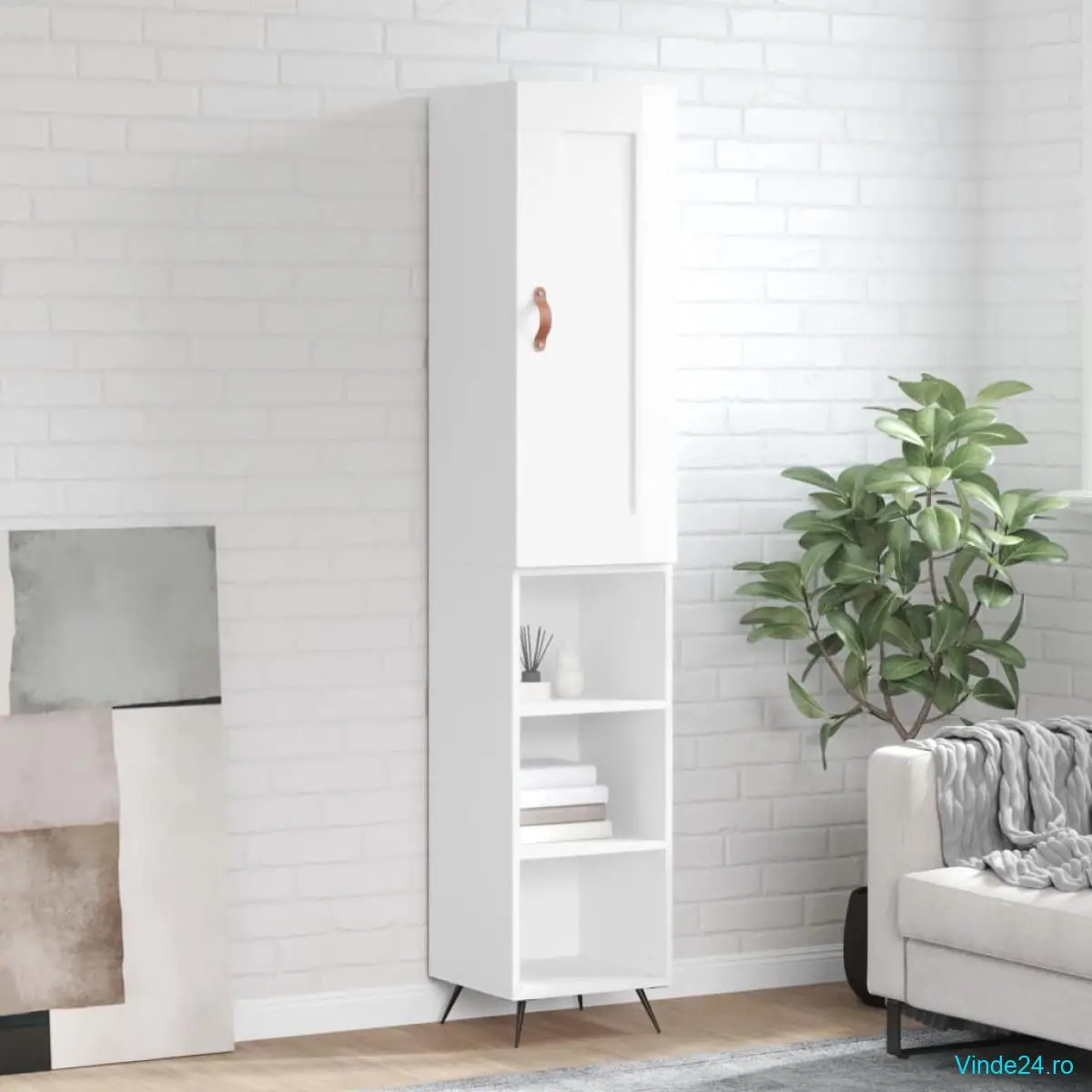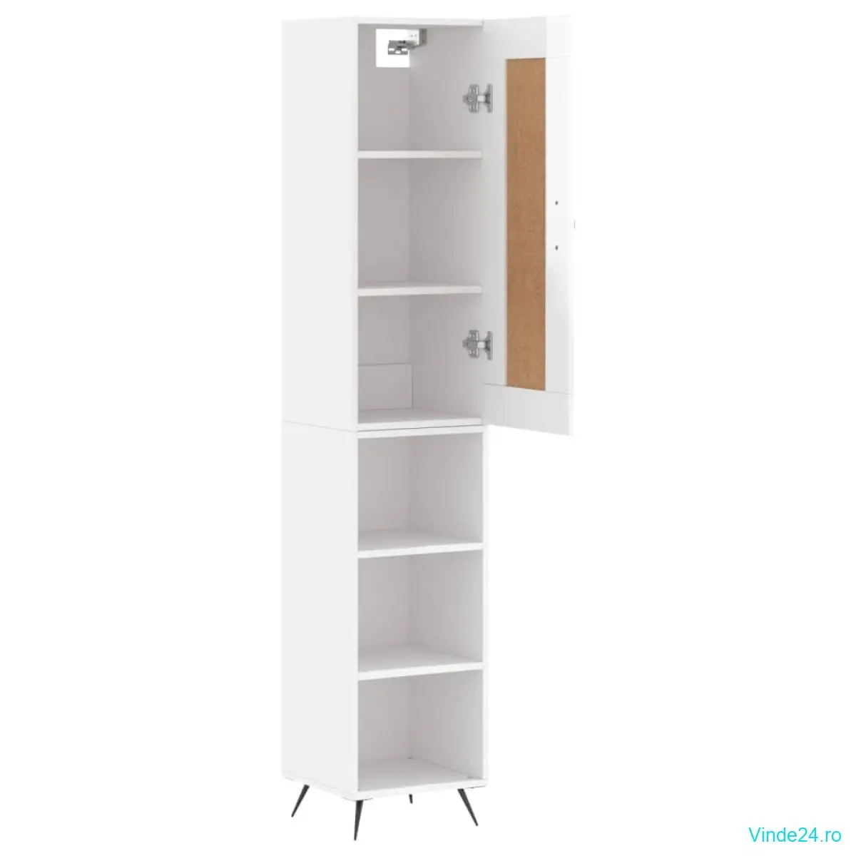 vidaXL Dulap înalt, alb extralucios, 34,5x34x180 cm, lemn prelucrat