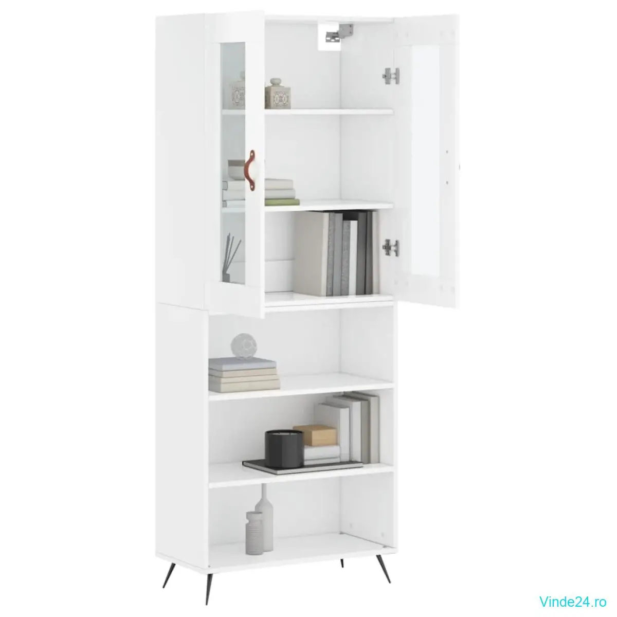 vidaXL Dulap înalt, alb extralucios, 69,5x34x180 cm, lemn compozit