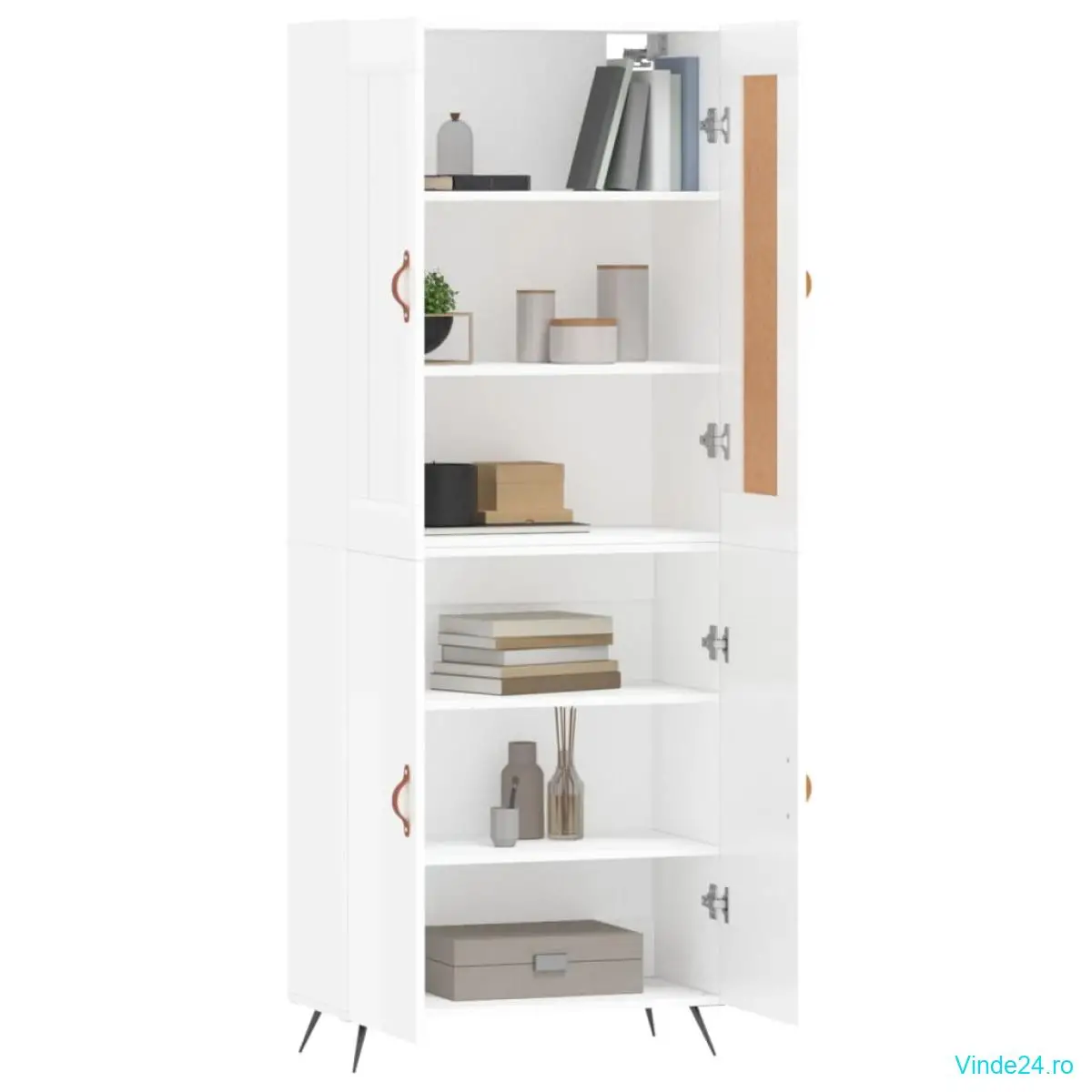 vidaXL Dulap înalt, alb extralucios, 69,5x34x180 cm, lemn compozit