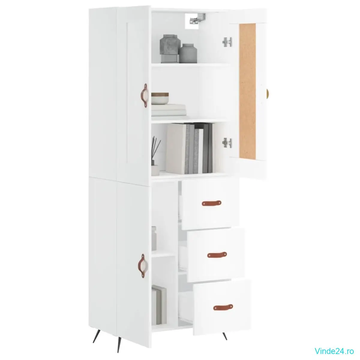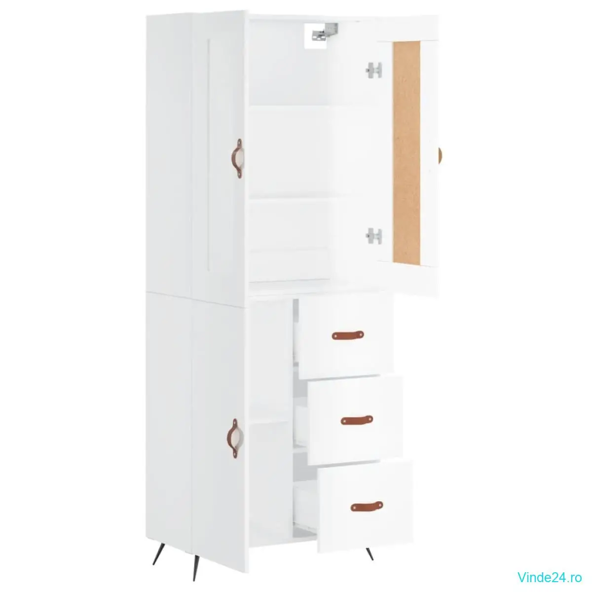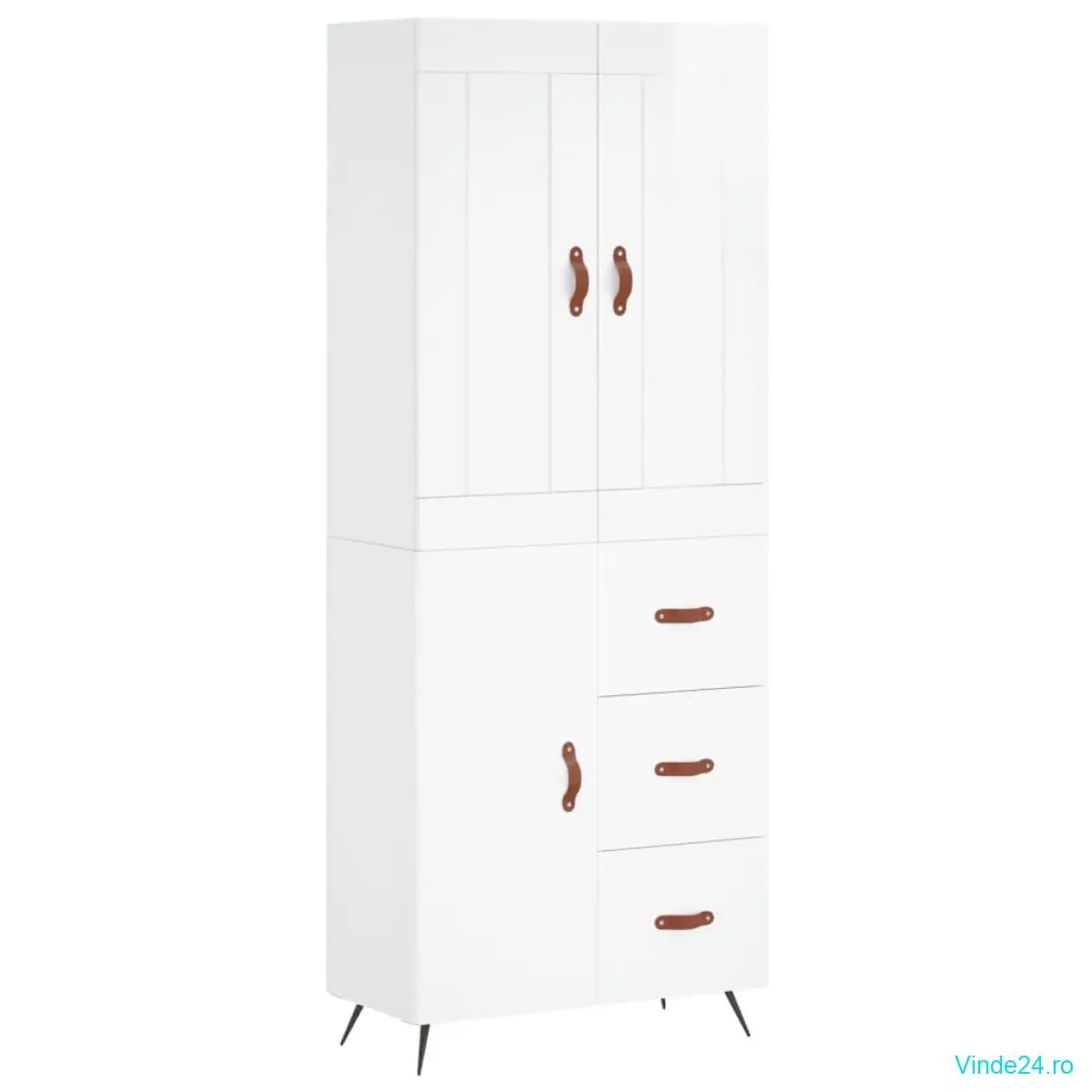 vidaXL Dulap înalt, alb extralucios, 69,5x34x180 cm, lemn compozit