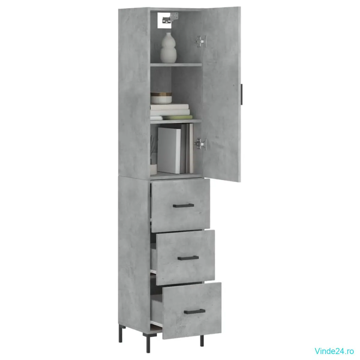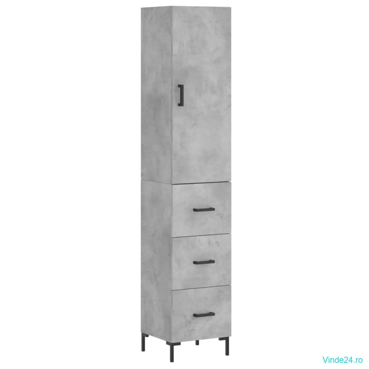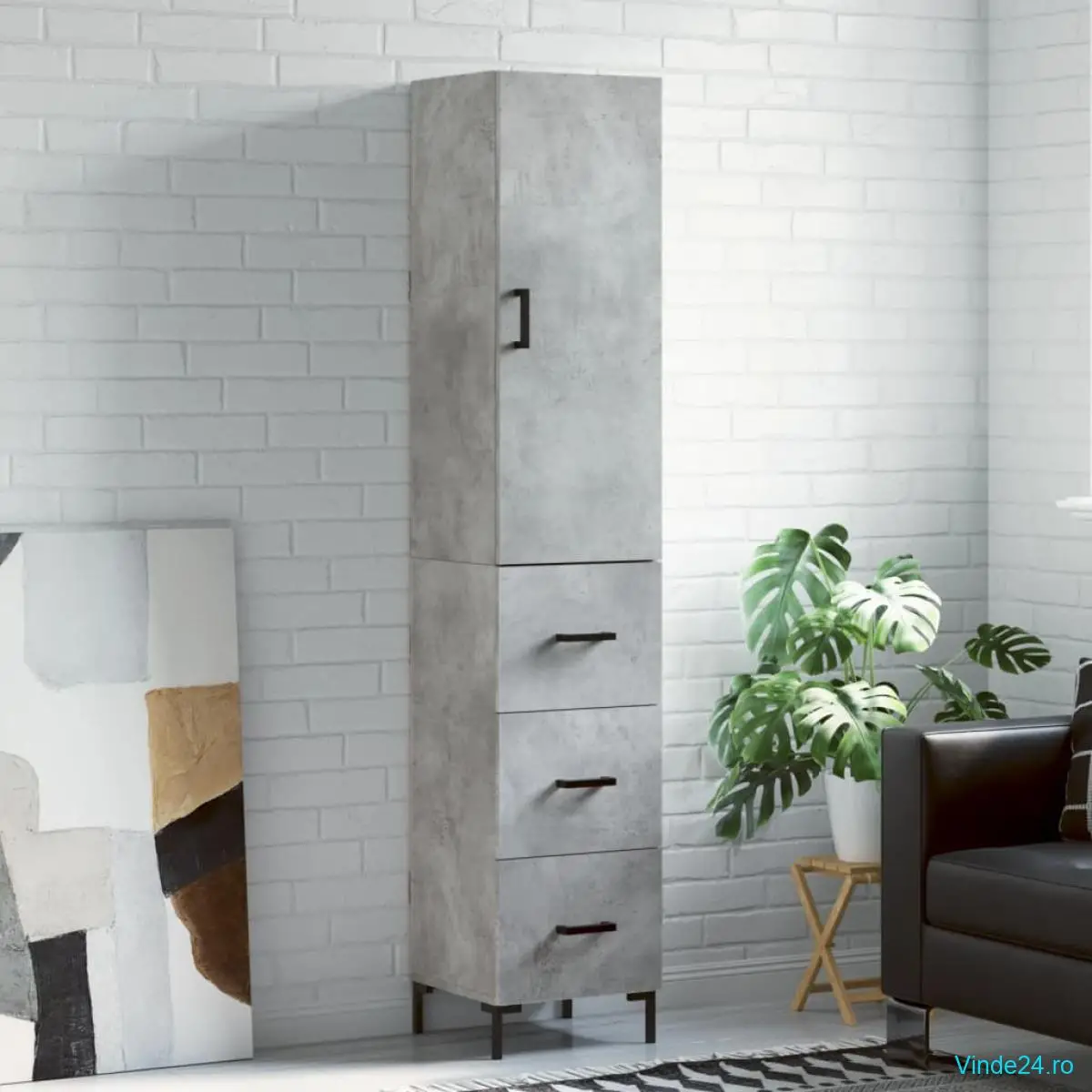 vidaXL Dulap înalt, gri beton, 34,5x34x180 cm, lemn prelucrat