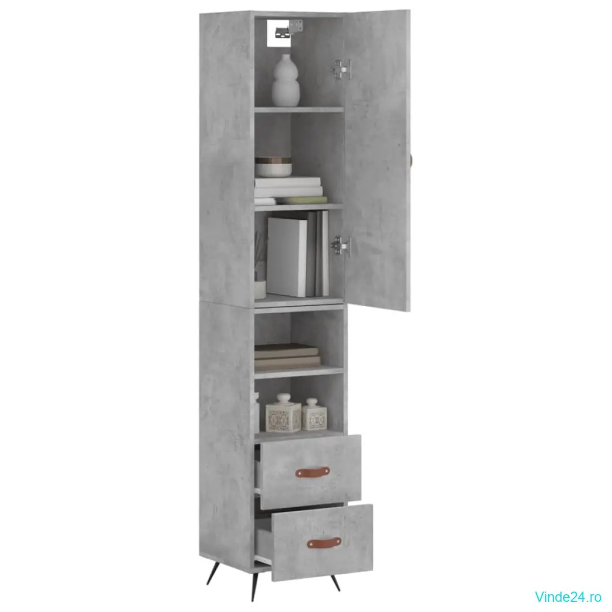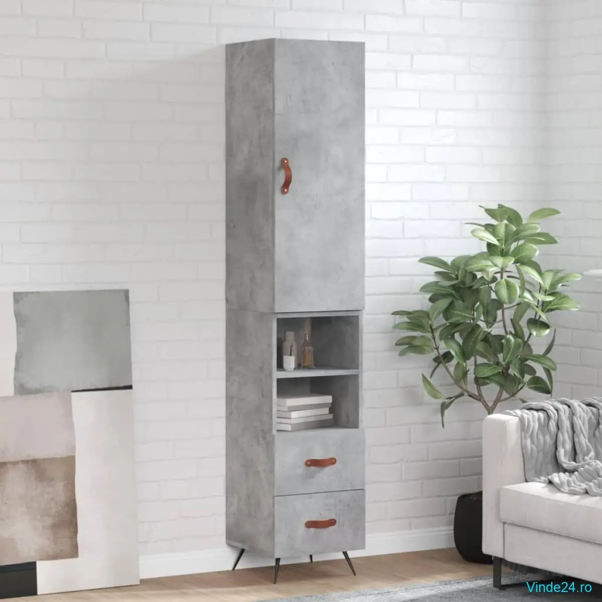 vidaXL Dulap înalt, gri beton, 34,5x34x180 cm, lemn prelucrat
