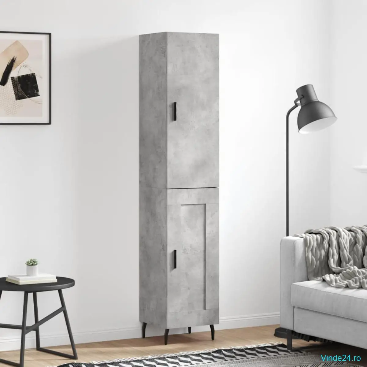 vidaXL Dulap înalt, gri beton, 34,5x34x180 cm, lemn prelucrat