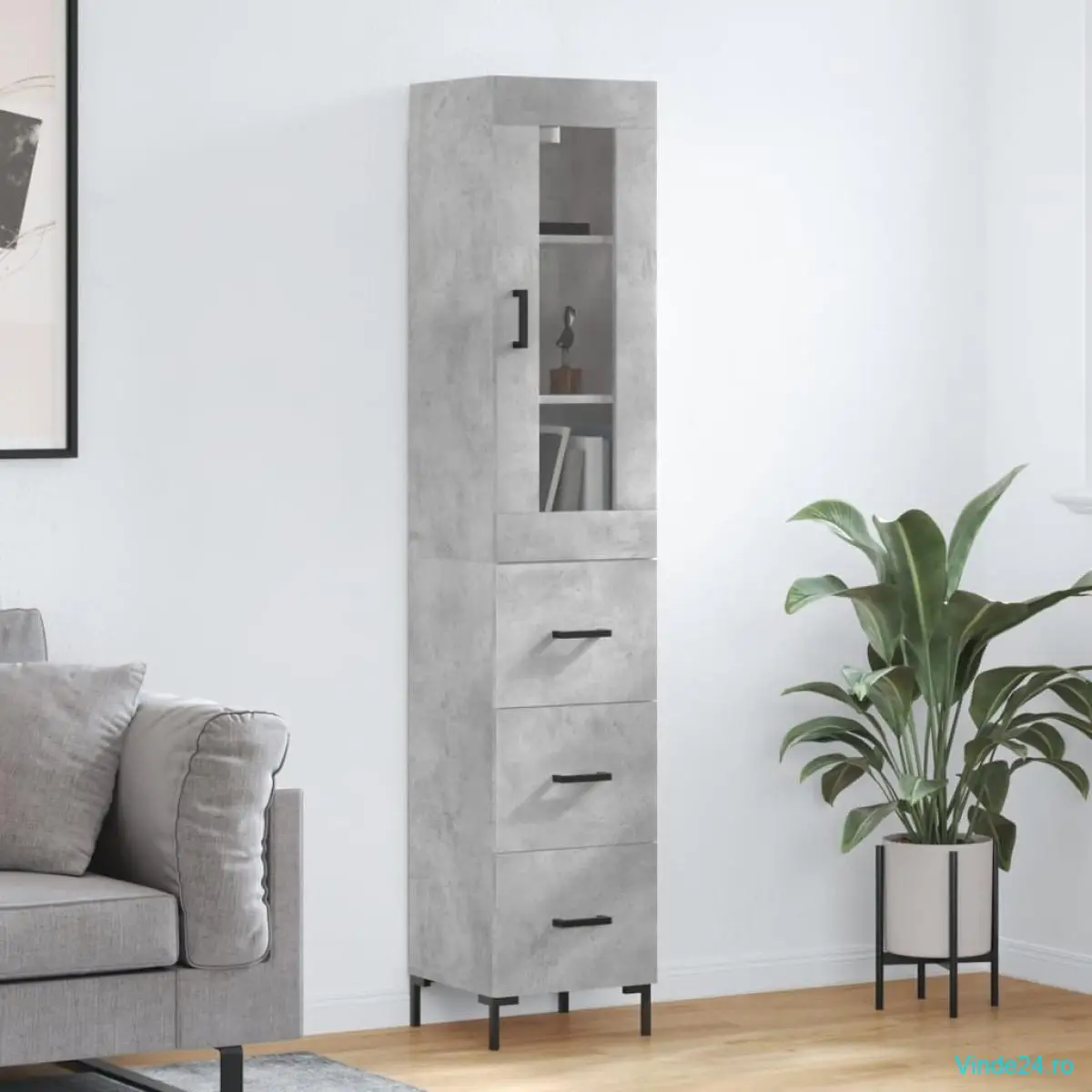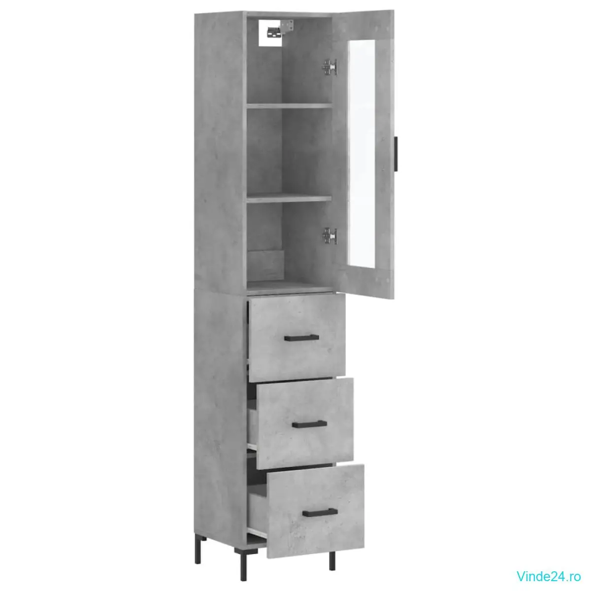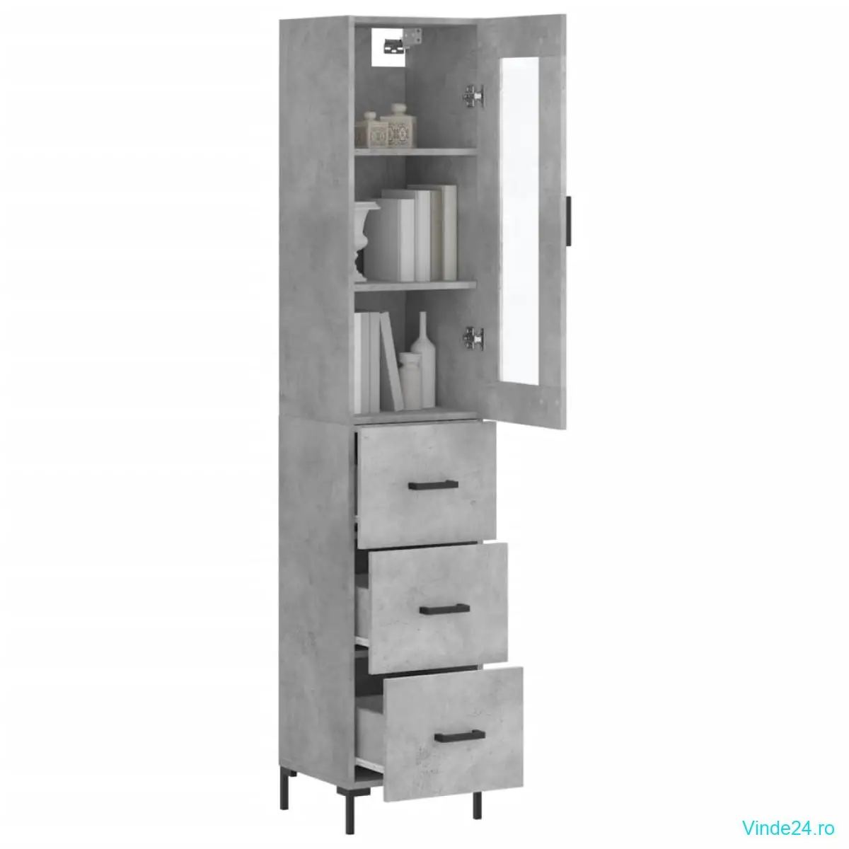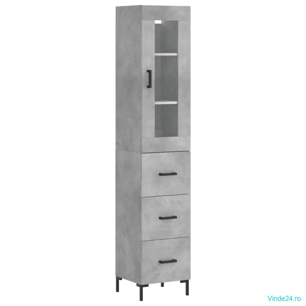 vidaXL Dulap înalt, gri beton, 34,5x34x180 cm, lemn prelucrat
