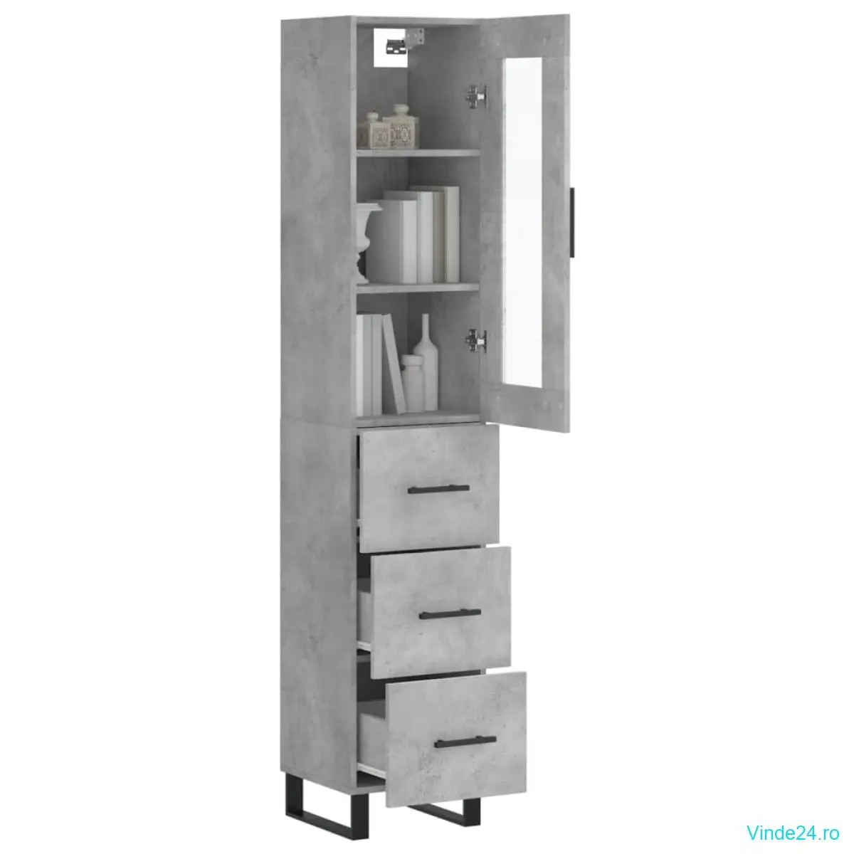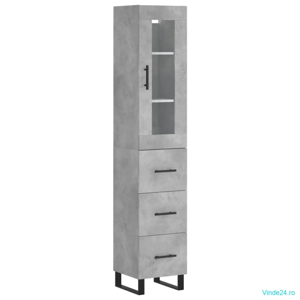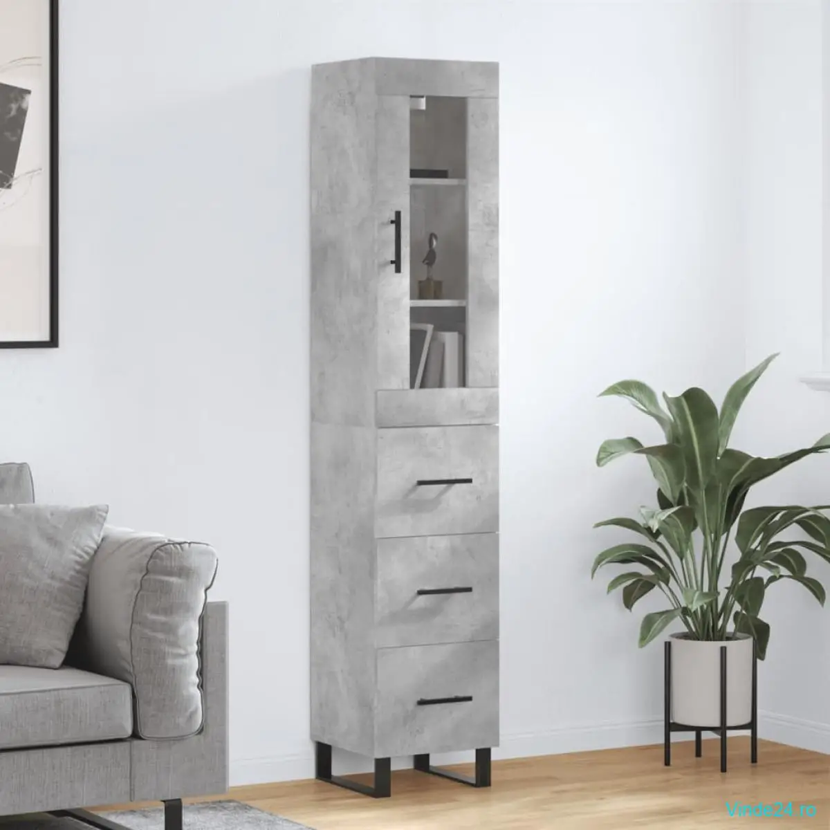 vidaXL Dulap înalt, gri beton, 34,5x34x180 cm, lemn prelucrat