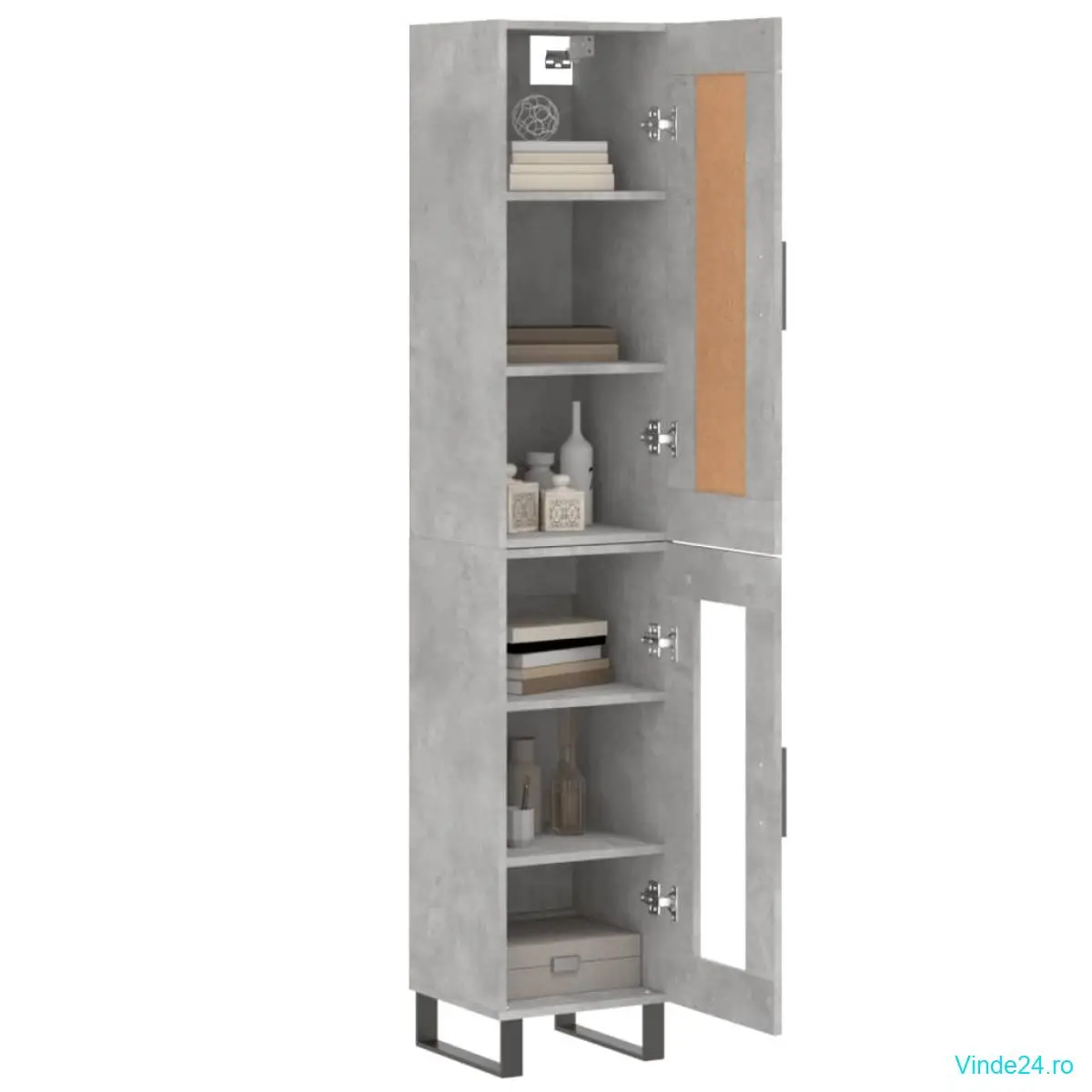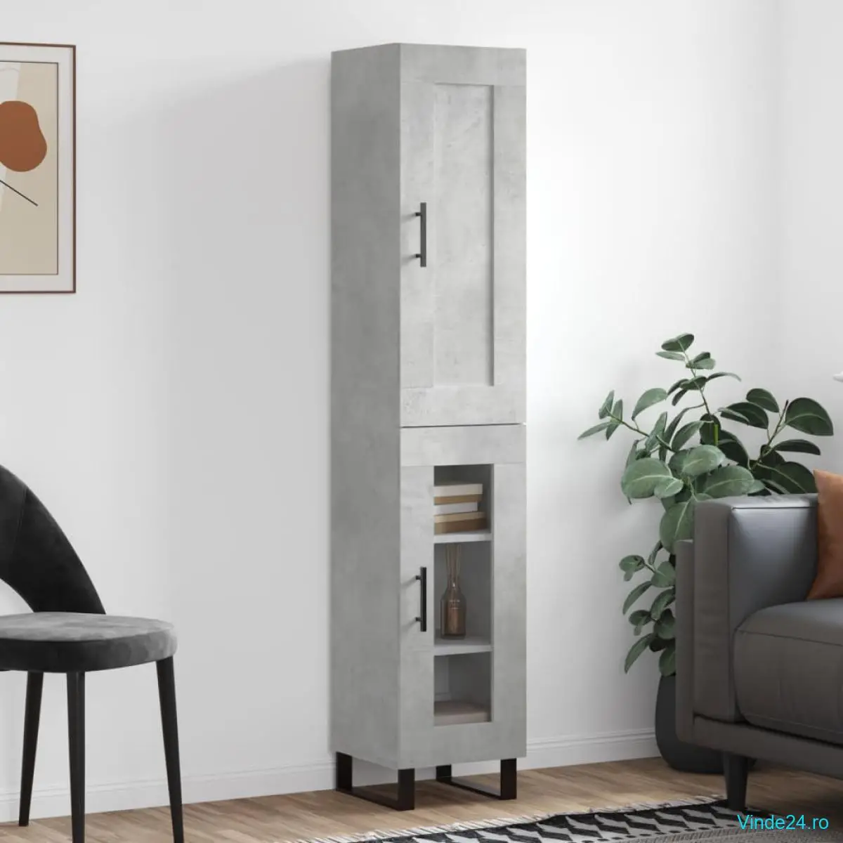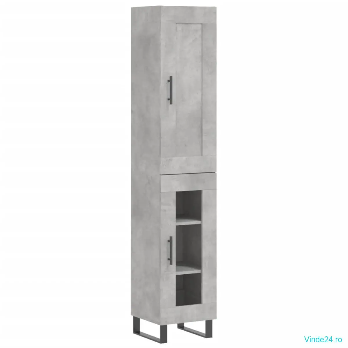 vidaXL Dulap înalt, gri beton, 34,5x34x180 cm, lemn prelucrat