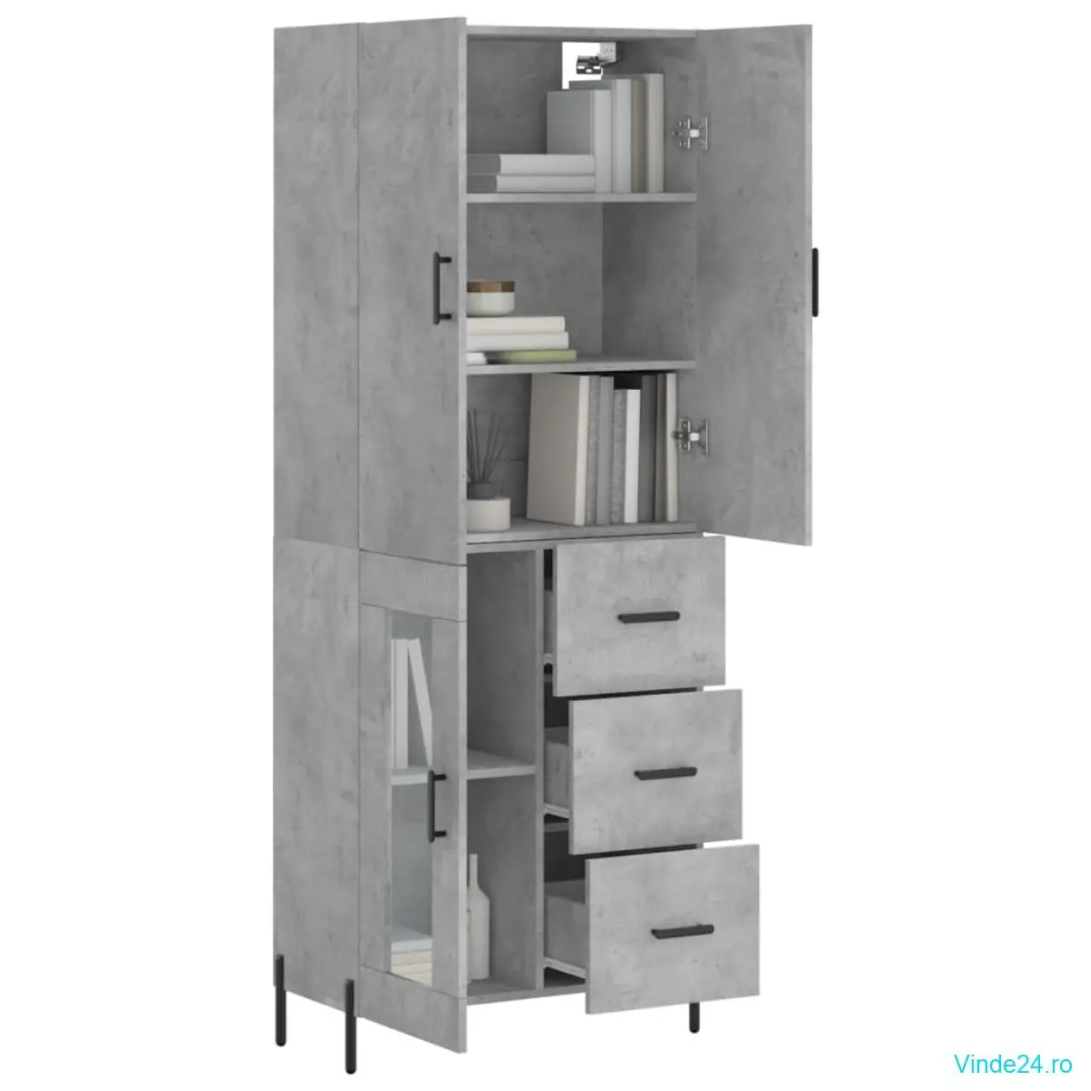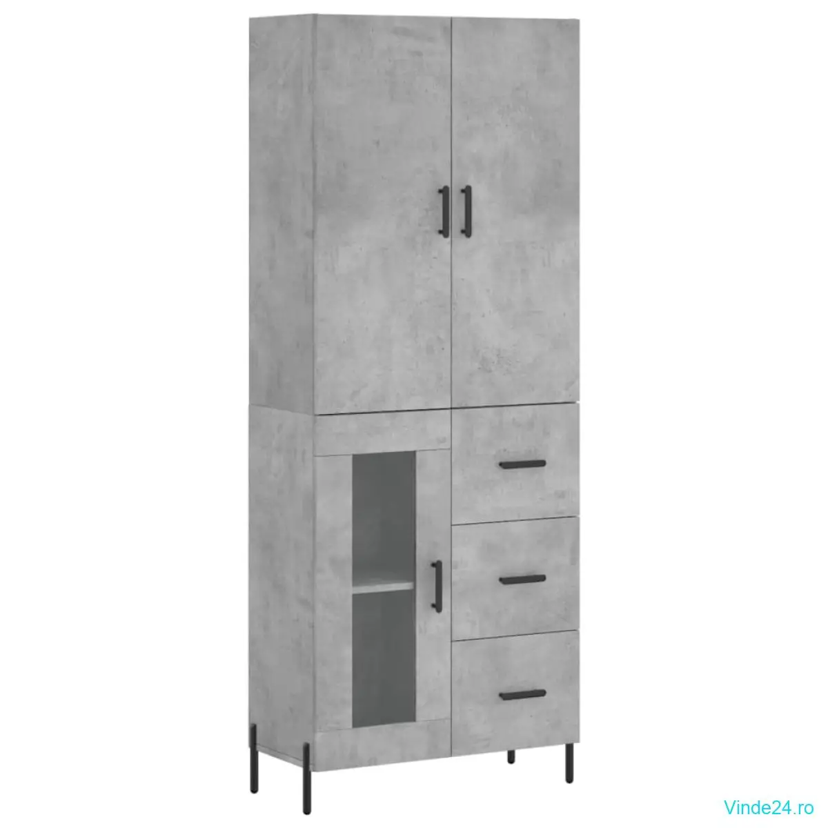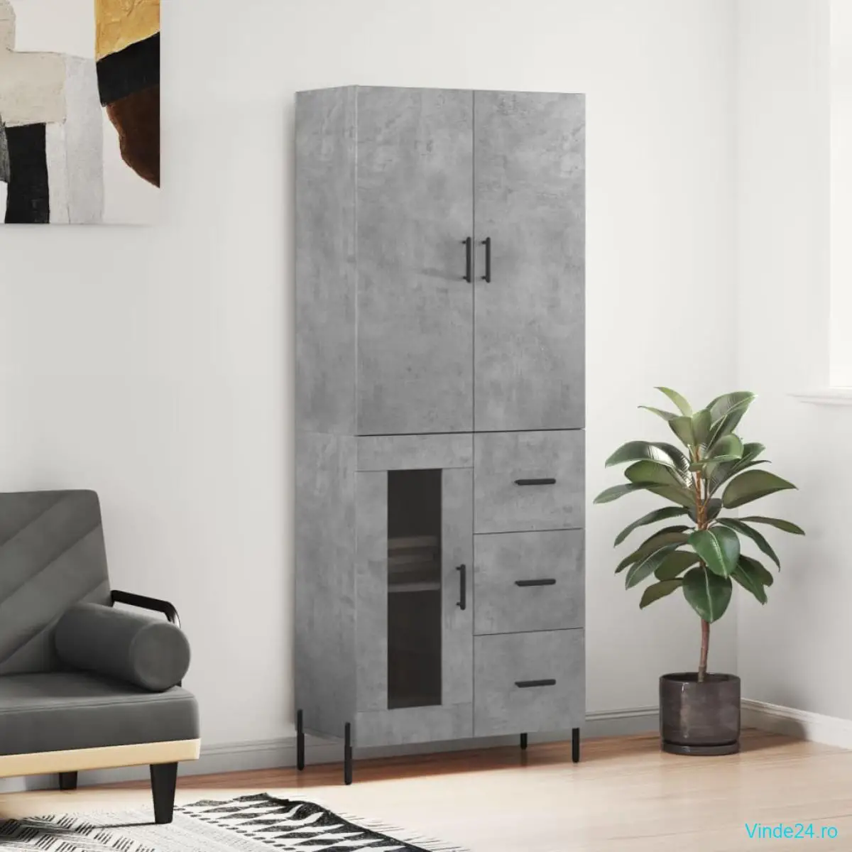 vidaXL Dulap înalt, gri beton, 69,5x34x180, lemn compozit
