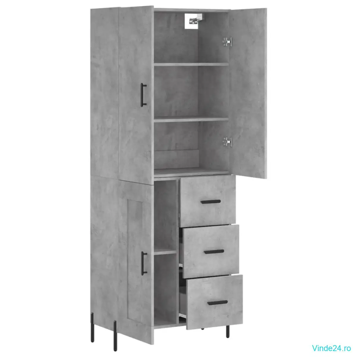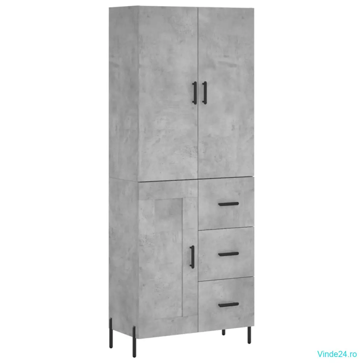 vidaXL Dulap înalt, gri beton, 69,5x34x180, lemn compozit
