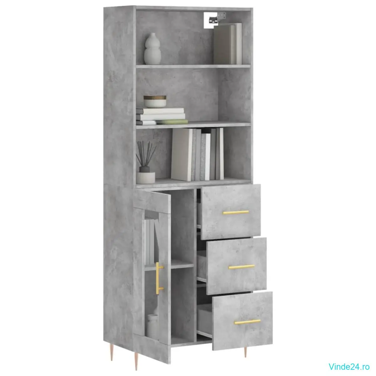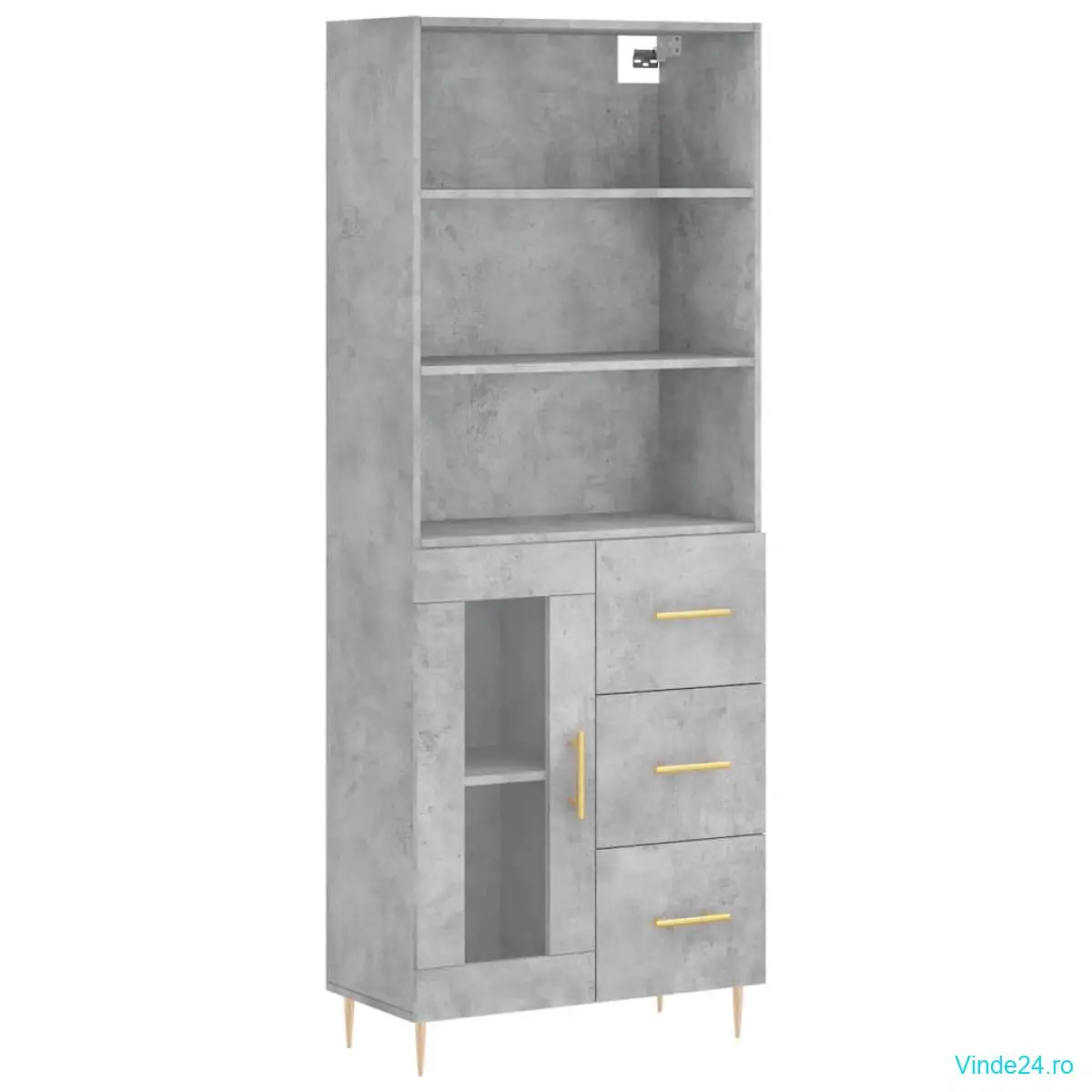 vidaXL Dulap înalt, gri beton, 69,5x34x180, lemn compozit