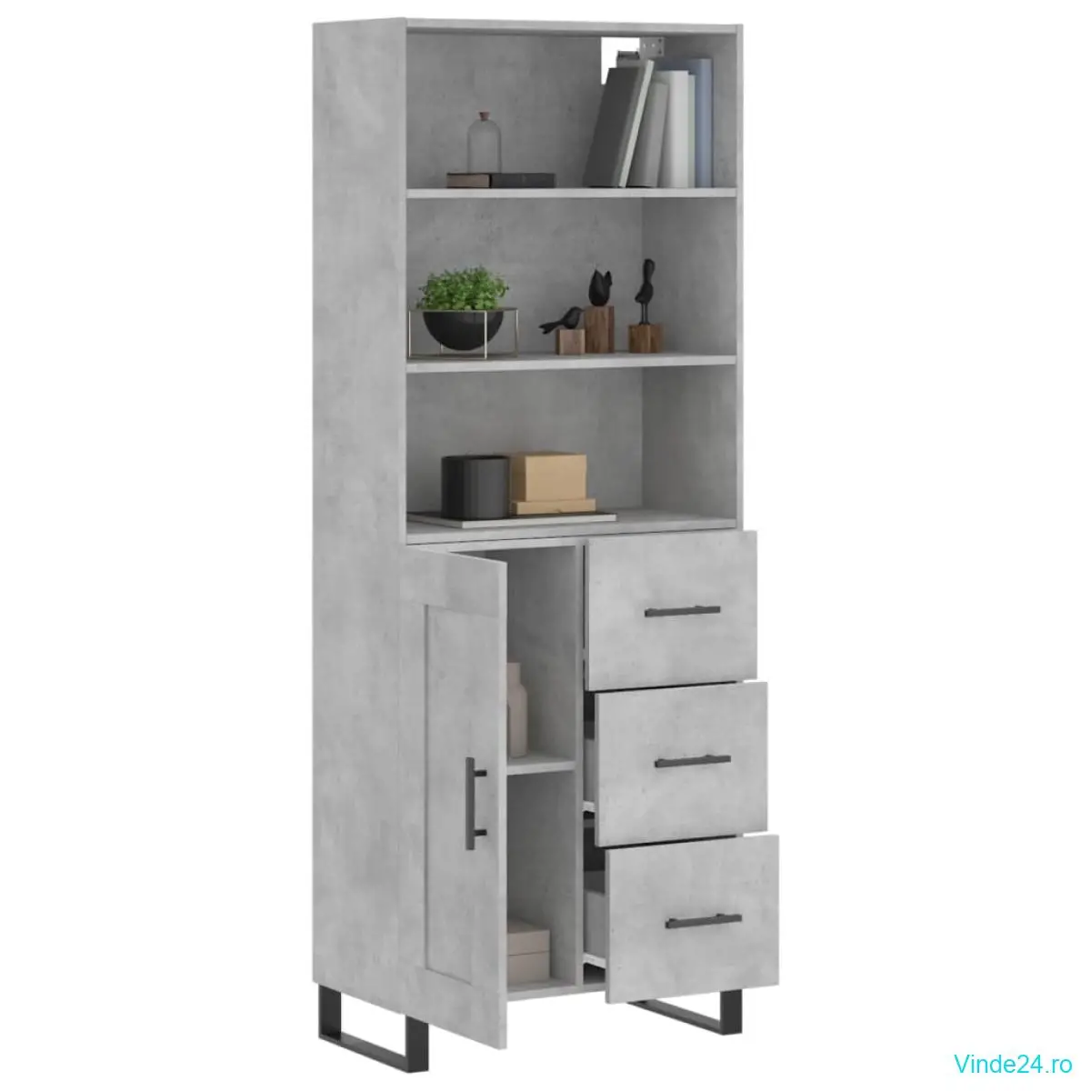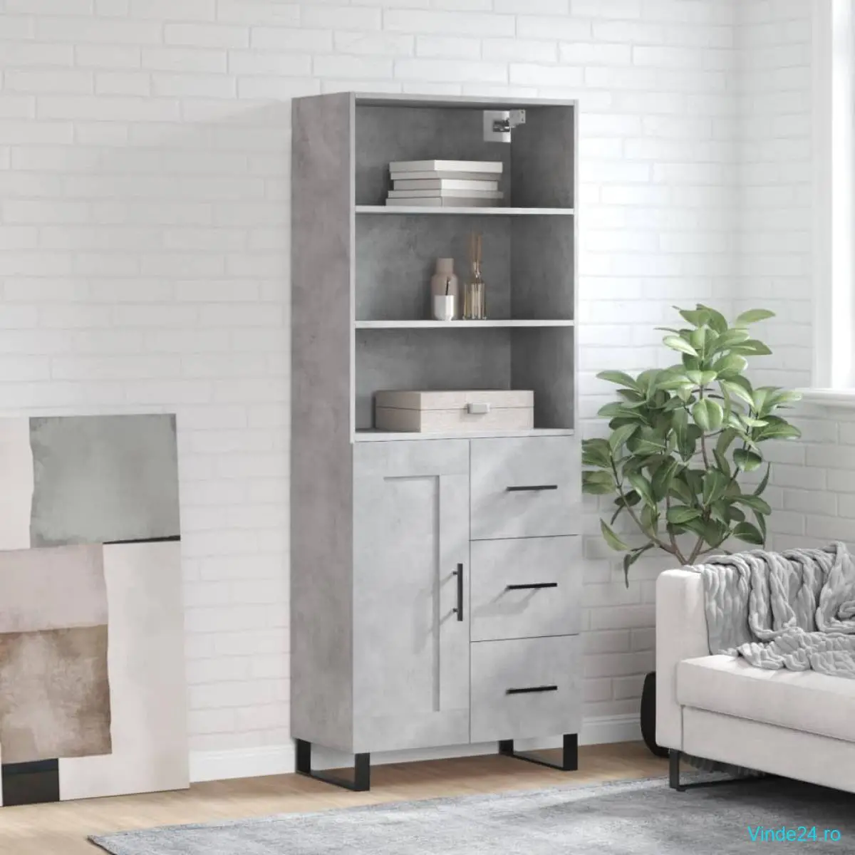 vidaXL Dulap înalt, gri beton, 69,5x34x180, lemn compozit