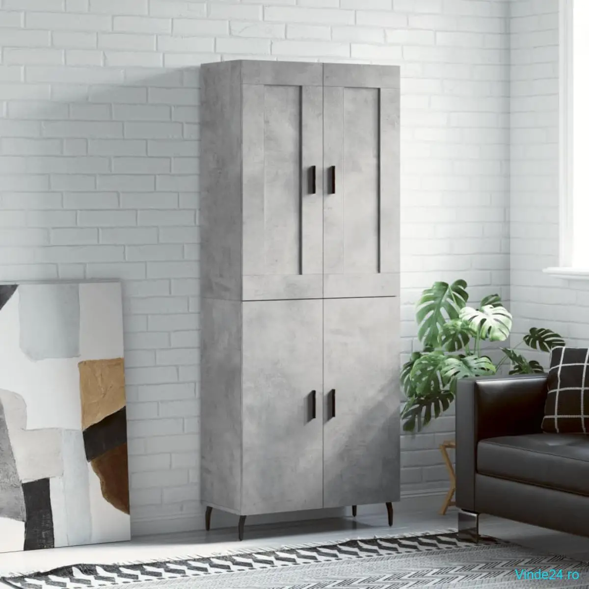 vidaXL Dulap înalt, gri beton, 69,5x34x180, lemn compozit