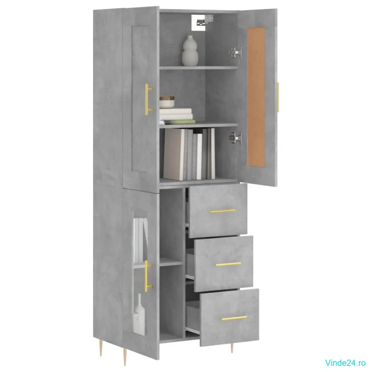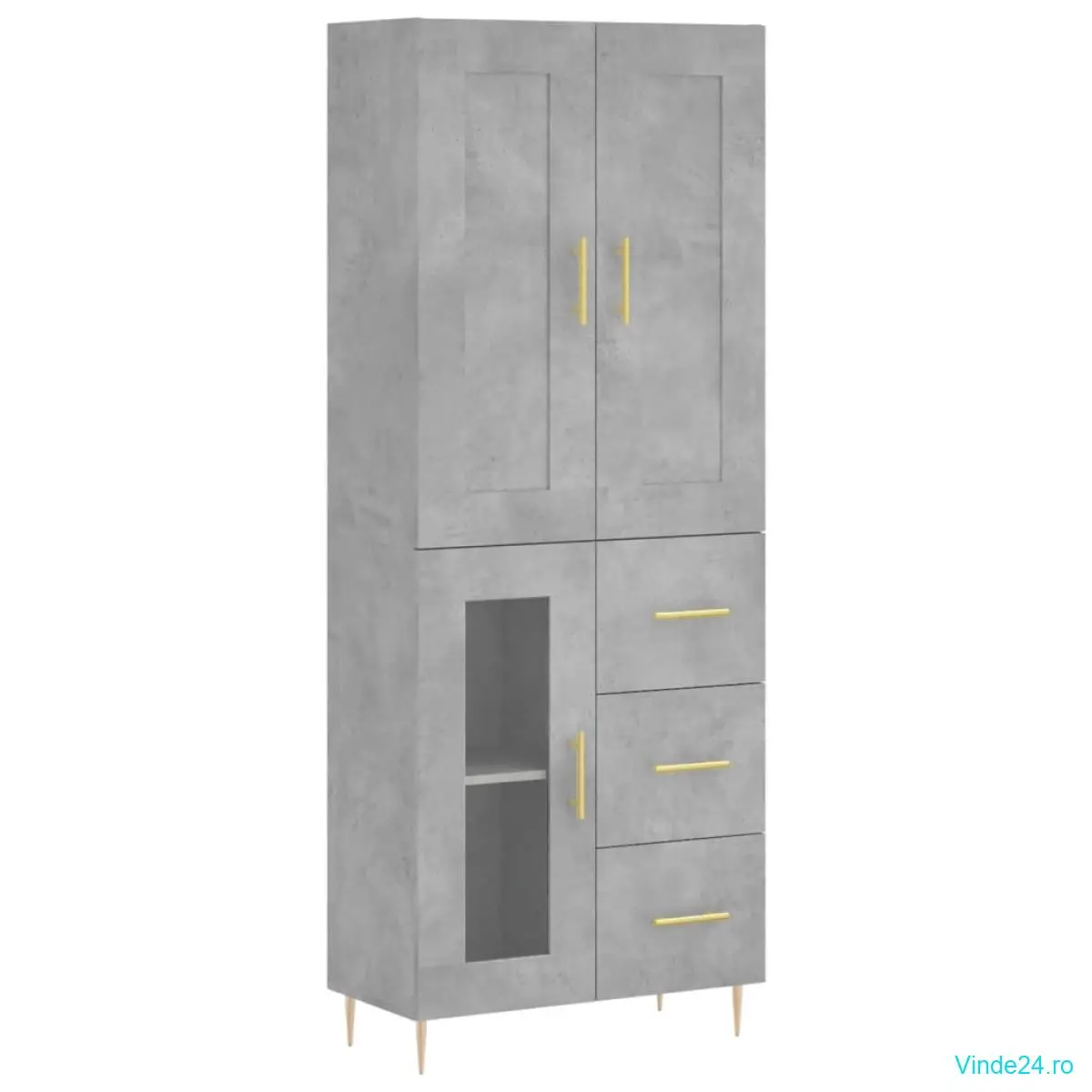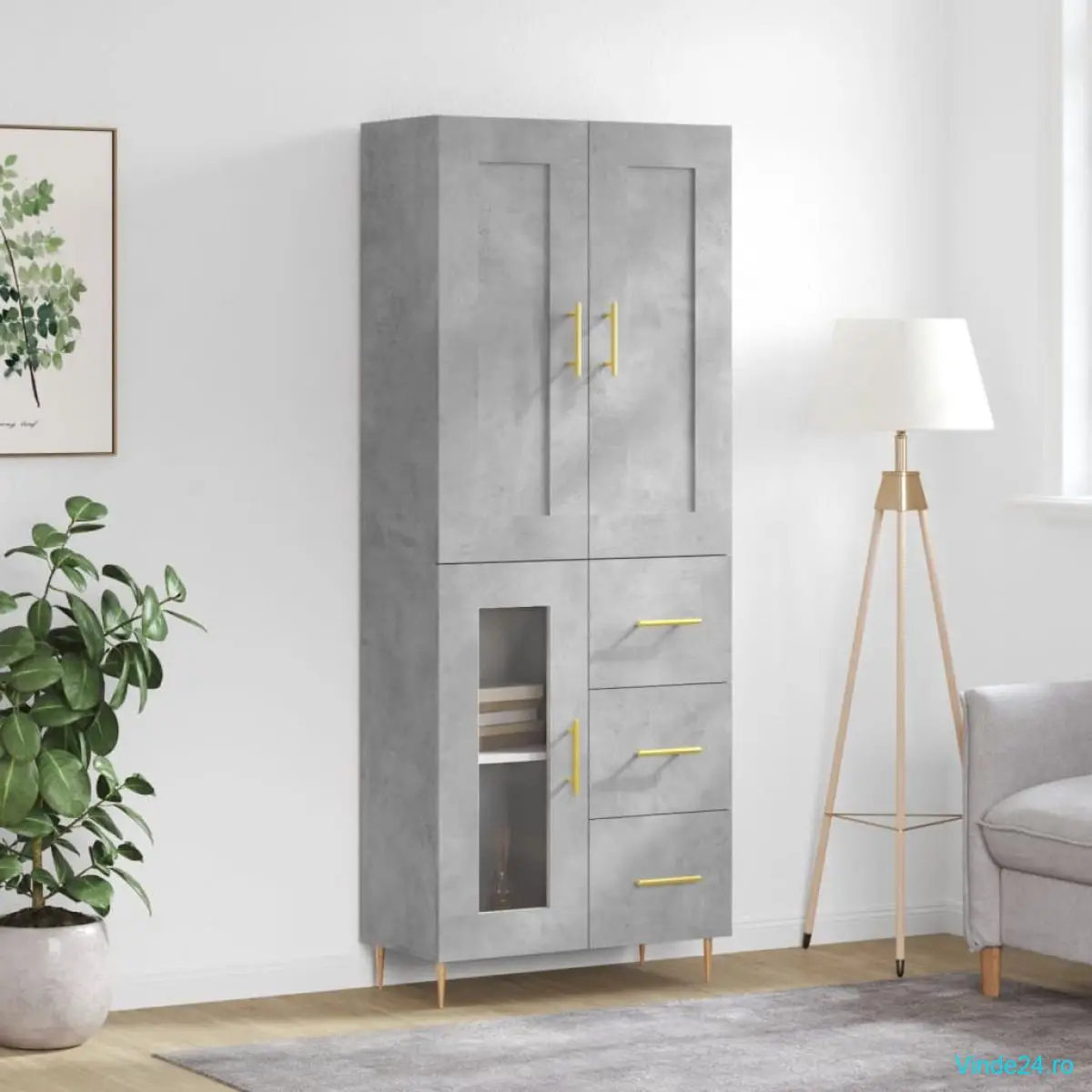 vidaXL Dulap înalt, gri beton, 69,5x34x180, lemn compozit