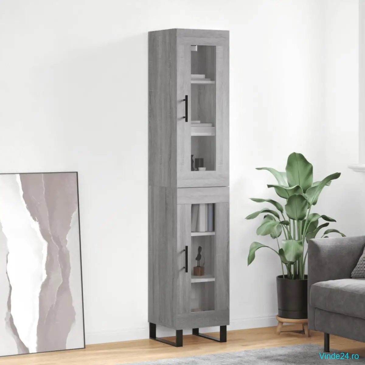 vidaXL Dulap înalt, gri sonoma, 69,5x34x180 cm, lemn compozit