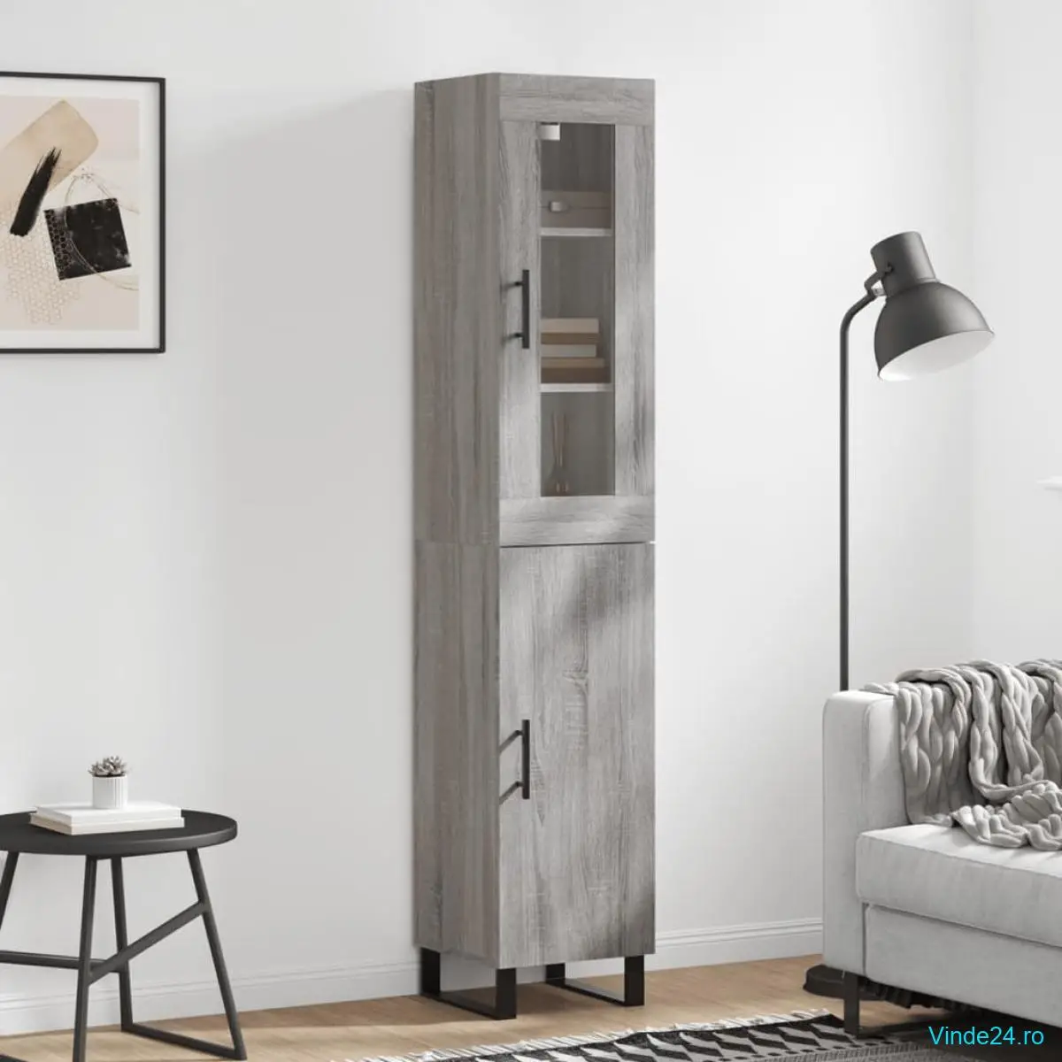 vidaXL Dulap înalt, gri sonoma, 34,5x34x180 cm, lemn prelucrat
