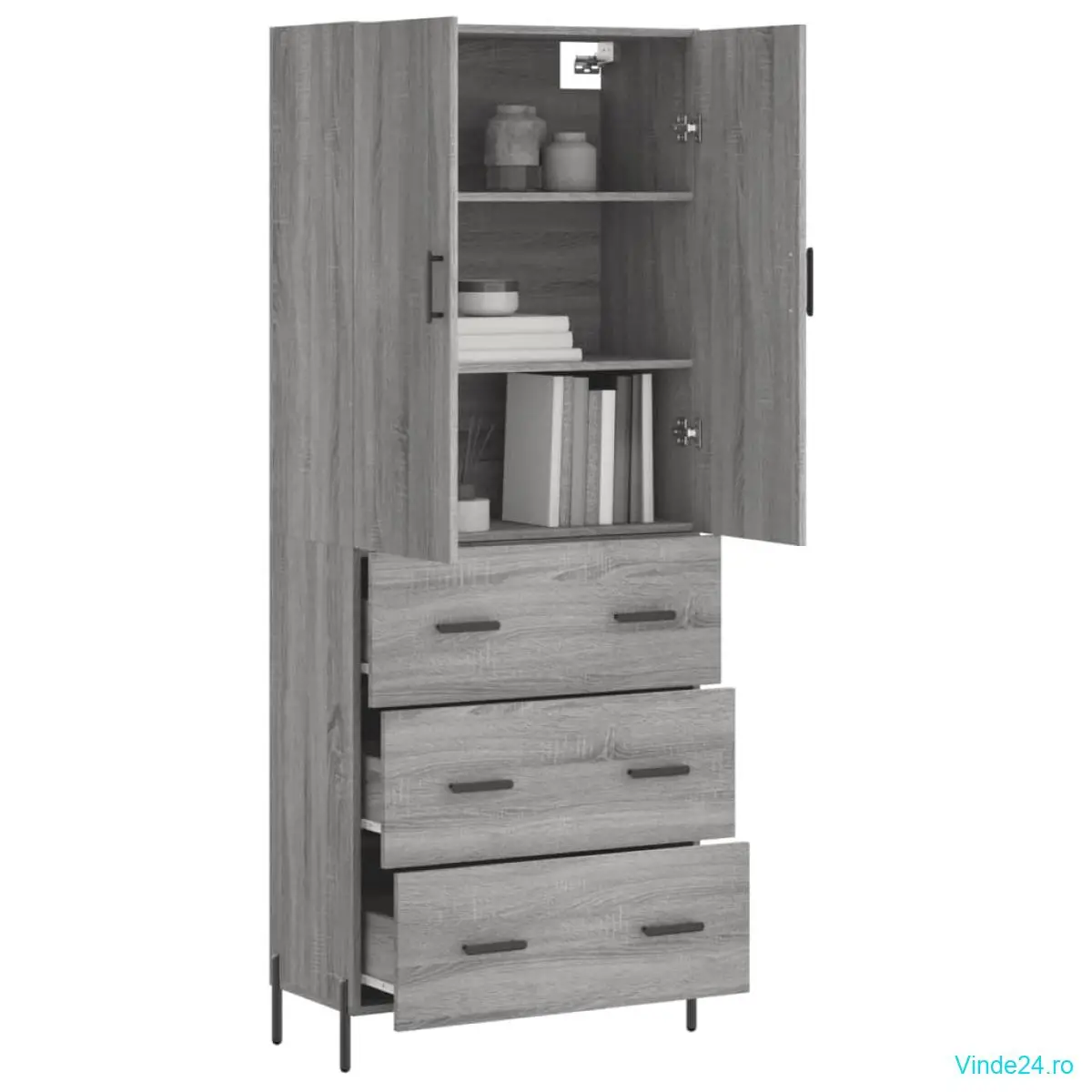 vidaXL Dulap înalt, gri sonoma, 69,5x34x180 cm, lemn compozit