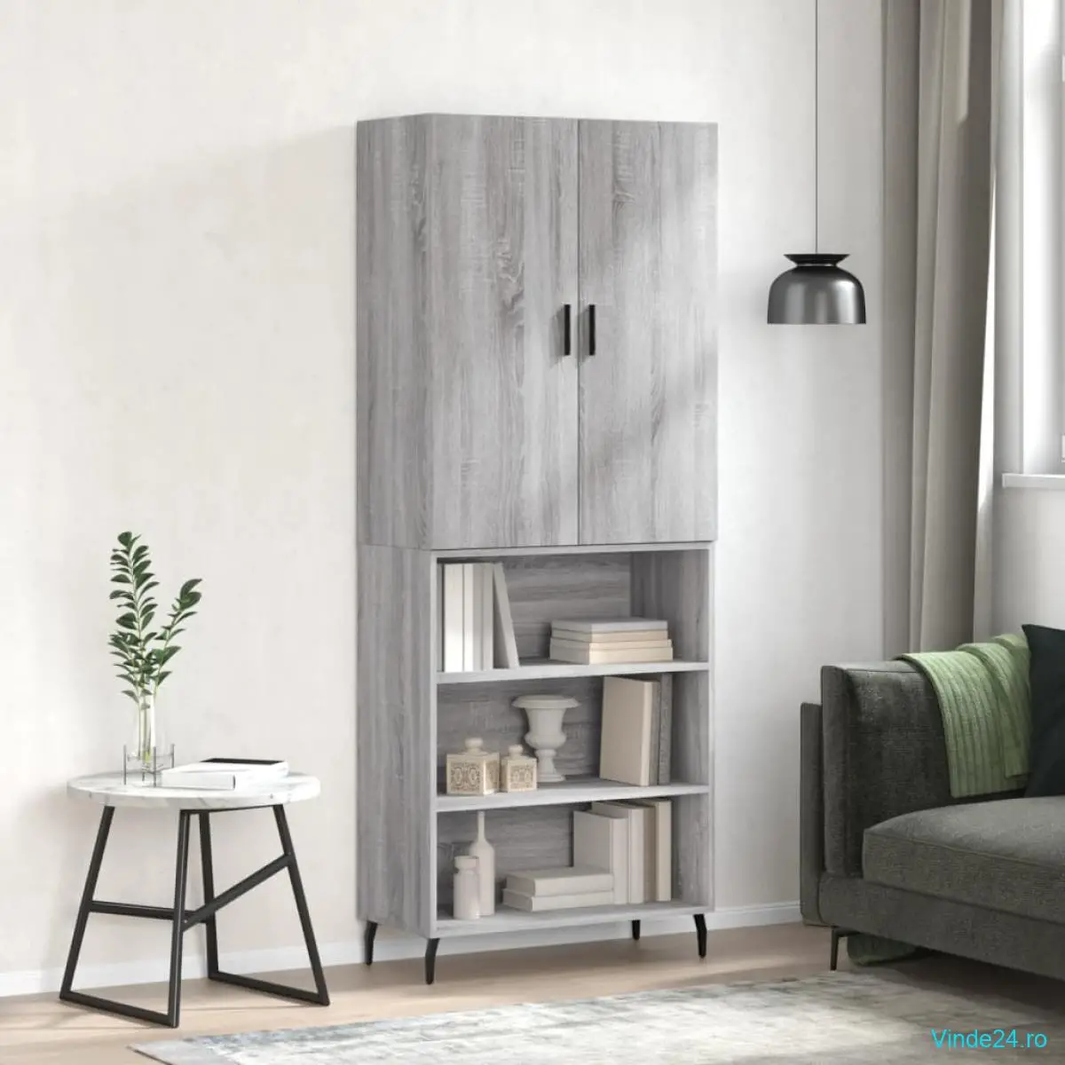 vidaXL Dulap înalt, gri sonoma, 69,5x34x180 cm, lemn compozit