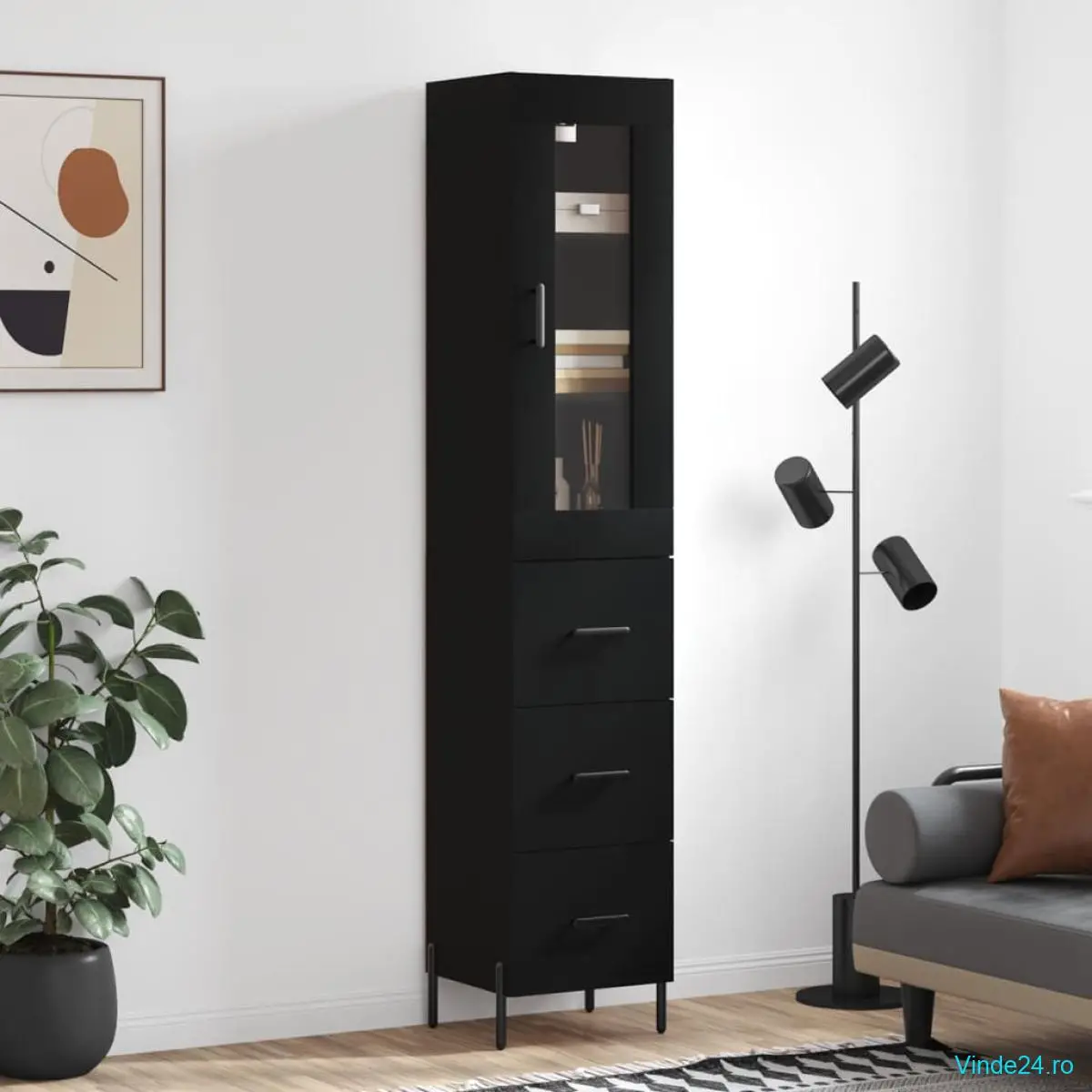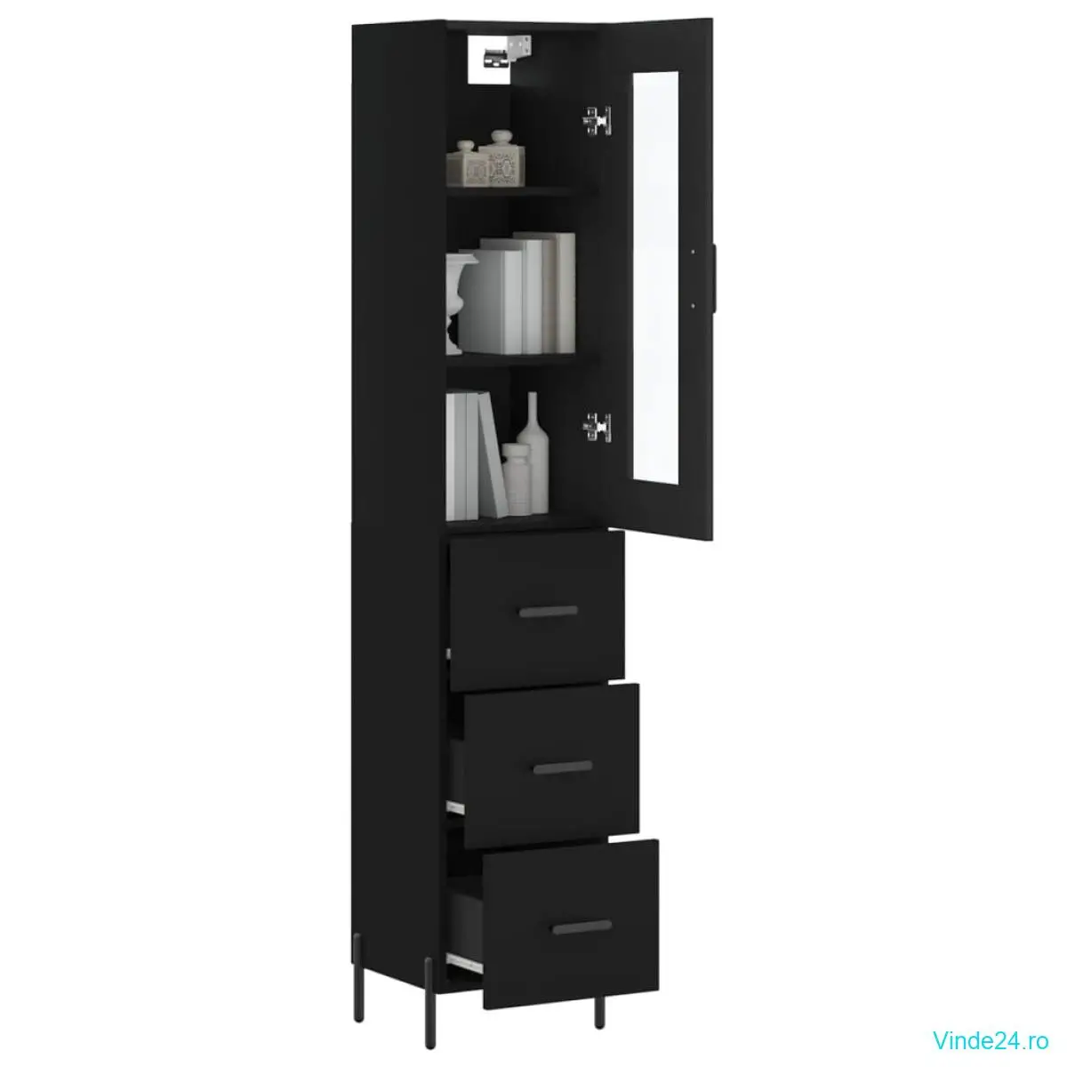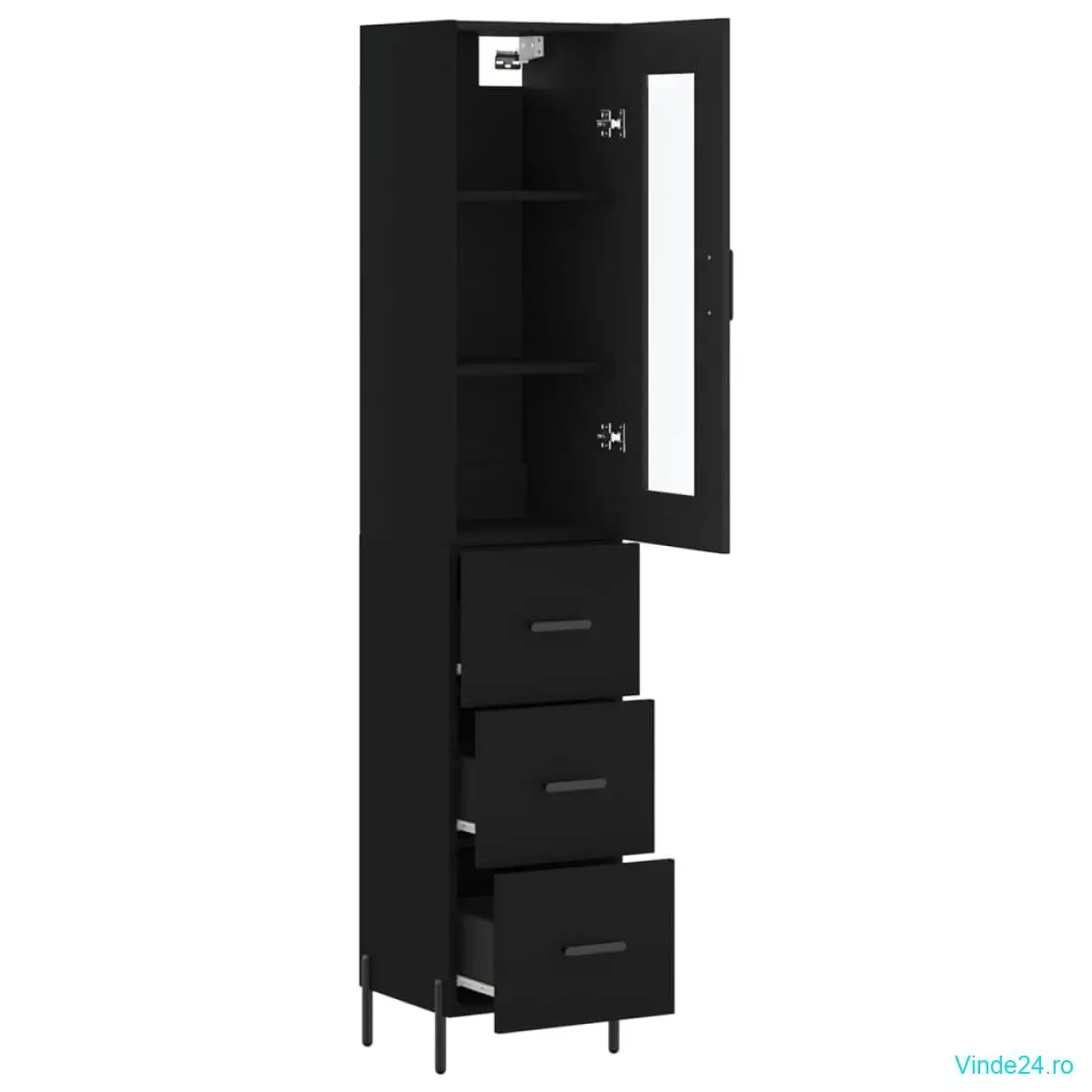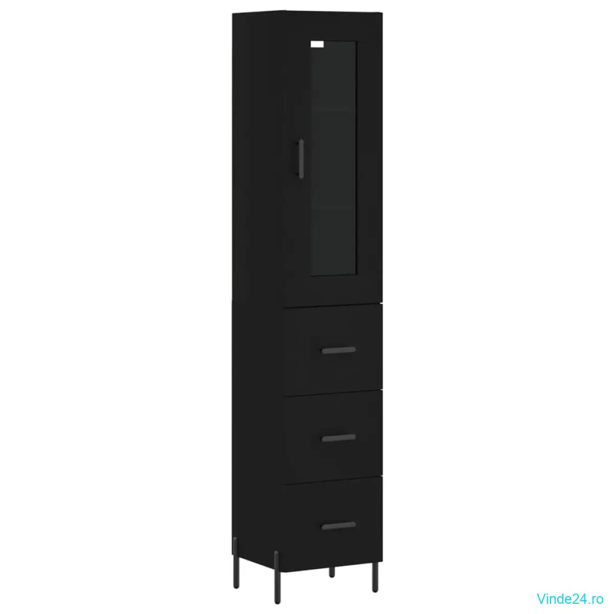 vidaXL Dulap înalt, negru, 34,5x34x180 cm, lemn prelucrat