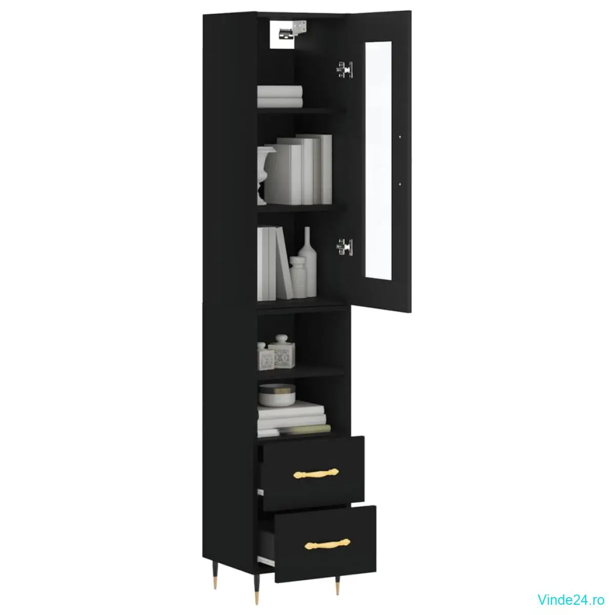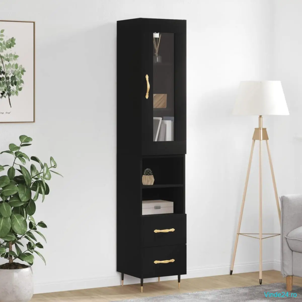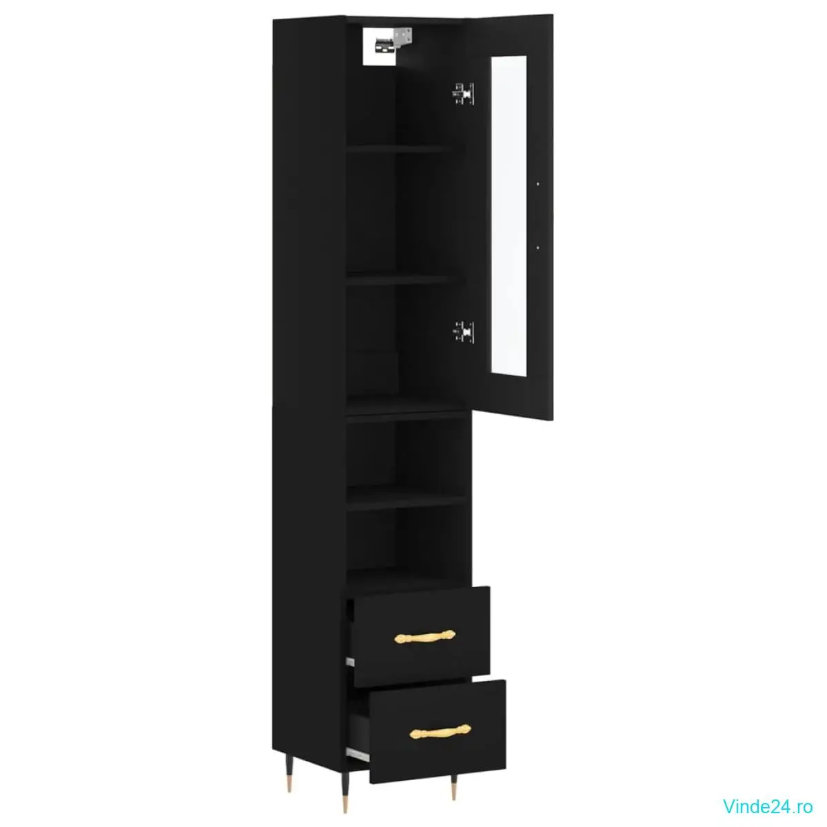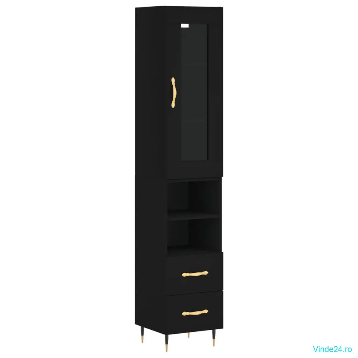vidaXL Dulap înalt, negru, 34,5x34x180 cm, lemn prelucrat