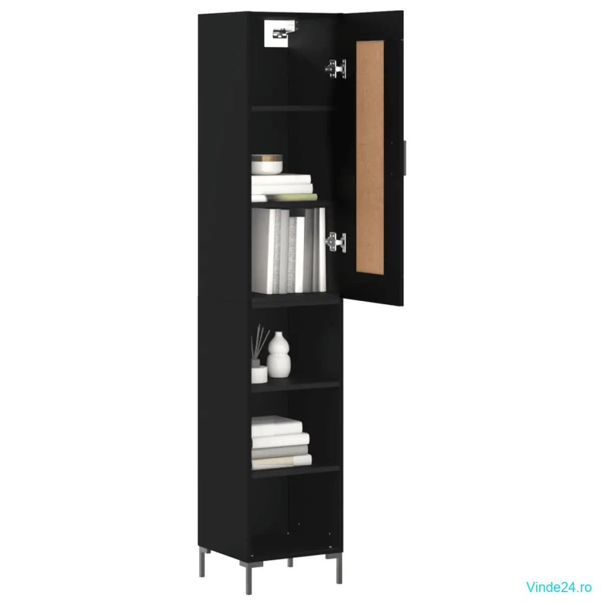 vidaXL Dulap înalt, negru, 34,5x34x180 cm, lemn prelucrat