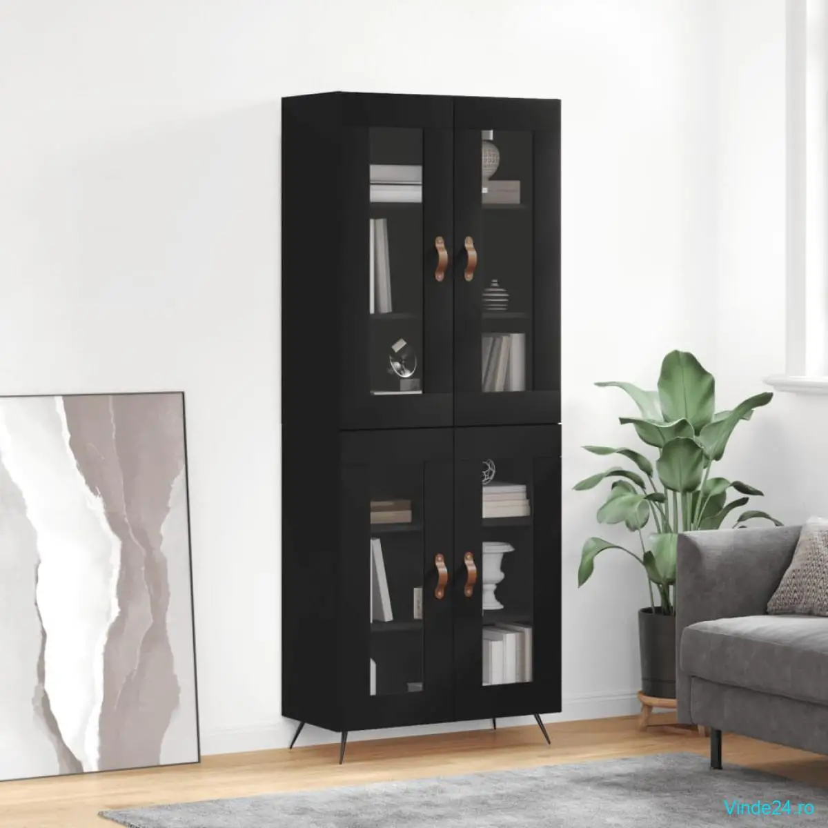 vidaXL Dulap înalt, negru, 69,5x34x180 cm, lemn compozit