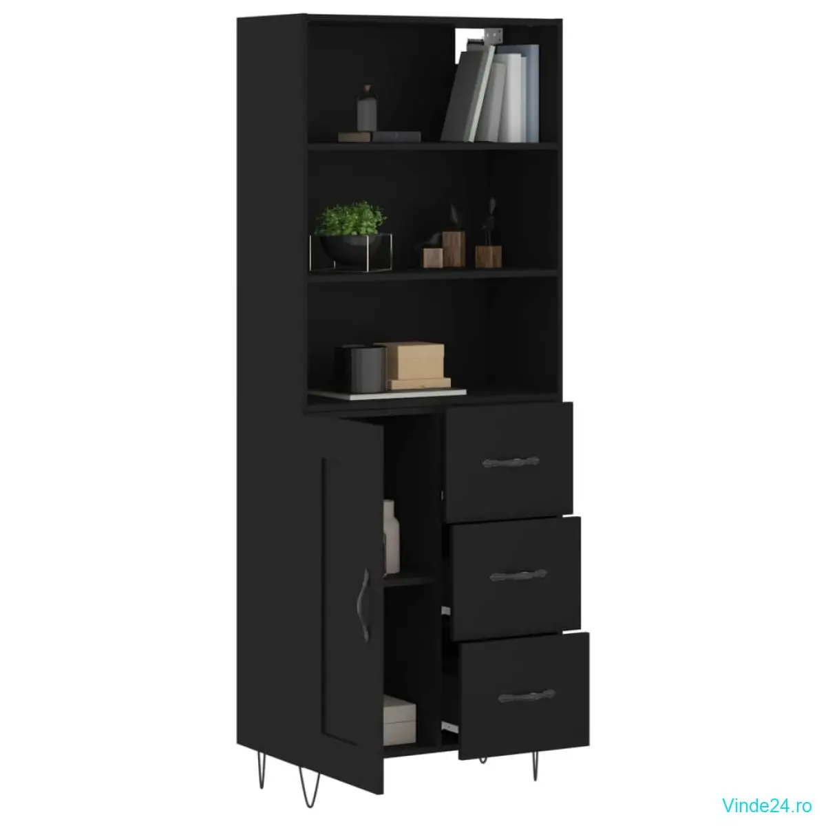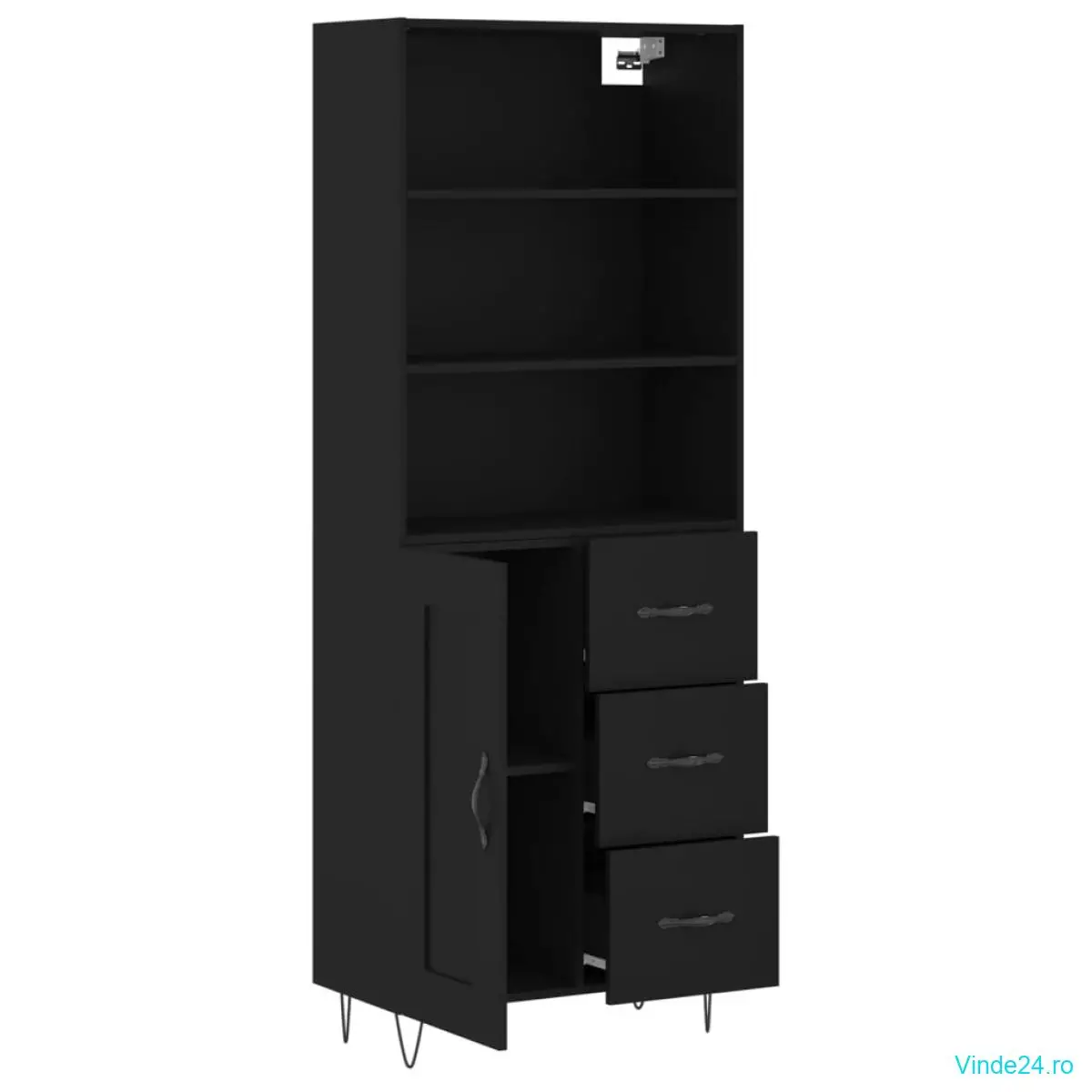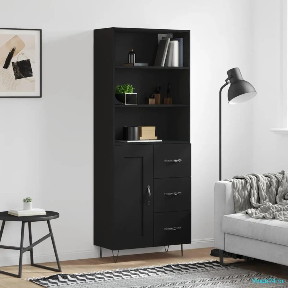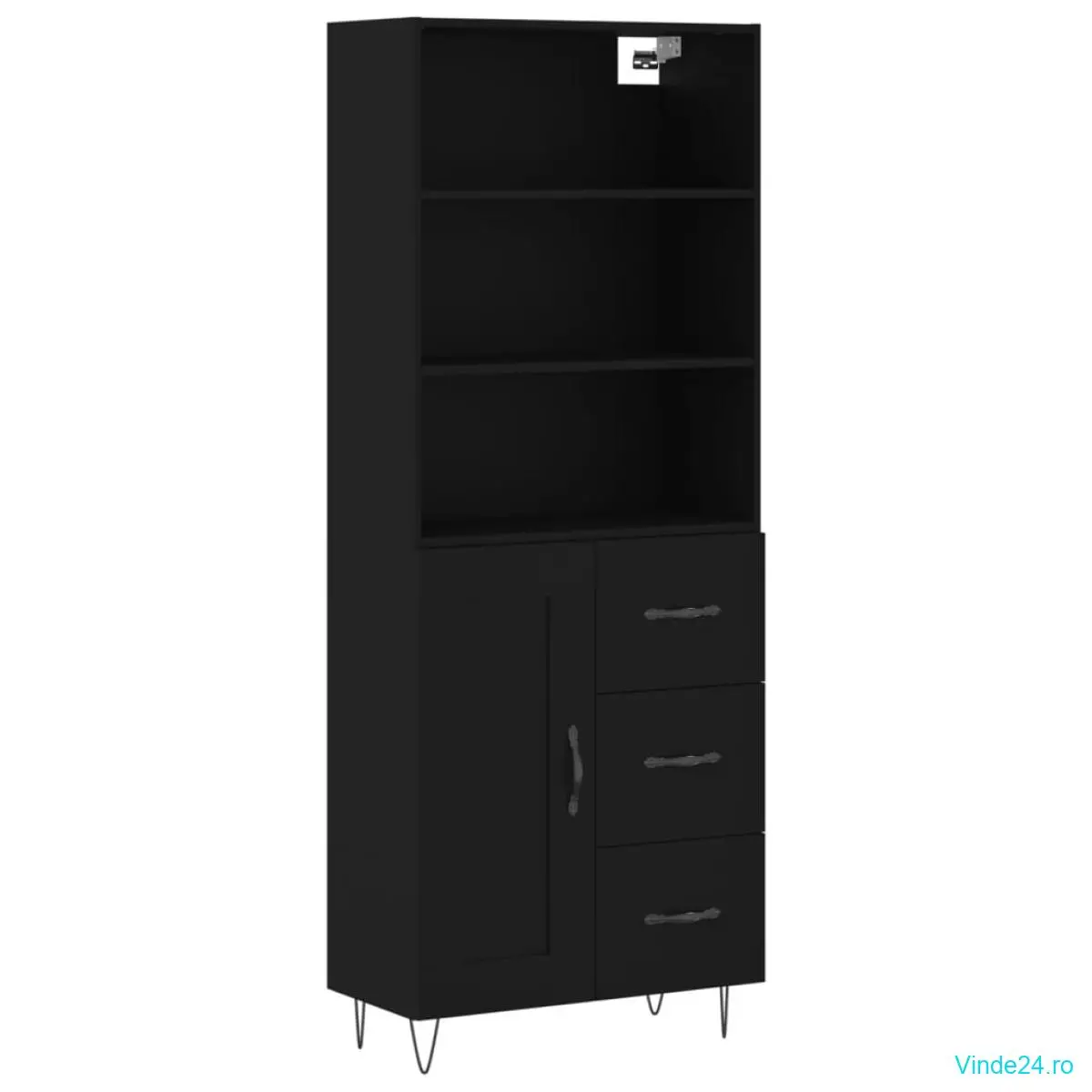 vidaXL Dulap înalt, negru, 69,5x34x180 cm, lemn compozit