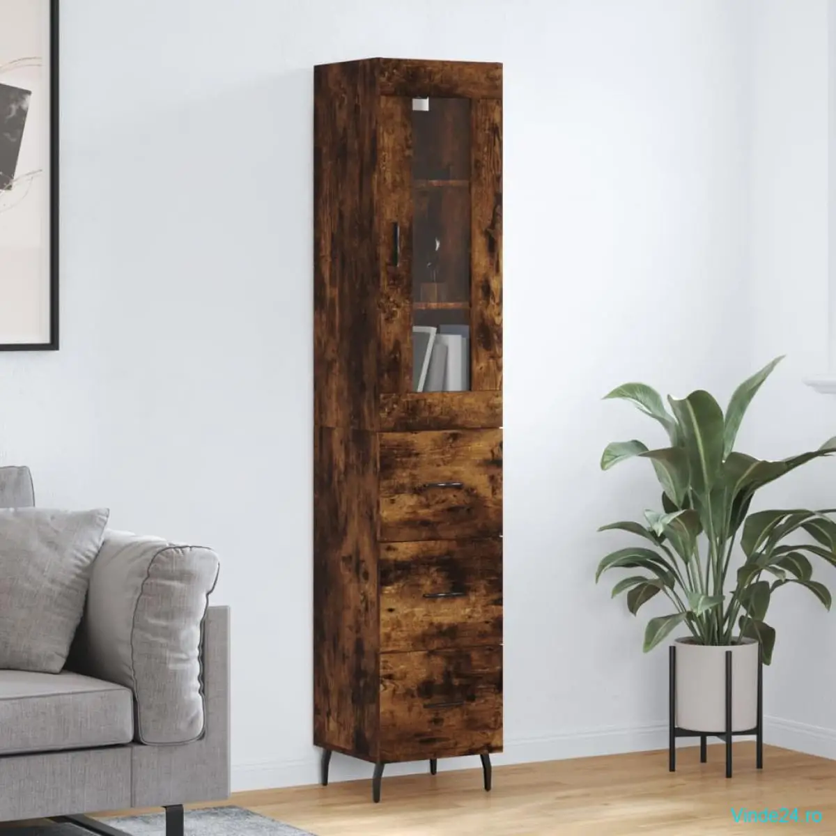 vidaXL Dulap înalt, stejar fumuriu, 34,5x34x180 cm, lemn prelucrat