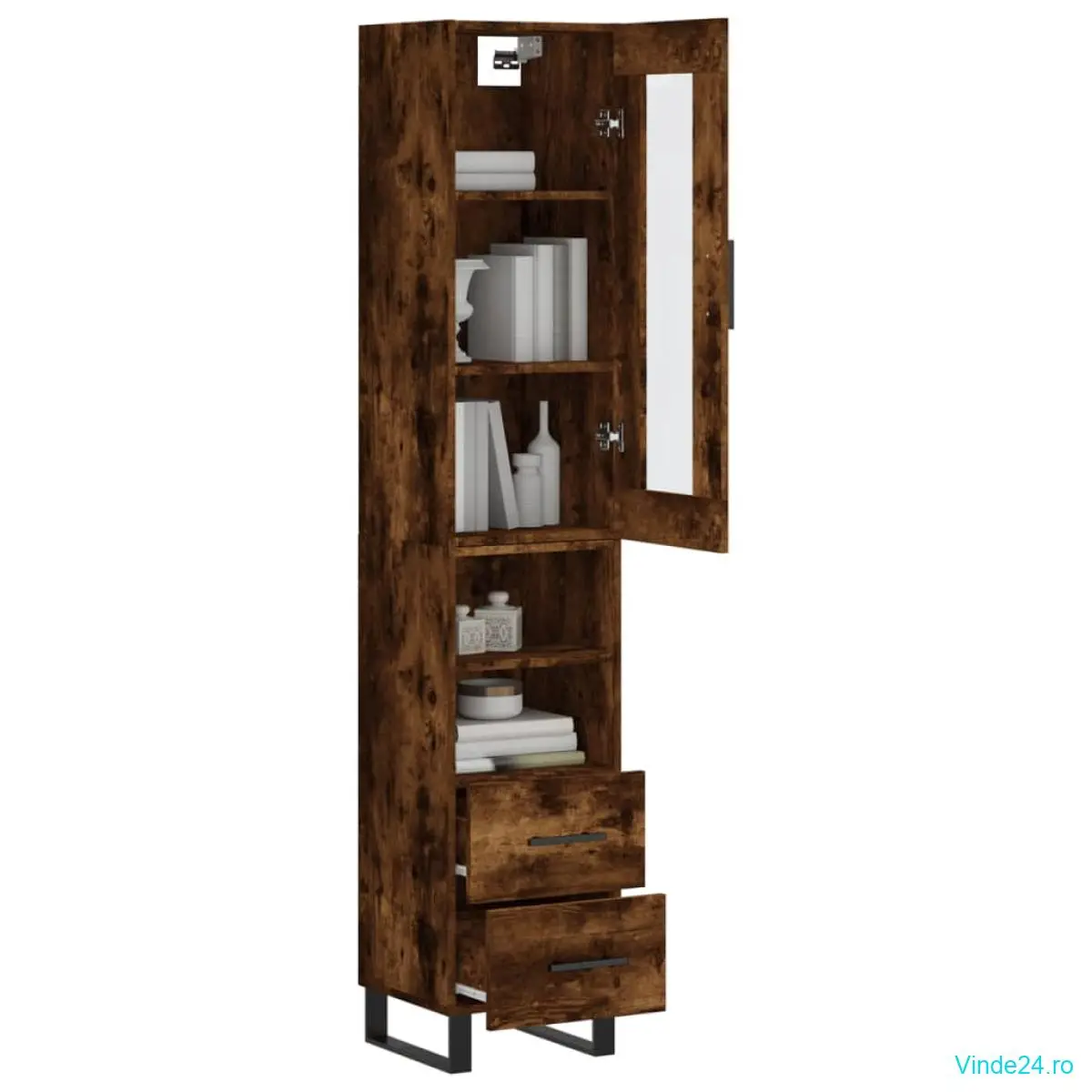 vidaXL Dulap înalt, stejar fumuriu, 69,5x34x180, lemn compozit